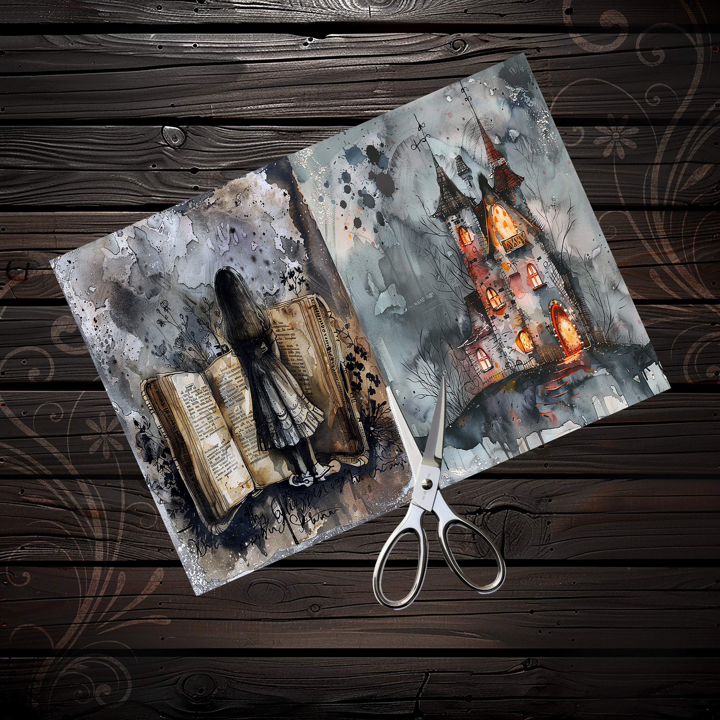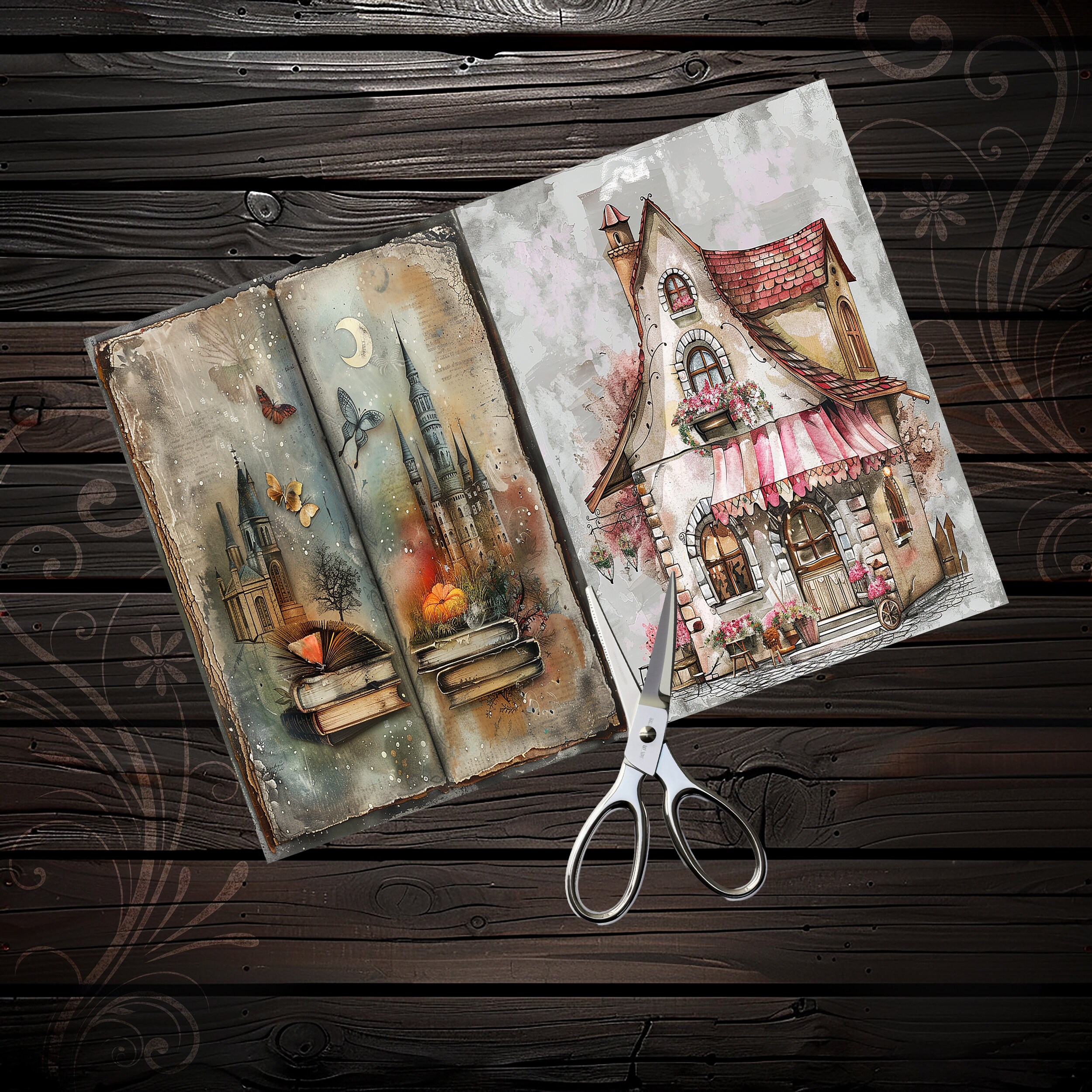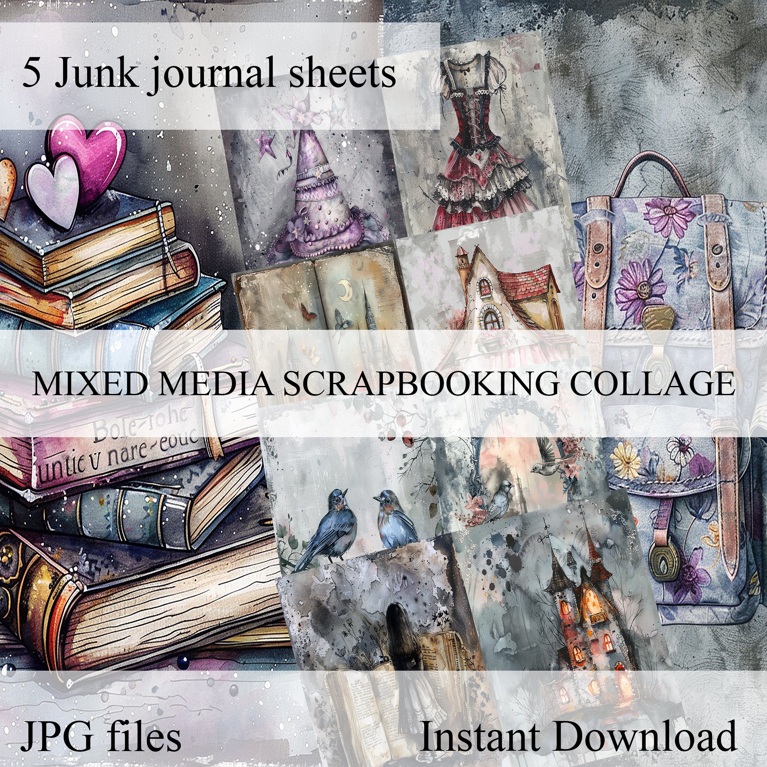 Scrapbooking collage - mixed media, Junk Journal kit, Scrapbooking set, ephemera digital, printable paper, shabby, vintage, fantasy