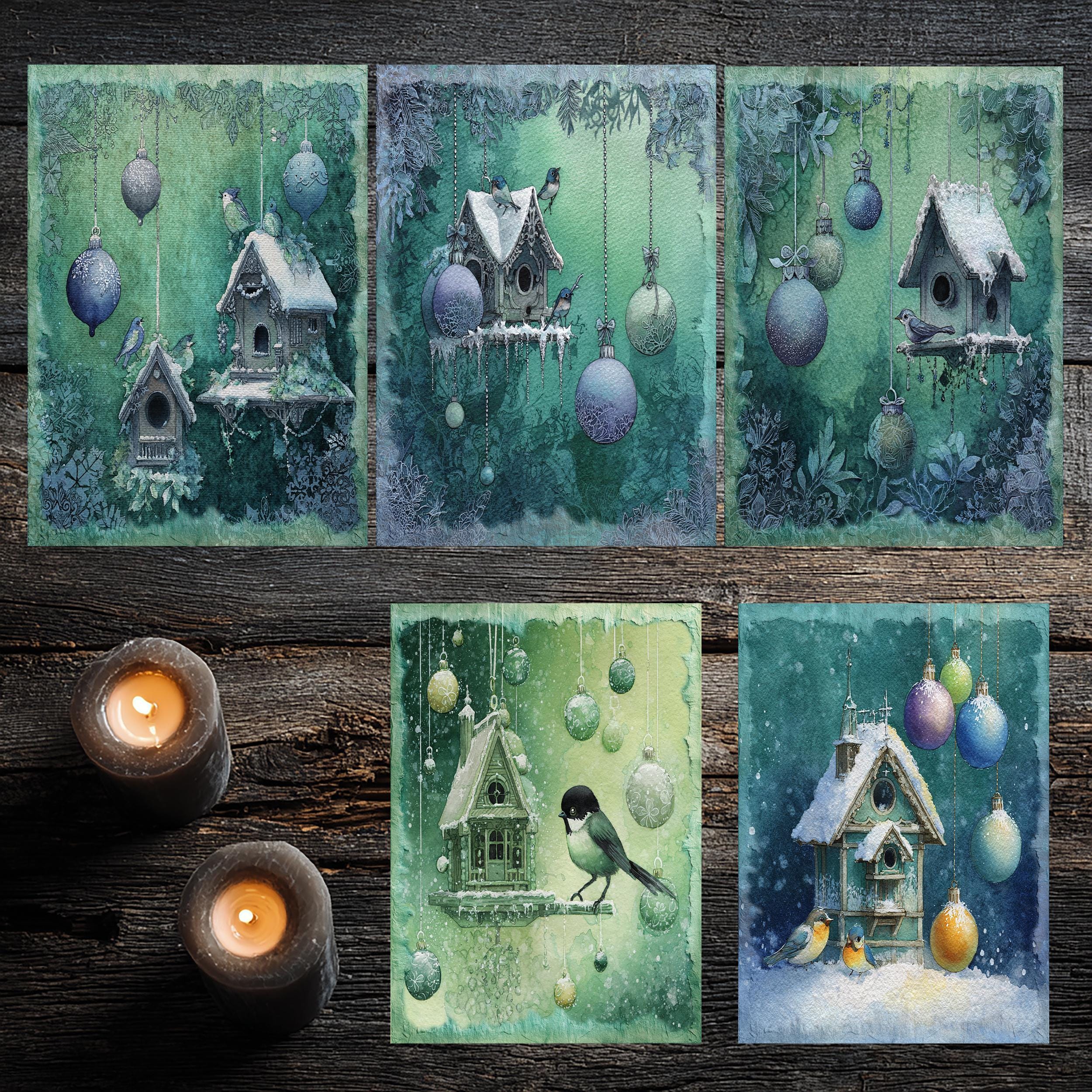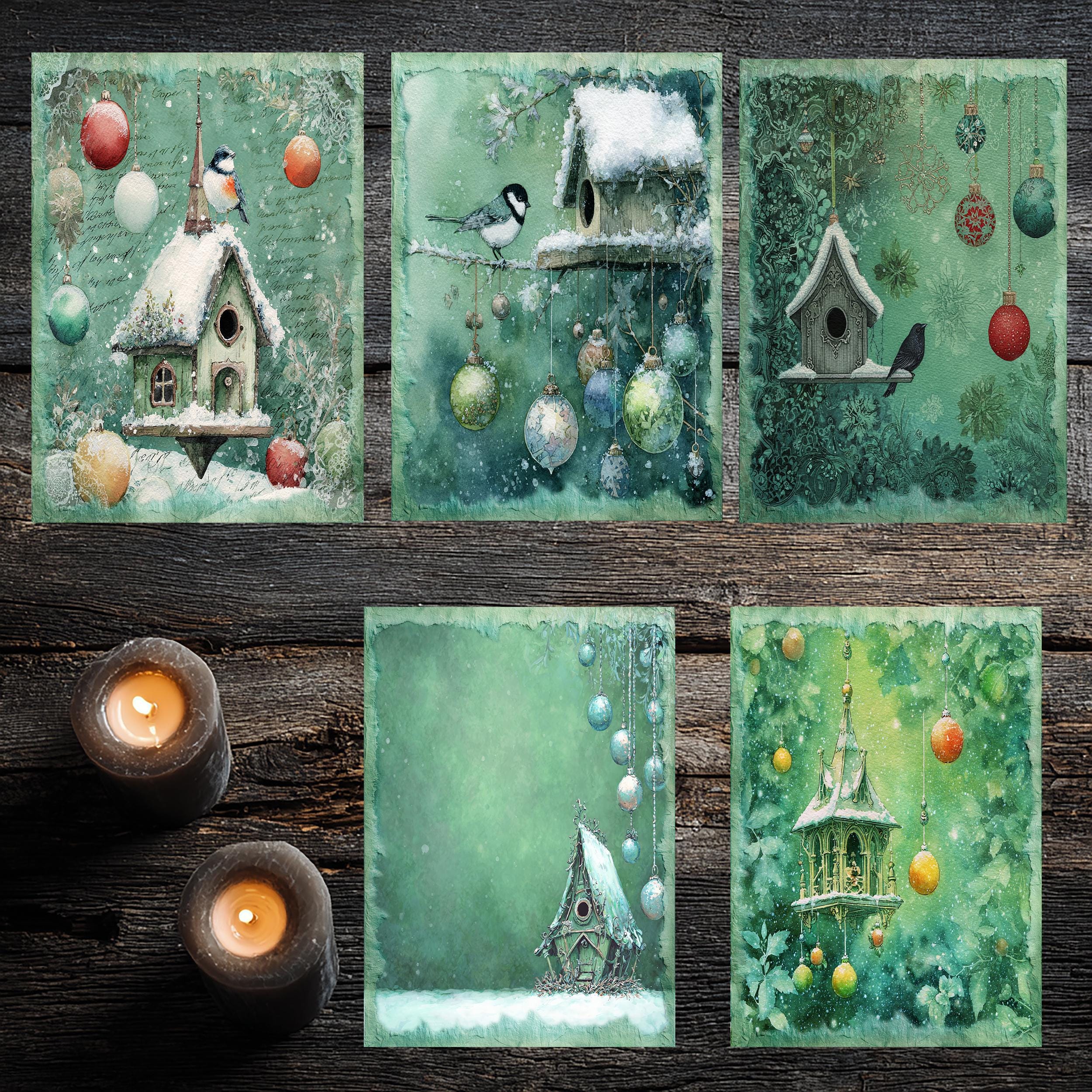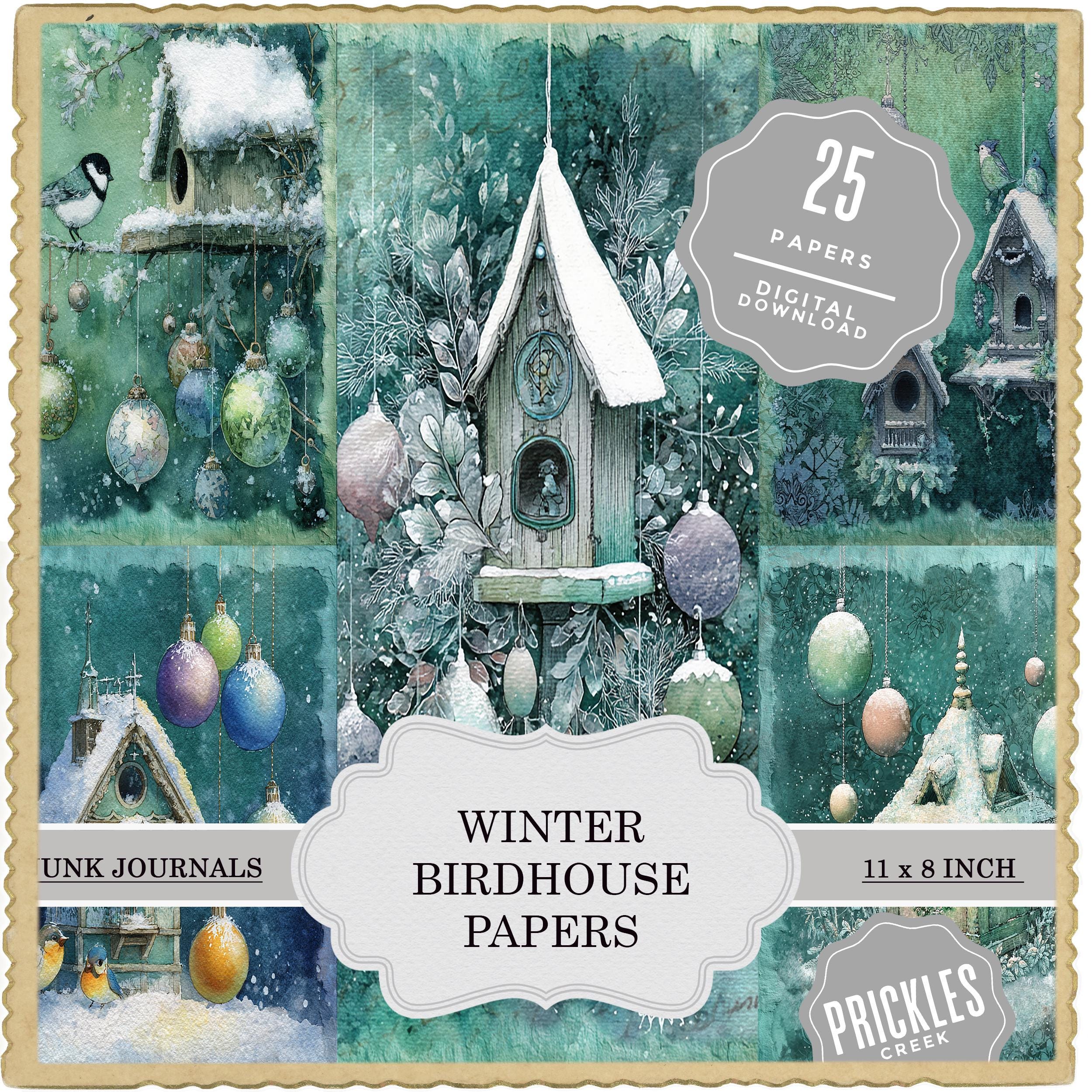 Winter junk journal bird house papers, scrapbooking set, scrapbook paper, ephemera, memory album - digital papers