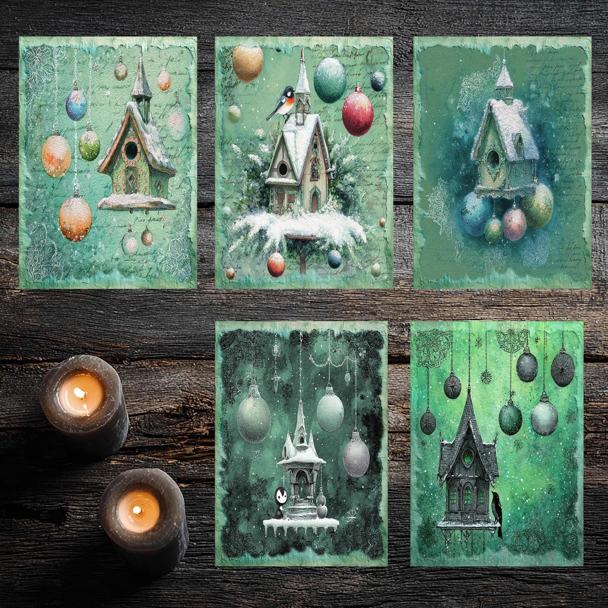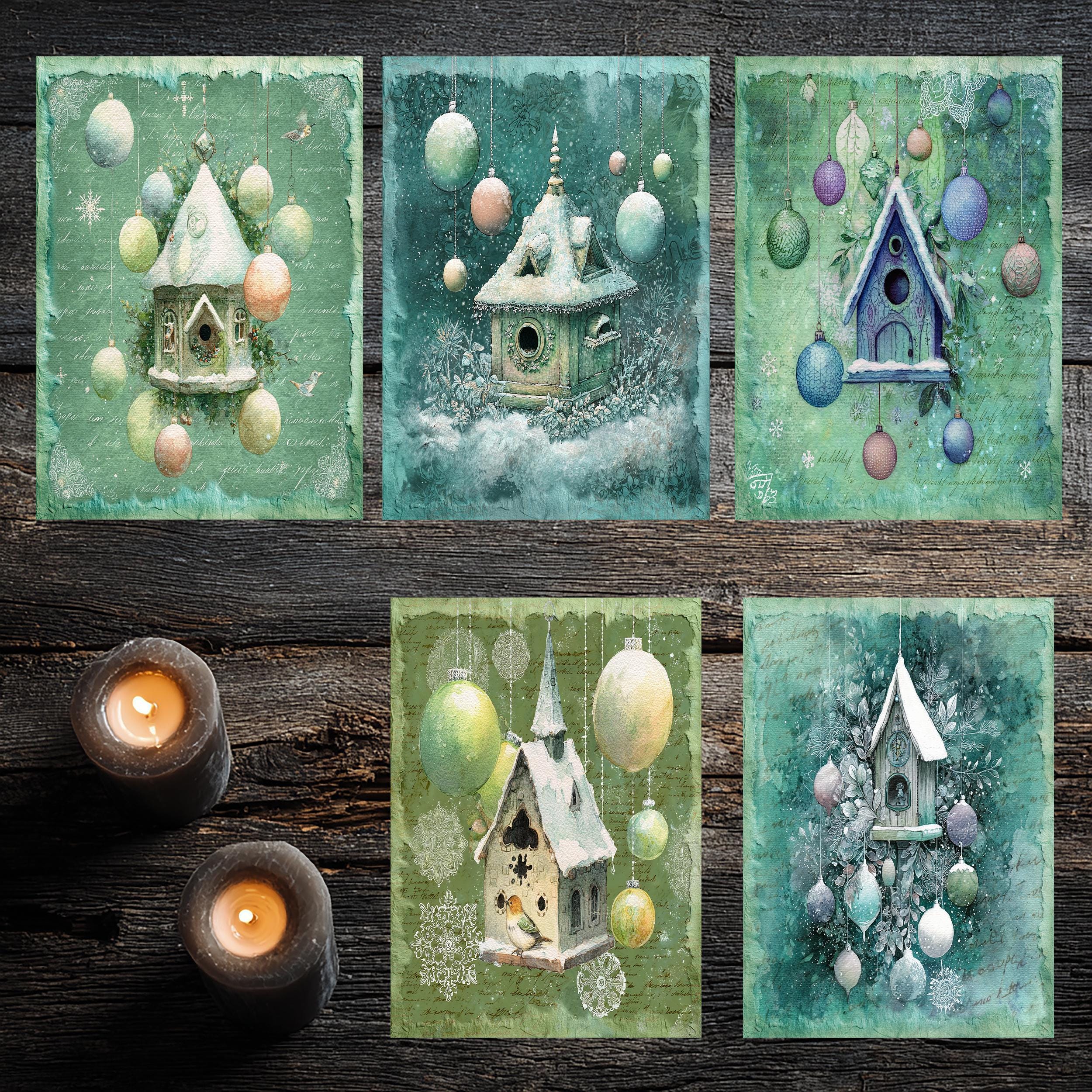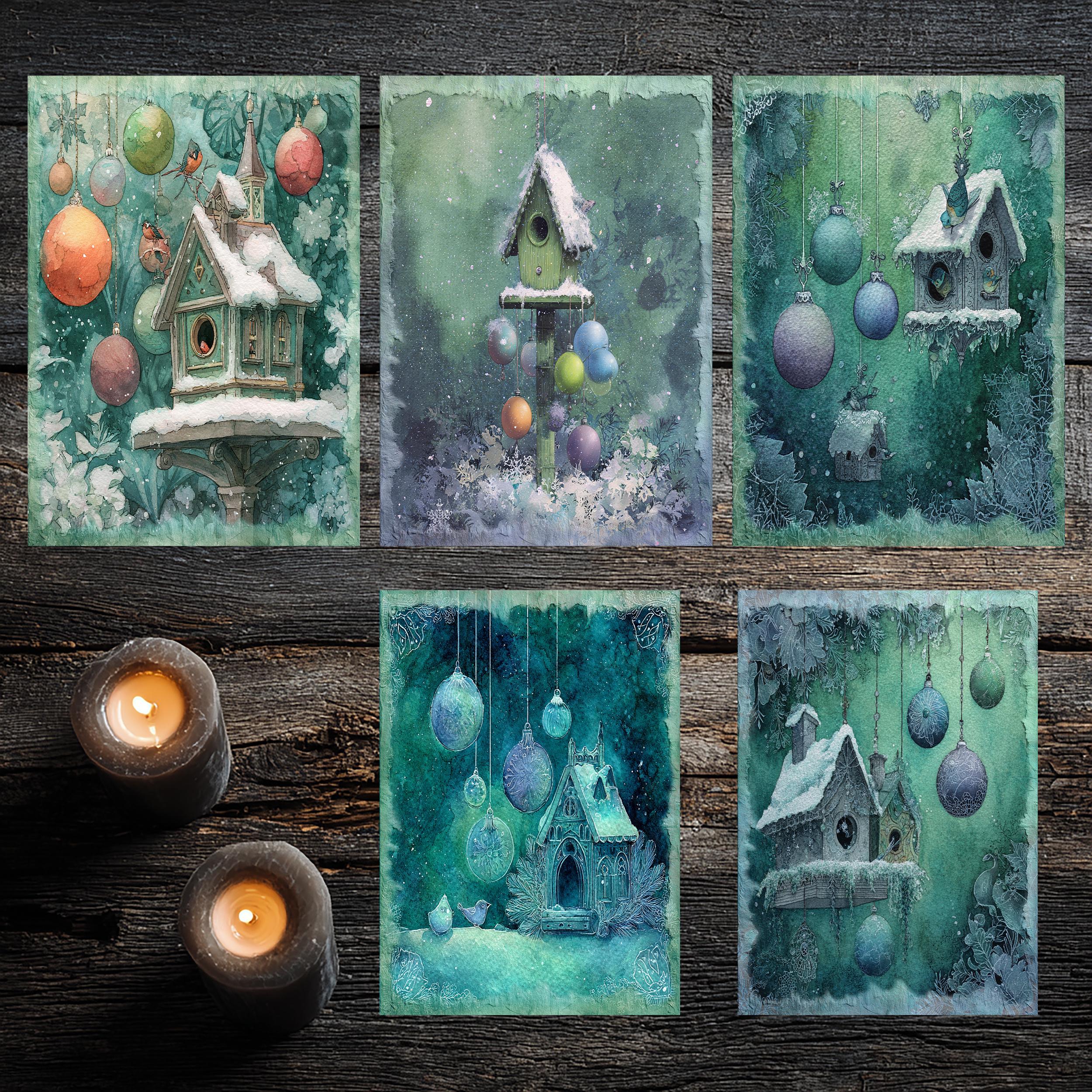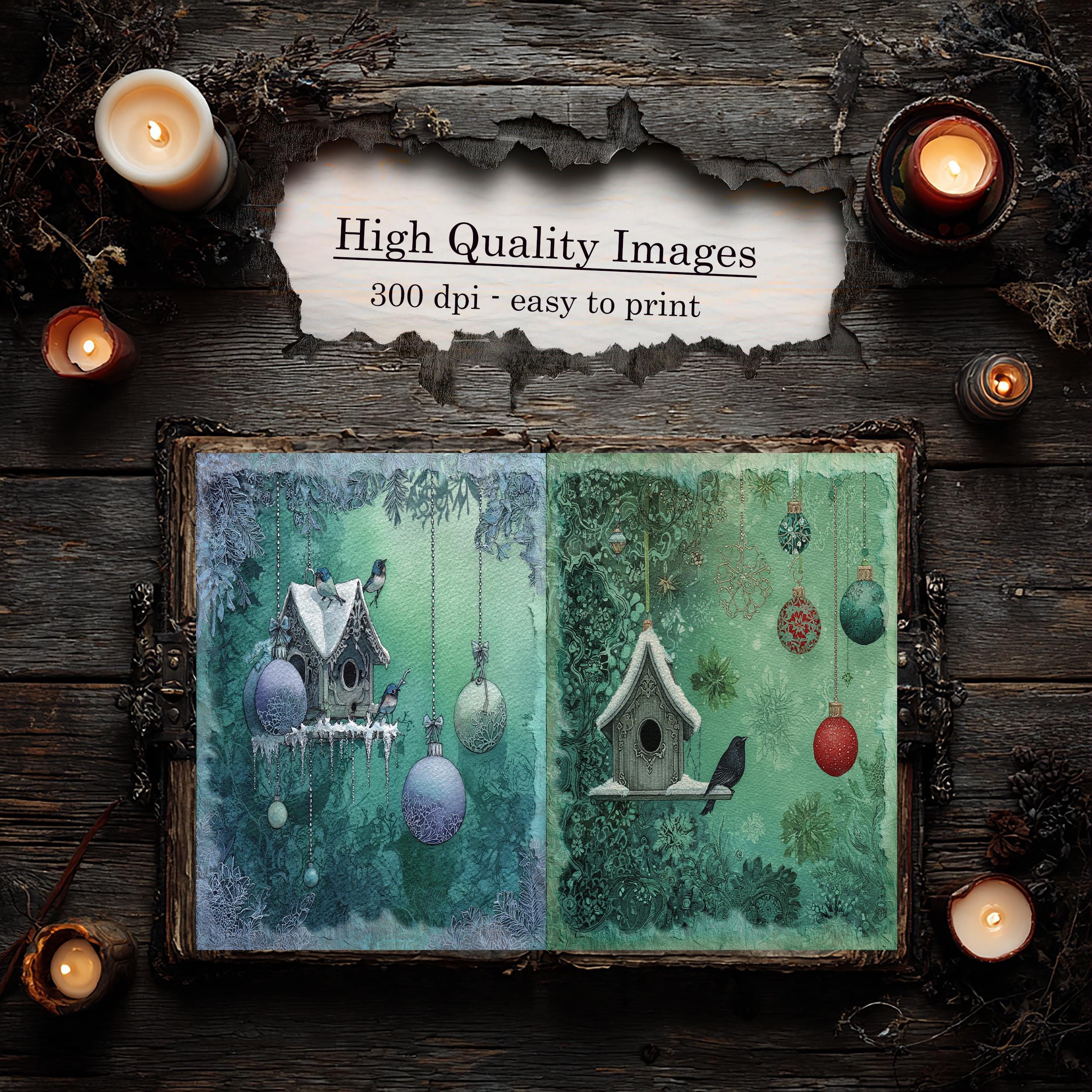 Winter junk journal bird house papers, scrapbooking set, scrapbook paper, ephemera, memory album - digital papers
