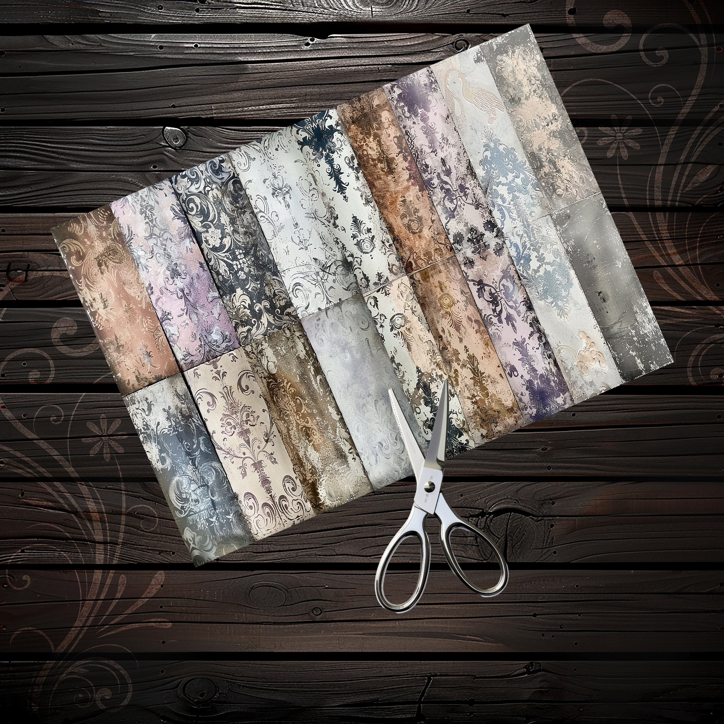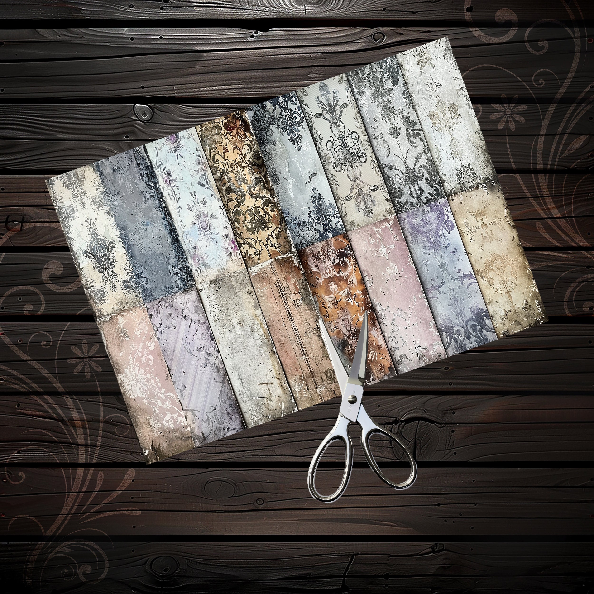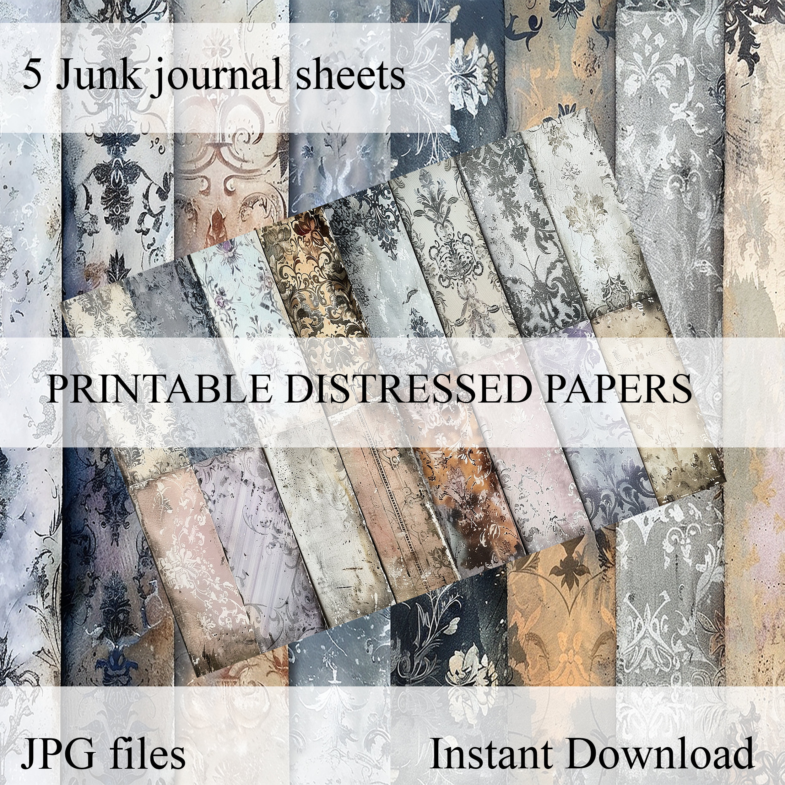 Distressed vintage junk journal paper, printable paper, scrapbook, scrapbooking kit, set, damast, wallpaper, ephemera, digital, shabby
