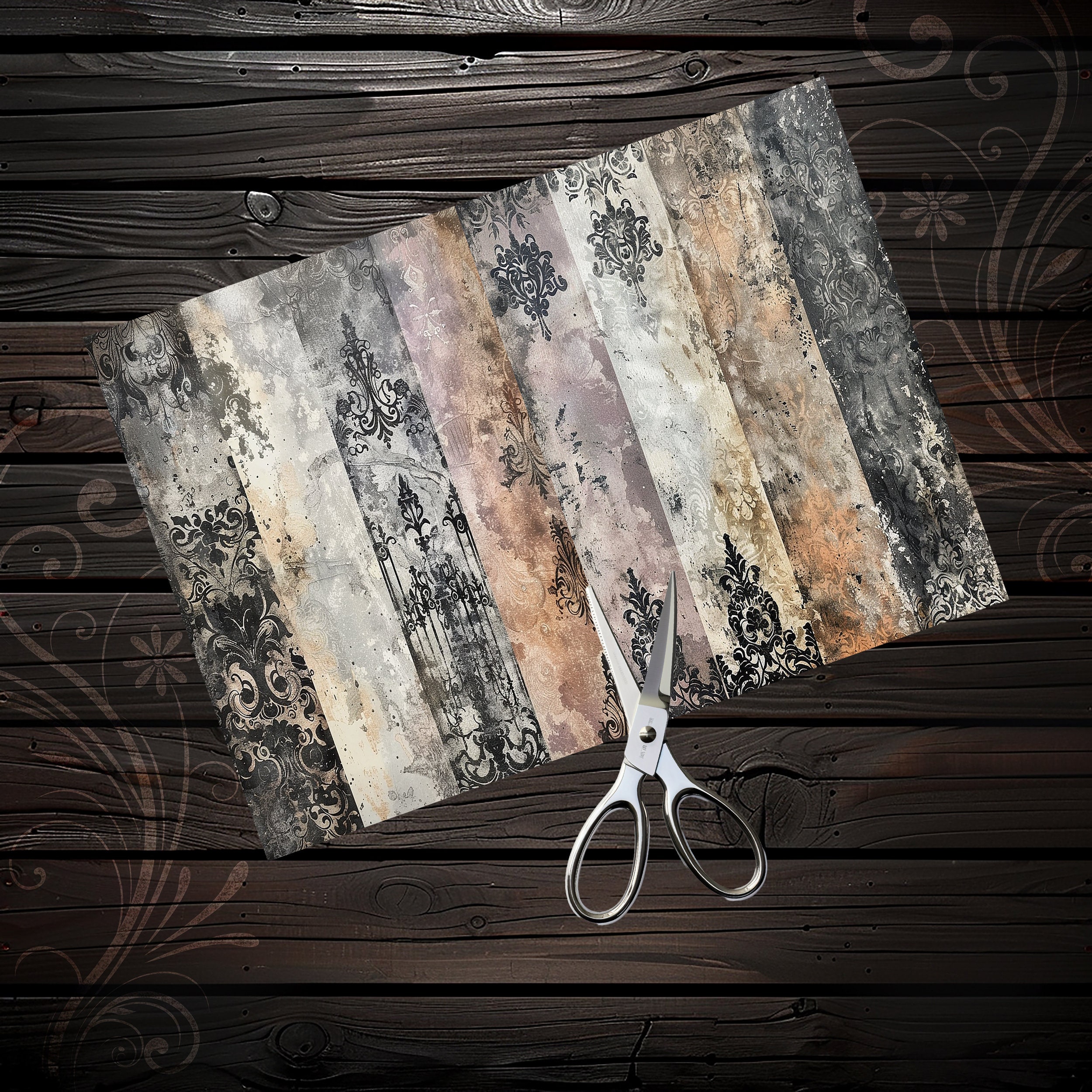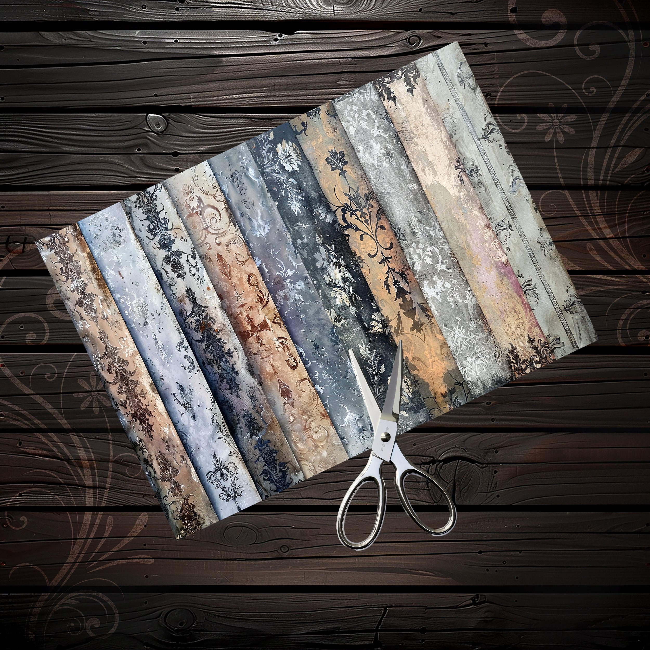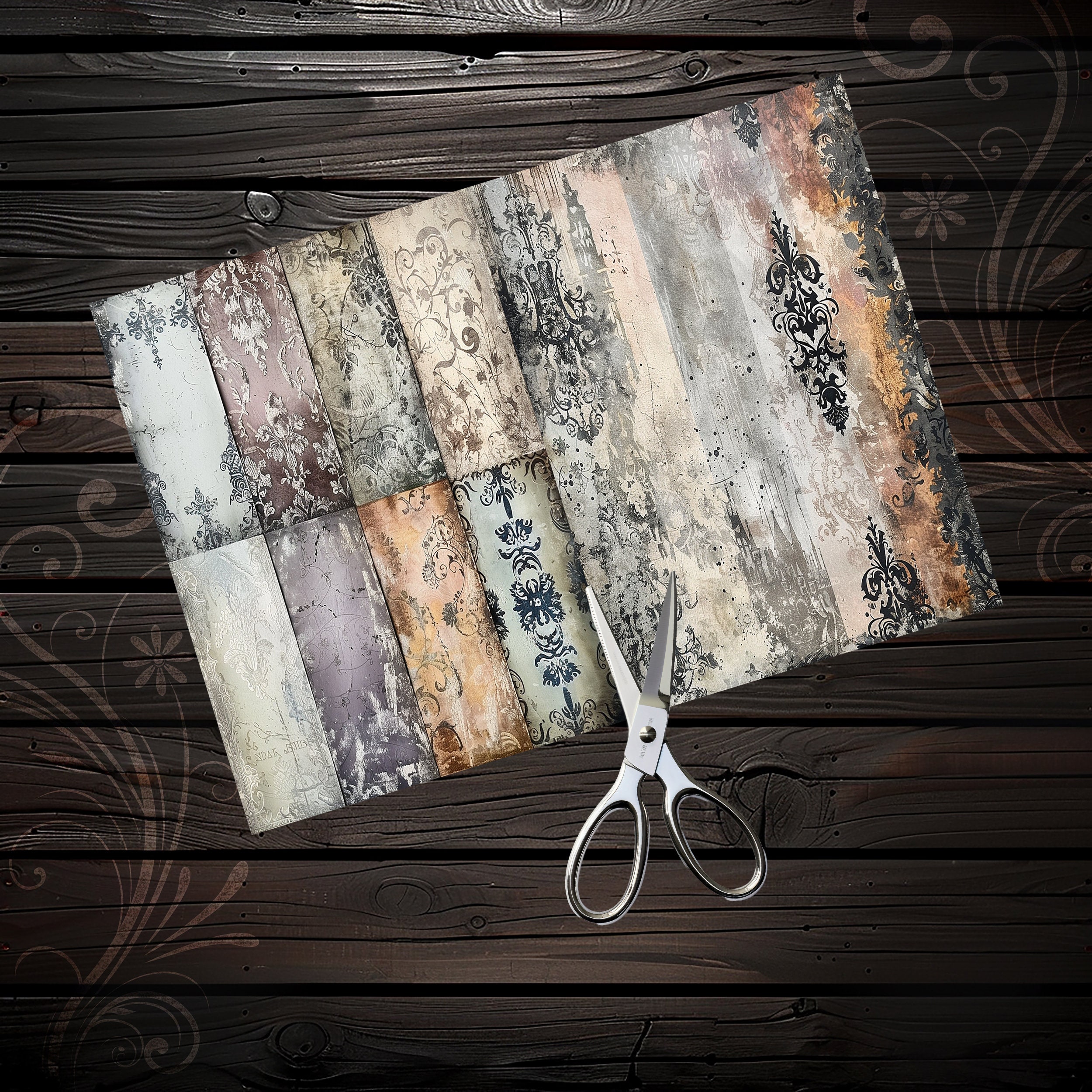 Distressed vintage junk journal paper, printable paper, scrapbook, scrapbooking kit, set, damast, wallpaper, ephemera, digital, shabby
