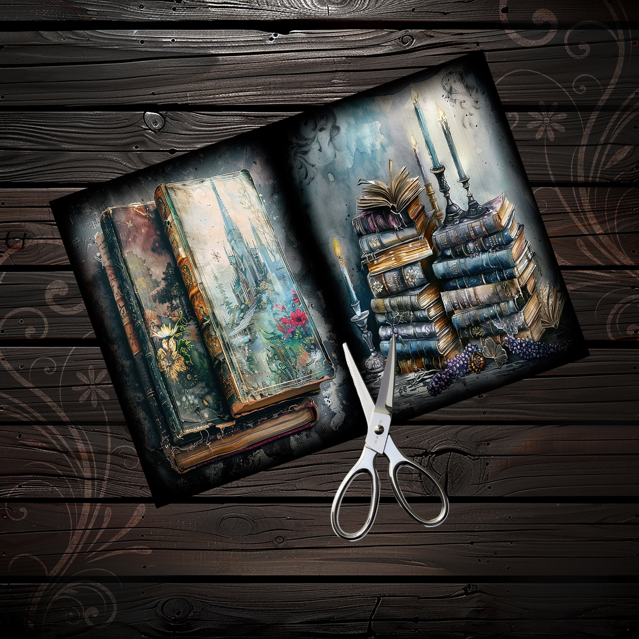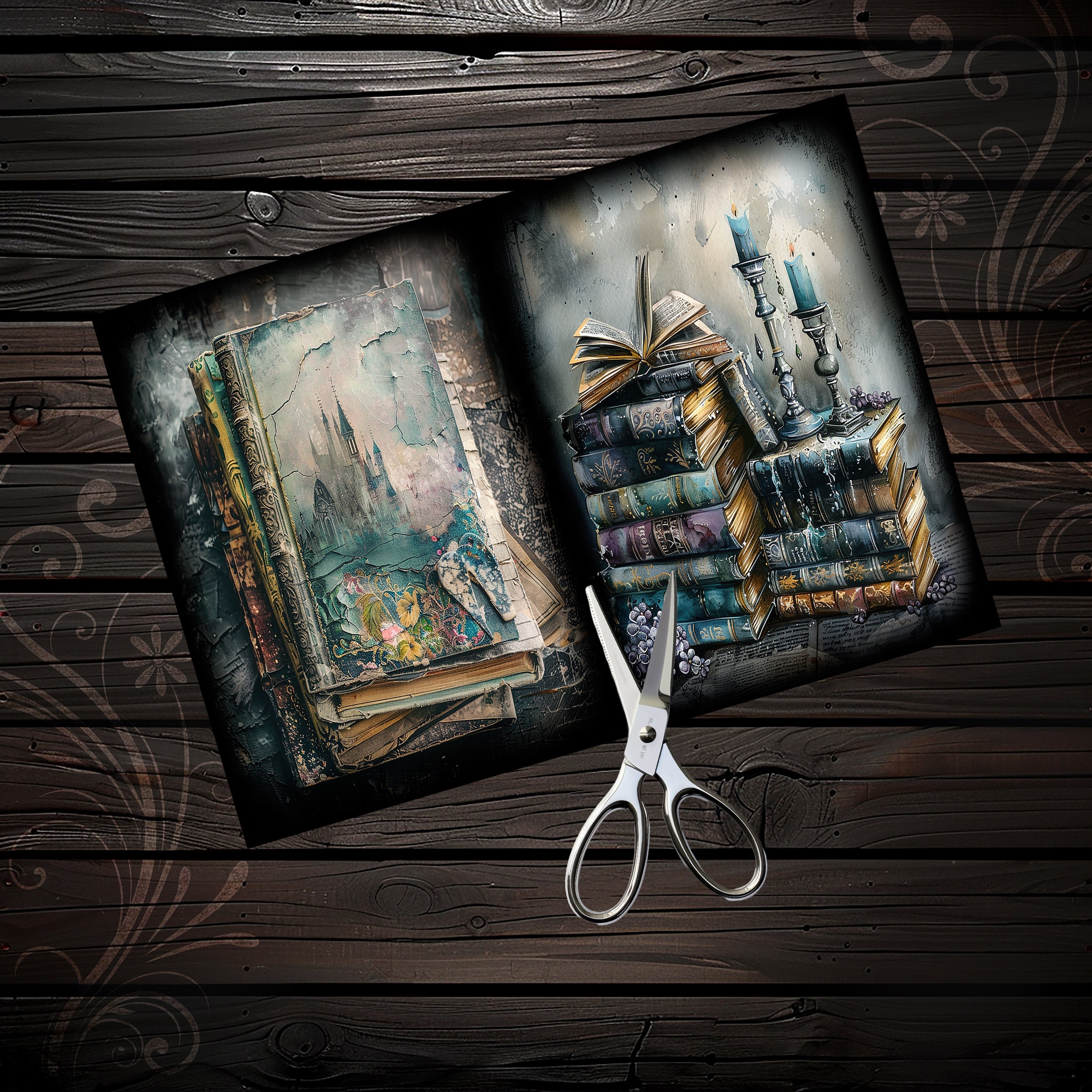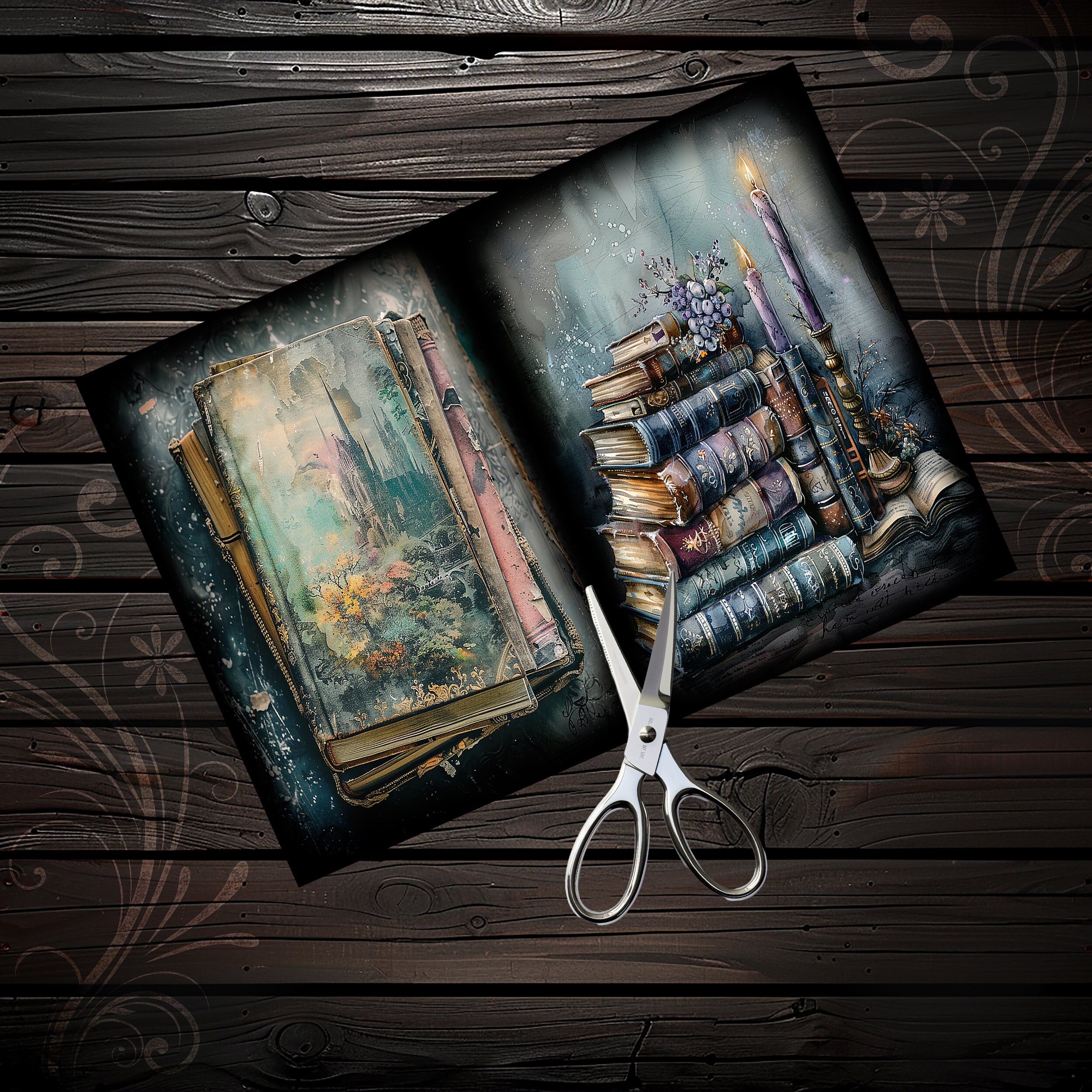 Gothic junk journal books, scrapbook, scrapbooking, kit, scrapbooking kit, collage, fantasy, ephemera, digital paper, sheets