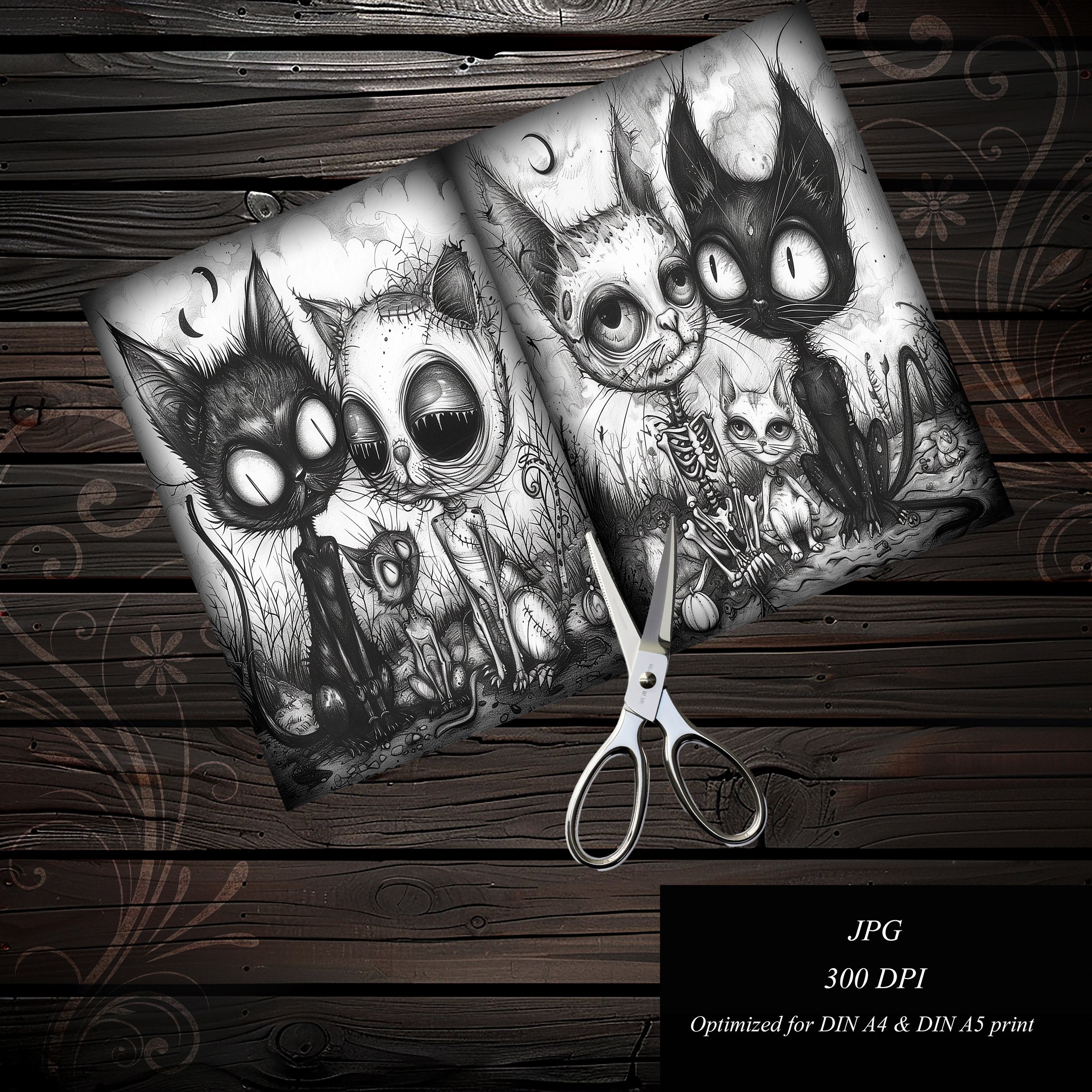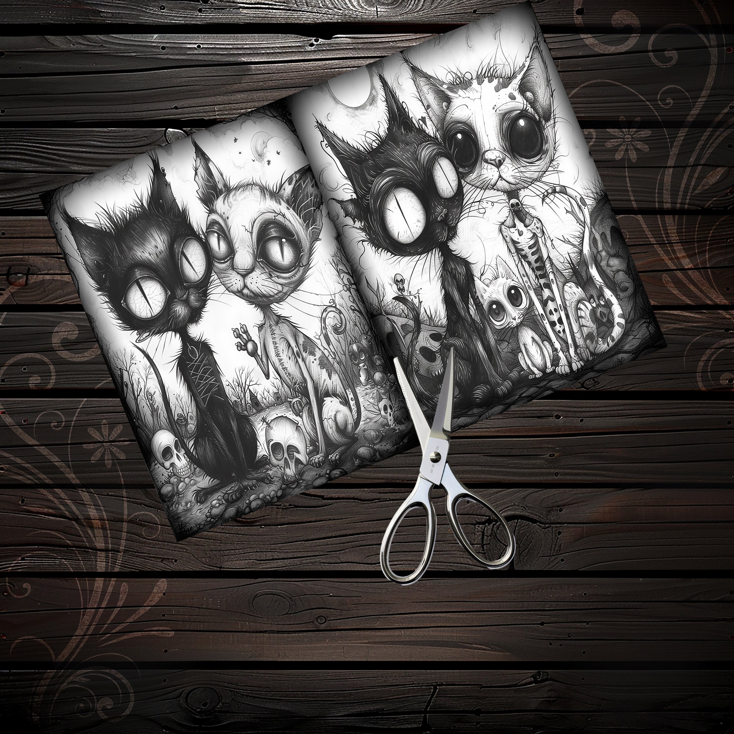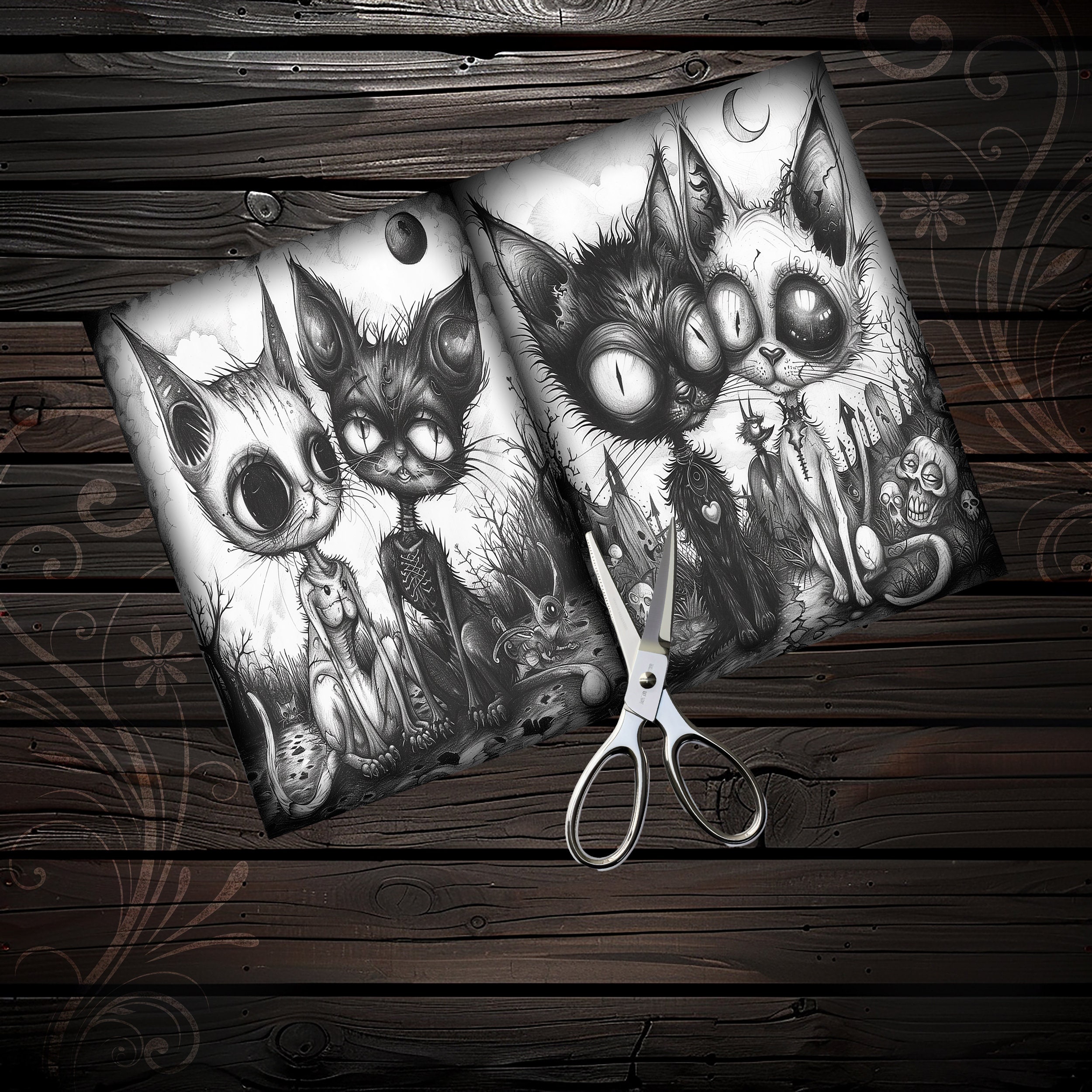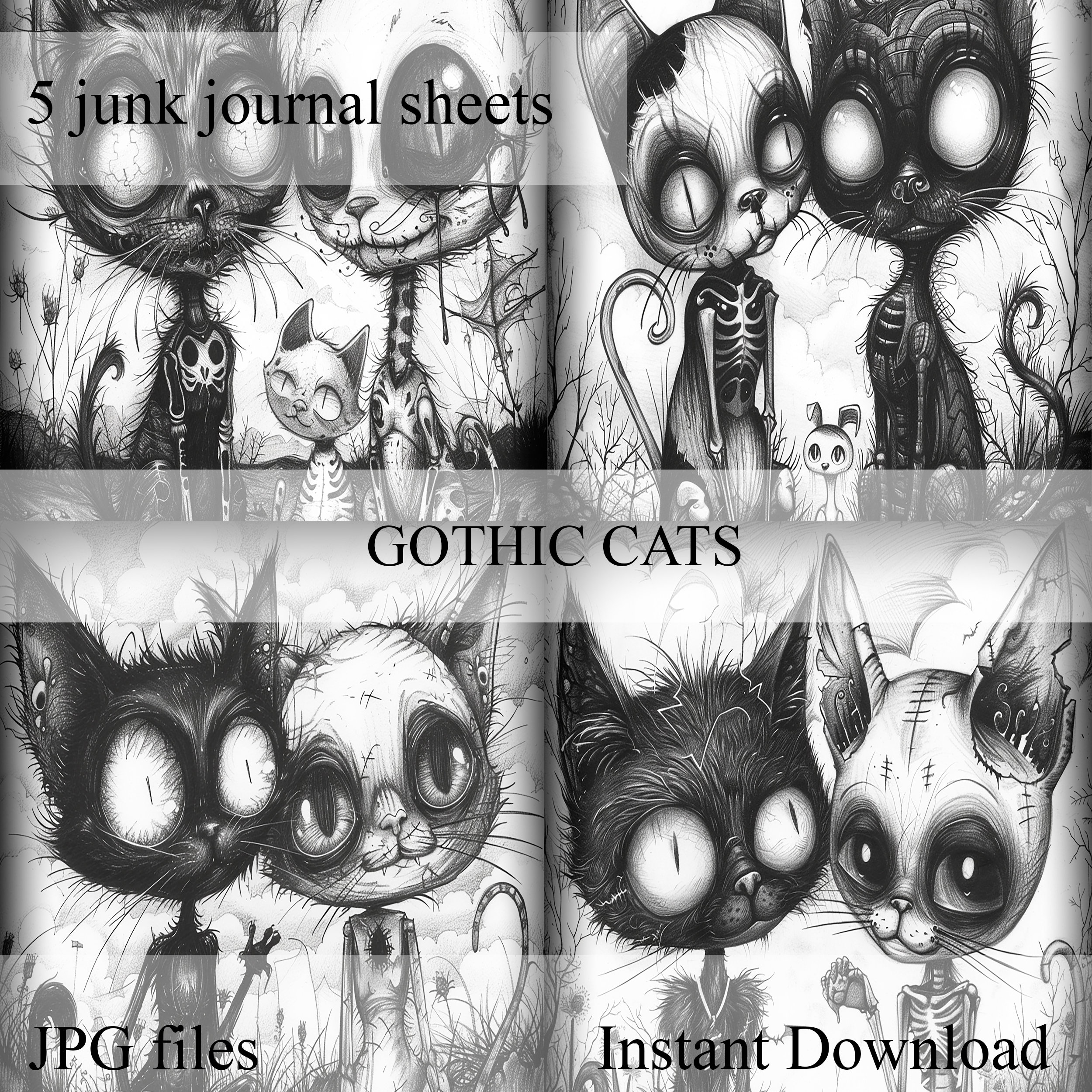 Junk Journal coloring book, Junk Journal kit, Scrapbooking set, gothic, cats, Scrapbooking kit, Ephemera, digital, Junk Journal paper