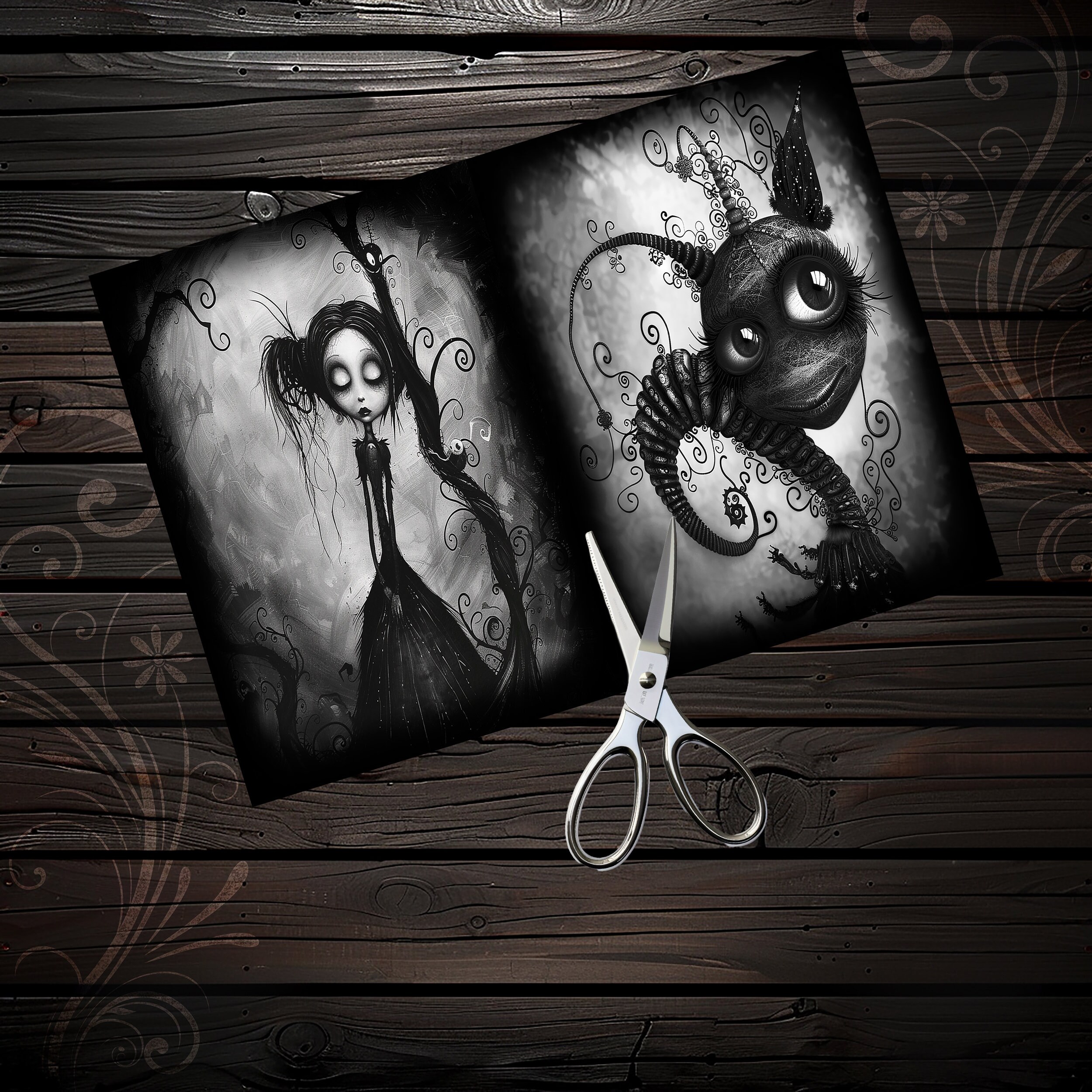 Wonderful Tim Burton style inspired, richly decorated download files for your creative project.