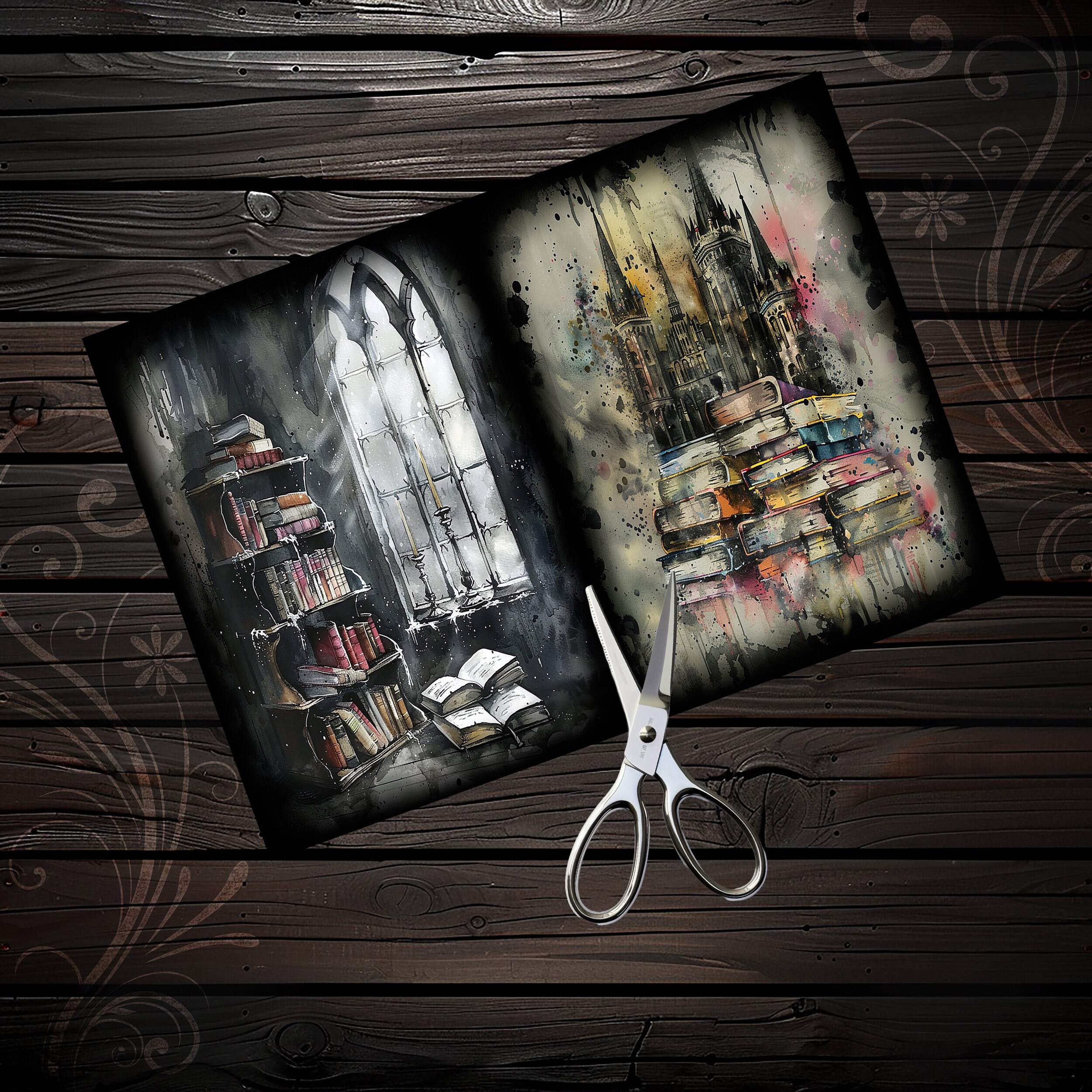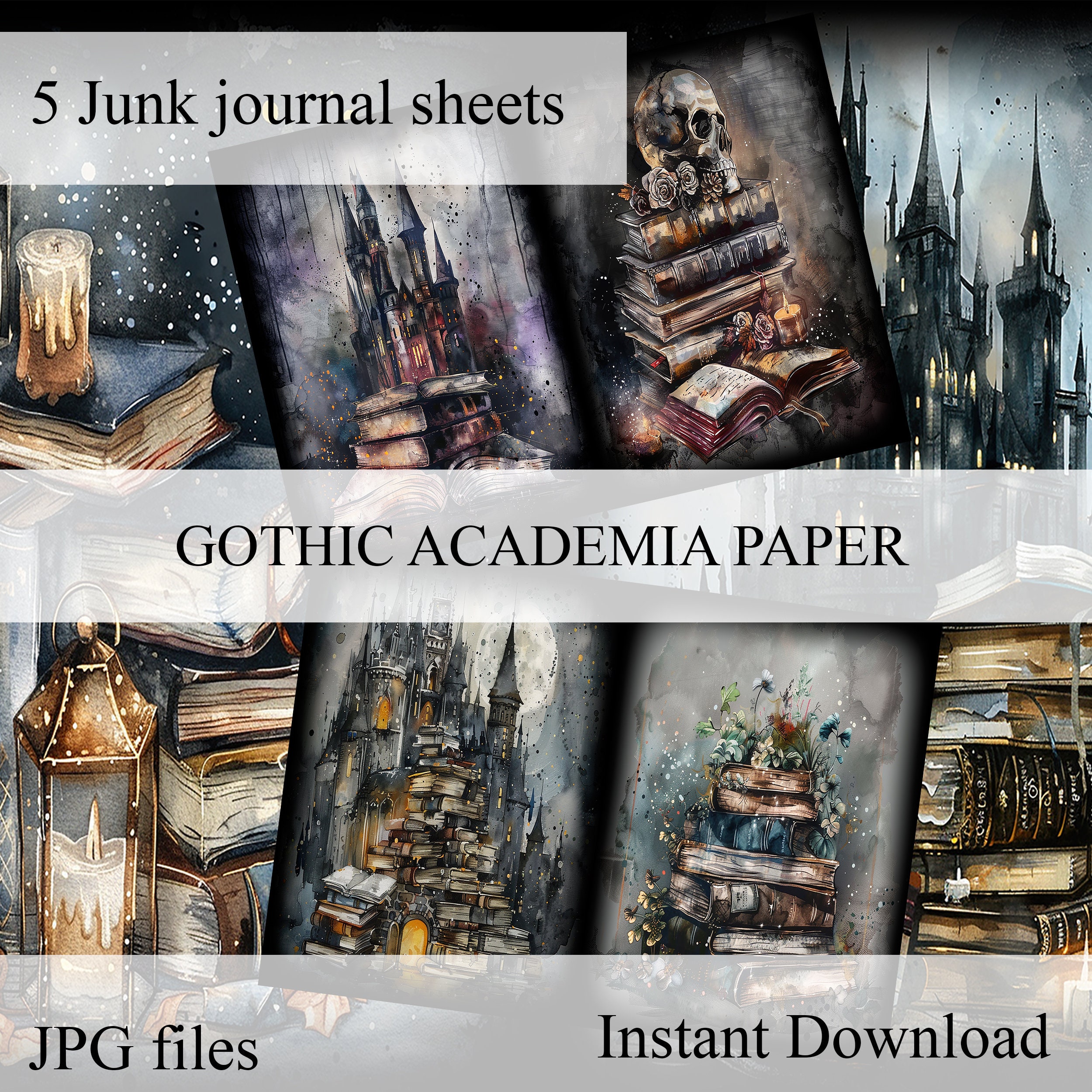 Dark gothic academia junk journal papers, digital paper, scrapbook, scrapbooking, ephemera, diary paper - gothic, fantasy
