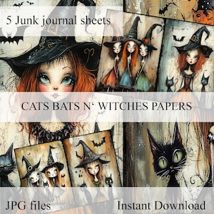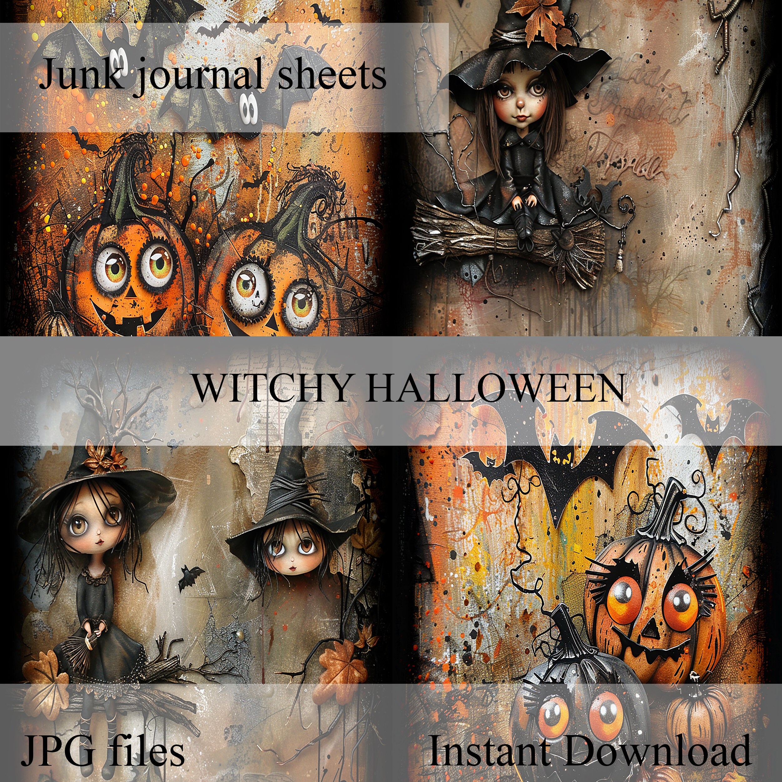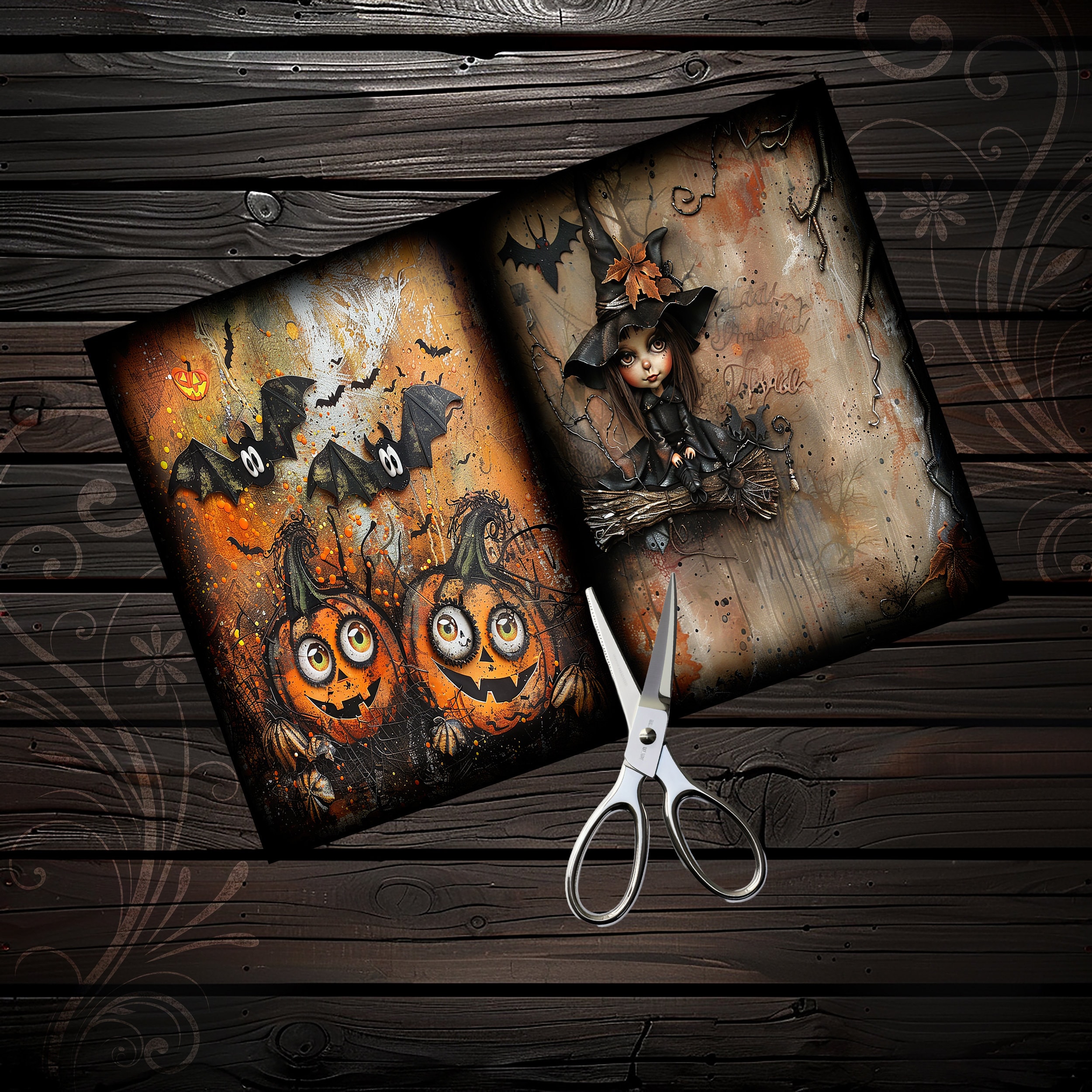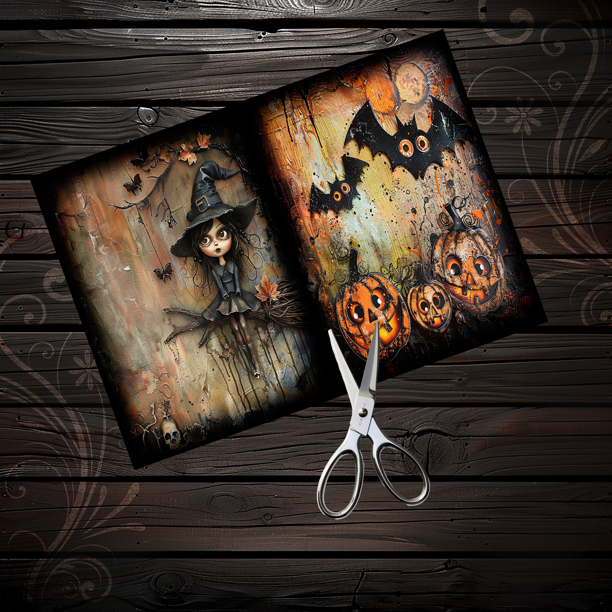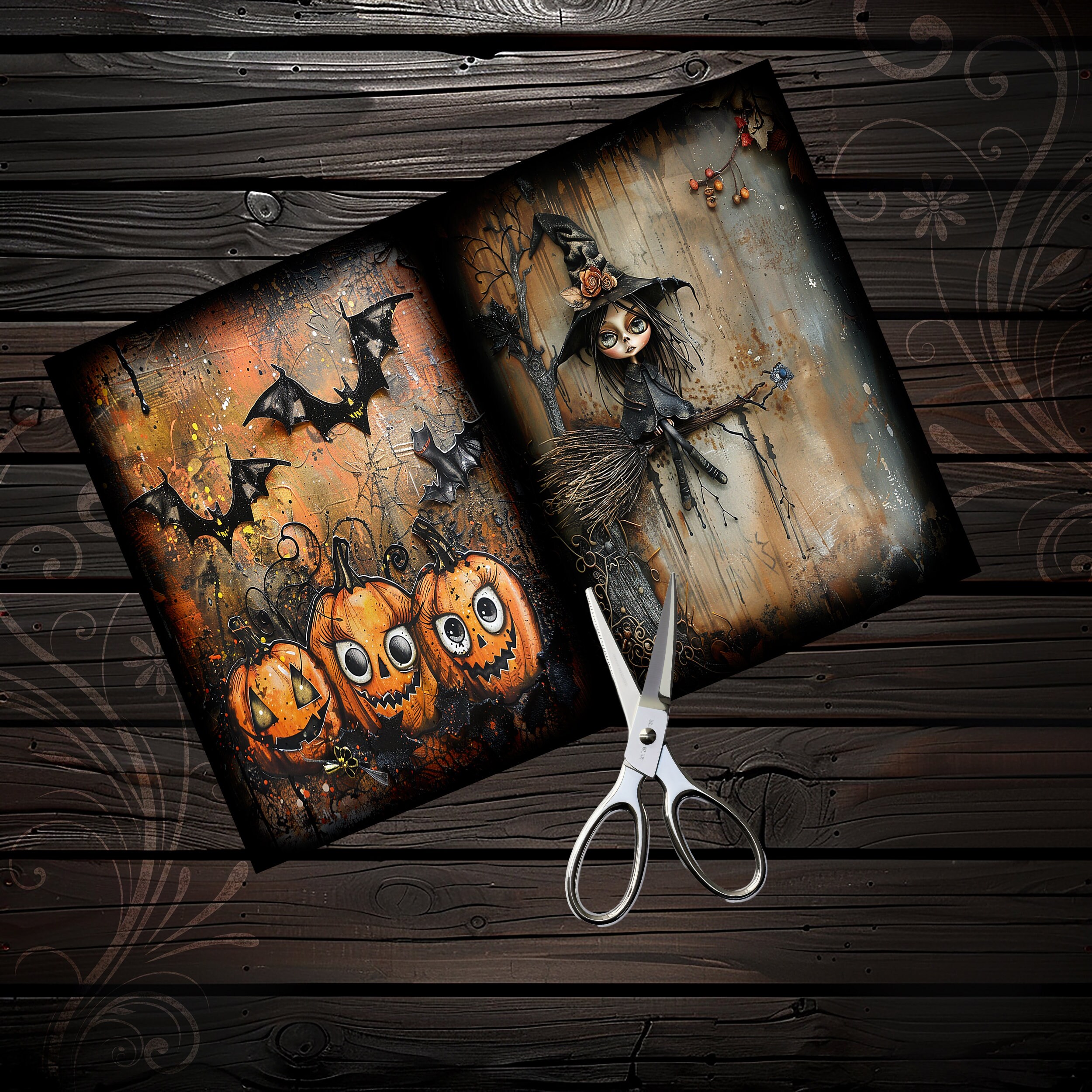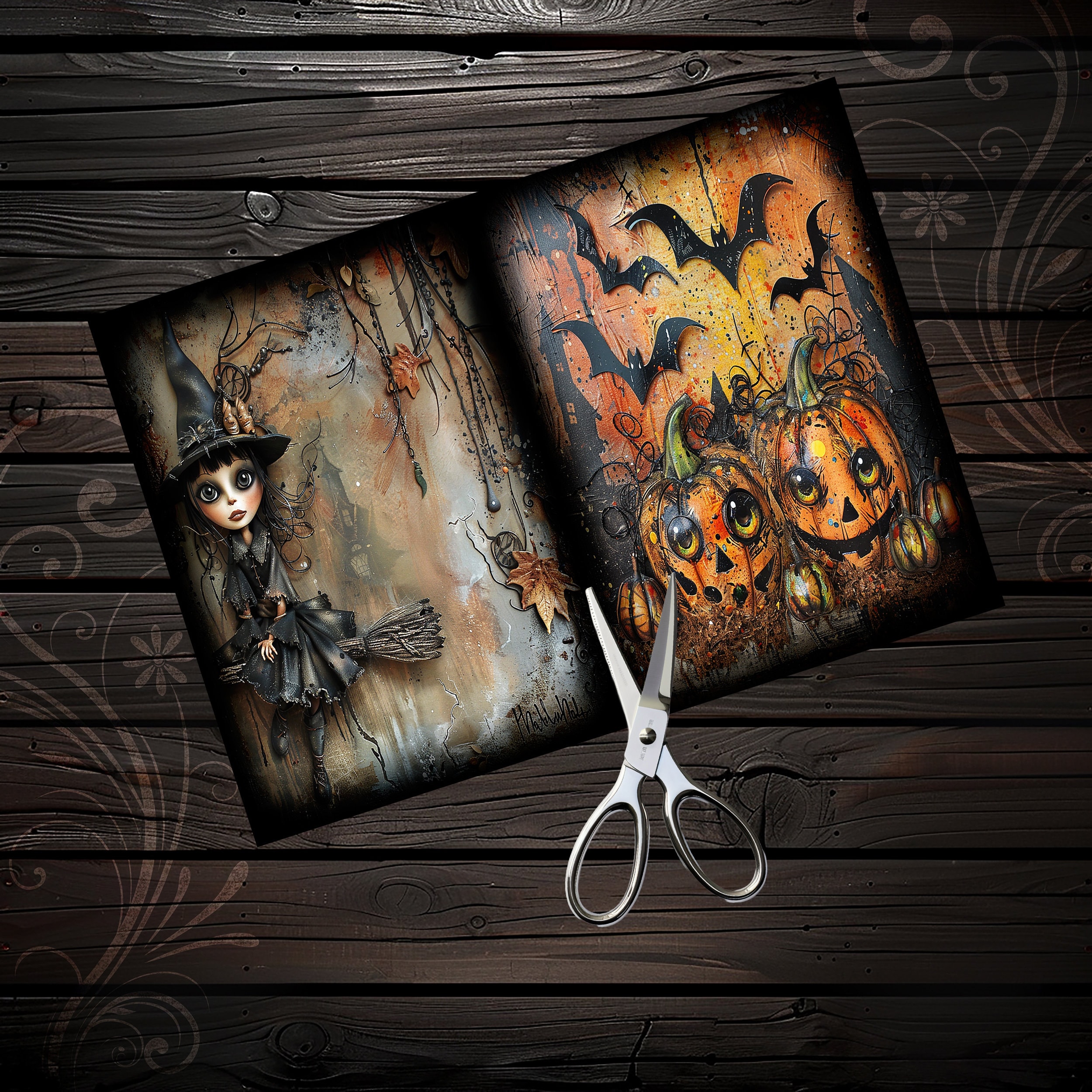 Junk Journal Halloween, Scrapbook, Hexen, gothic, Scrapbooking paper, Junk Journal pages, digital, Scrapbooking kit, collage