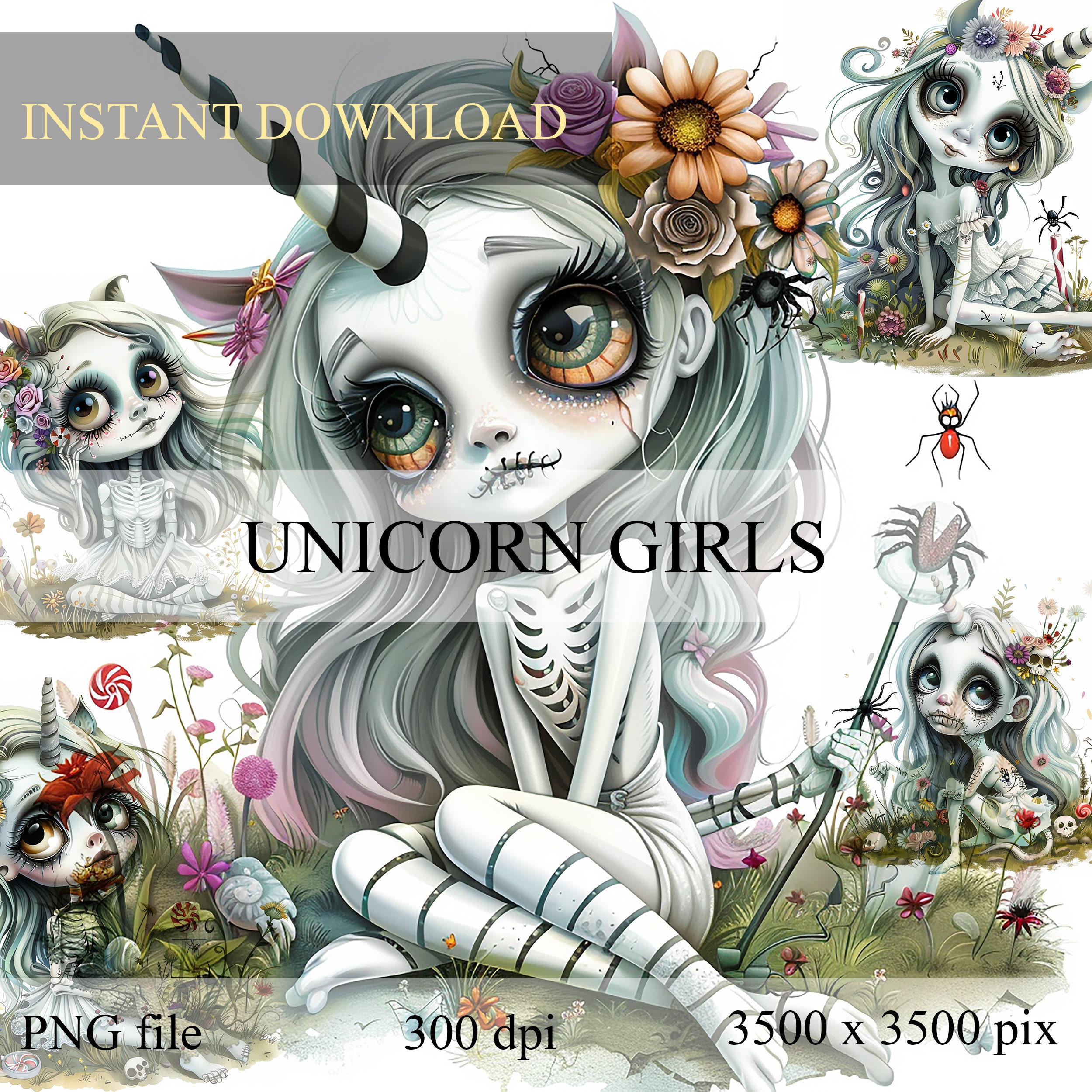 Clipart cute gothic unicorn junk journal paper, scrapbook, scrapbooking, digital paper, fantasy