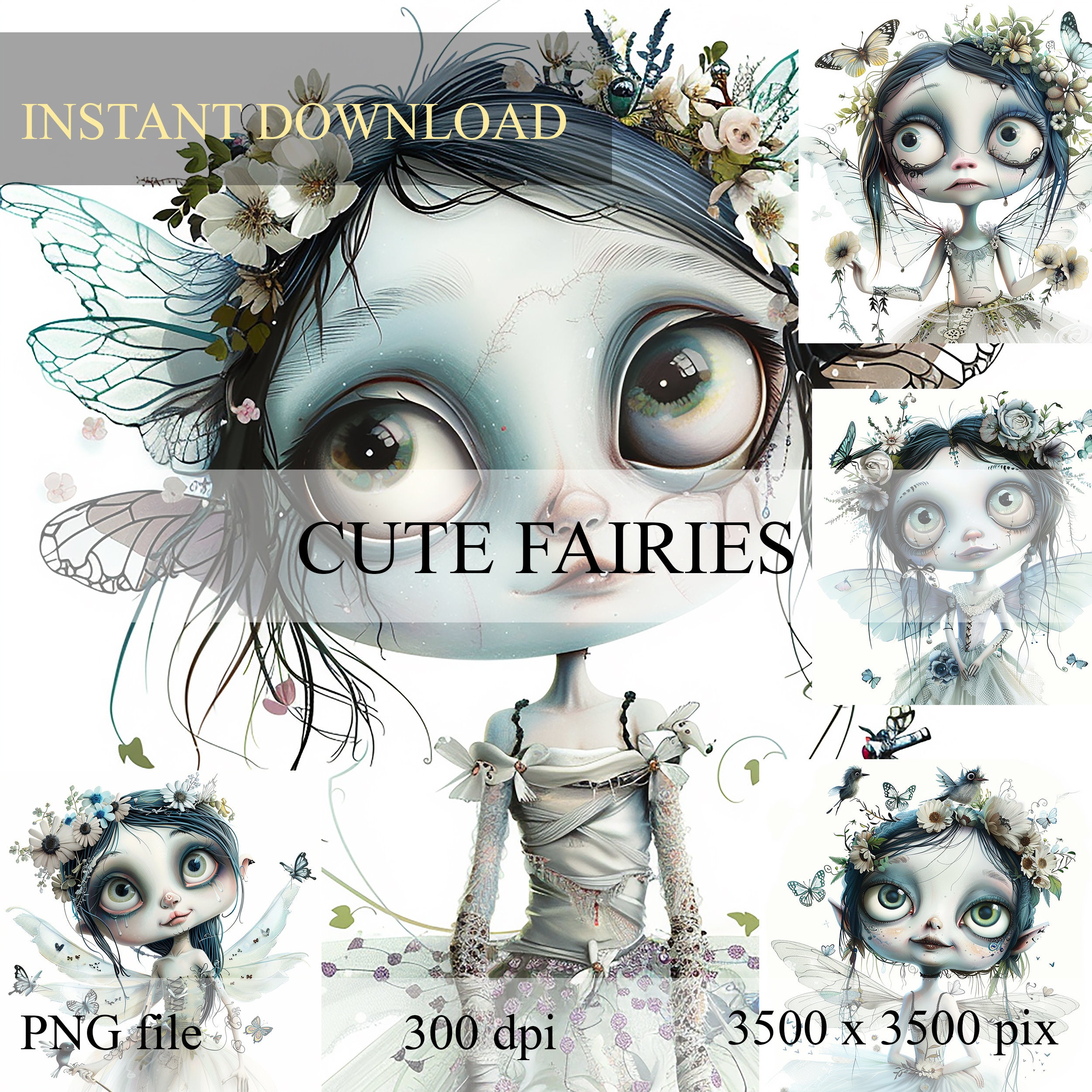 Clipart cute fairies, junk journal sticker, scrapbooking stickers, scrapbook handmade, pin making, fantasy ephemera, digital paper