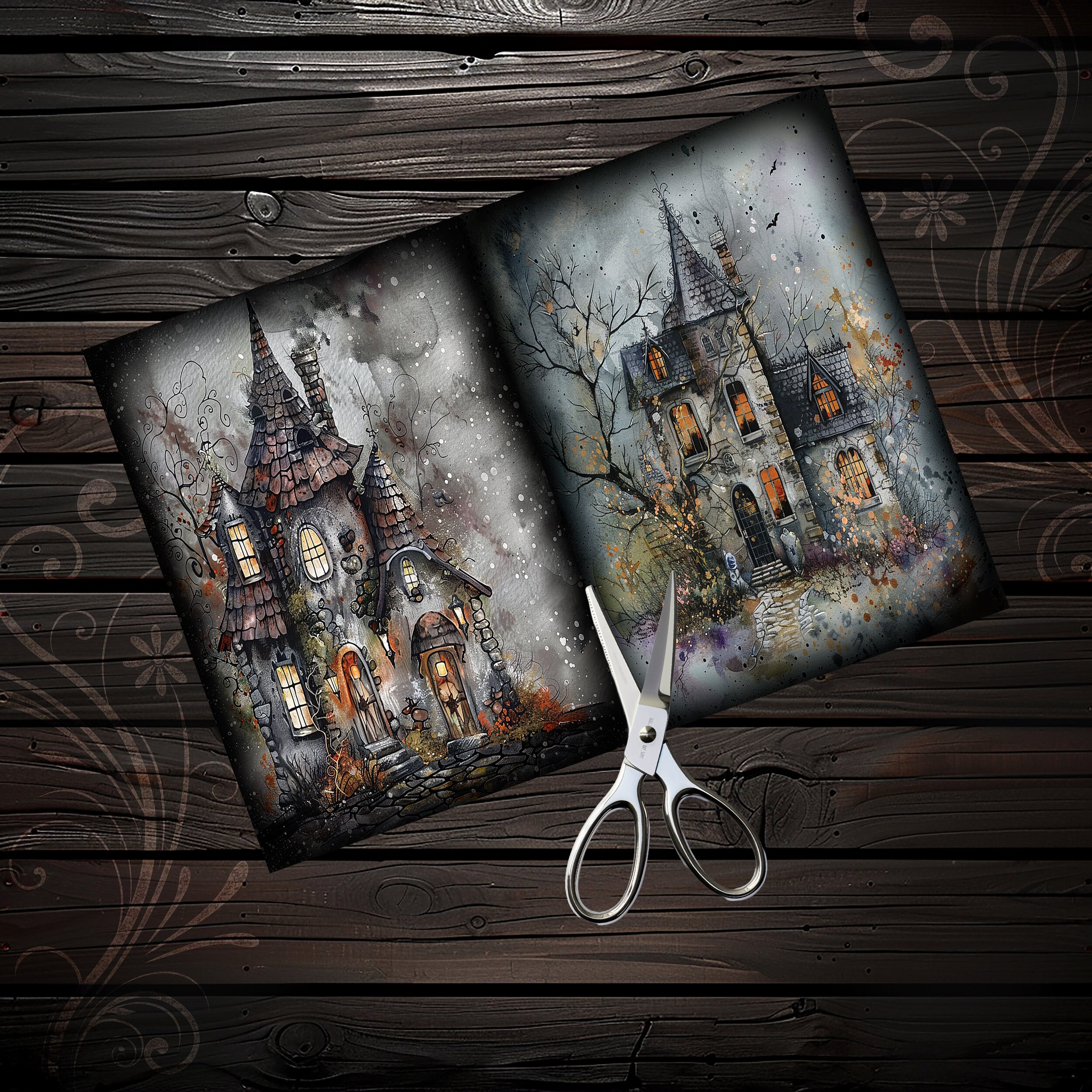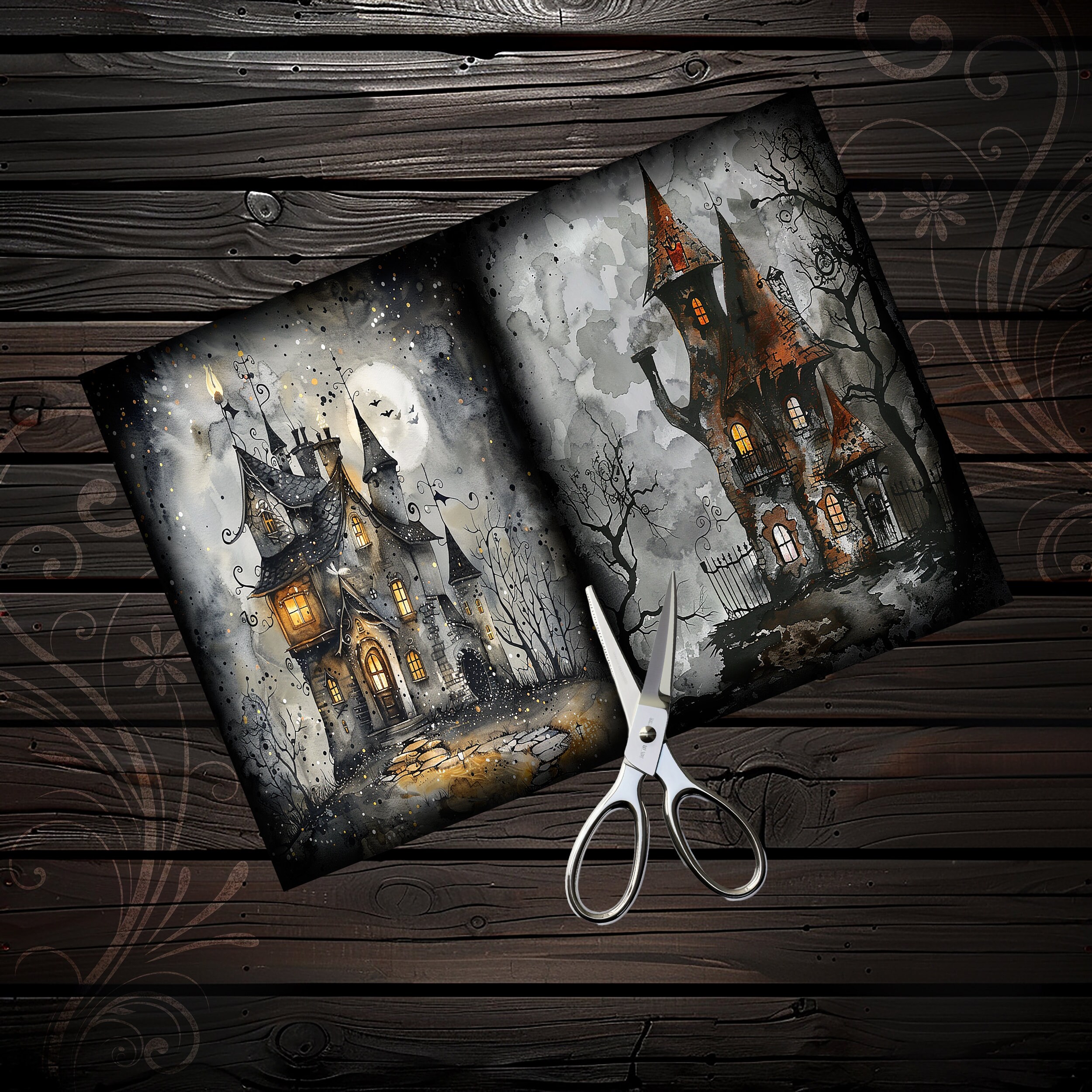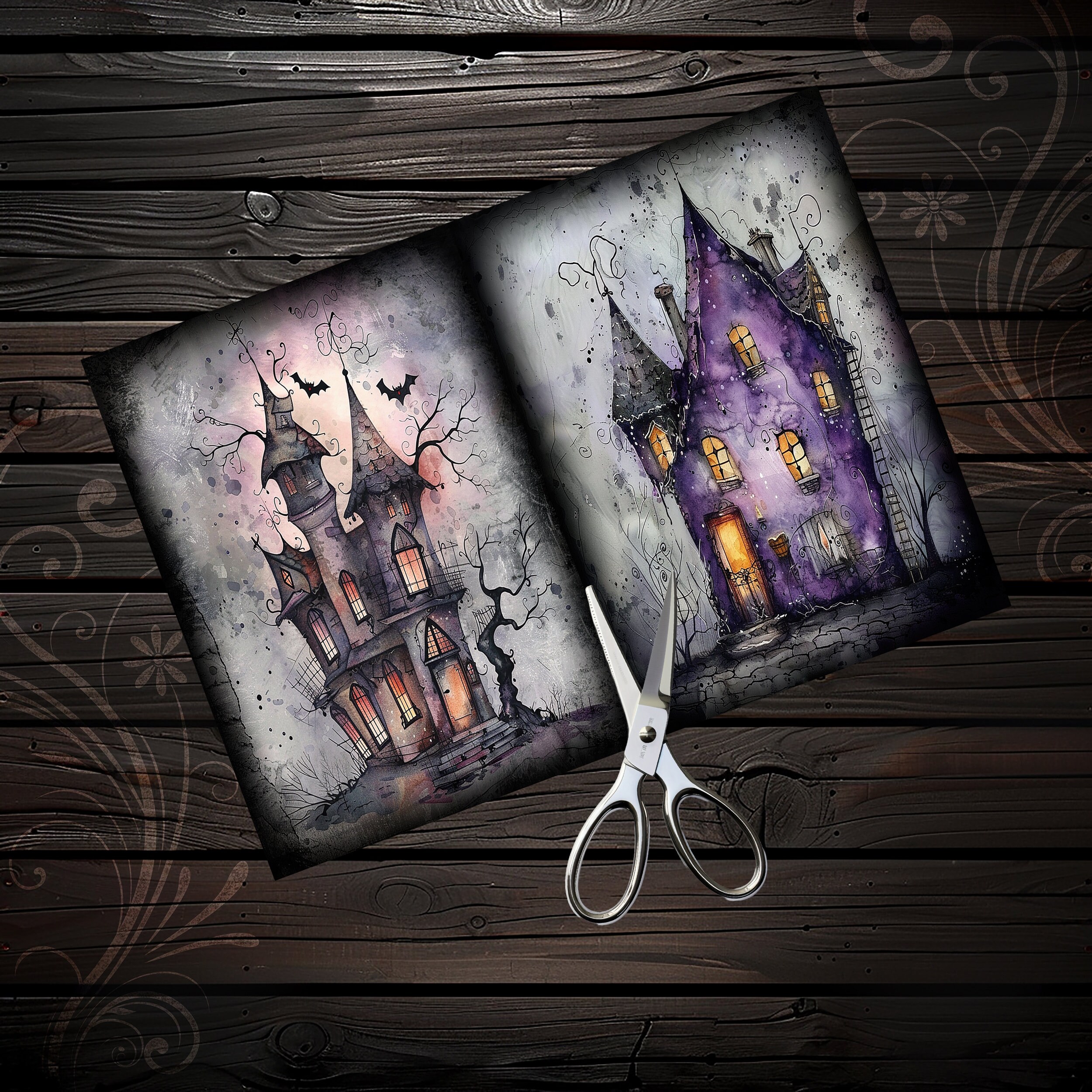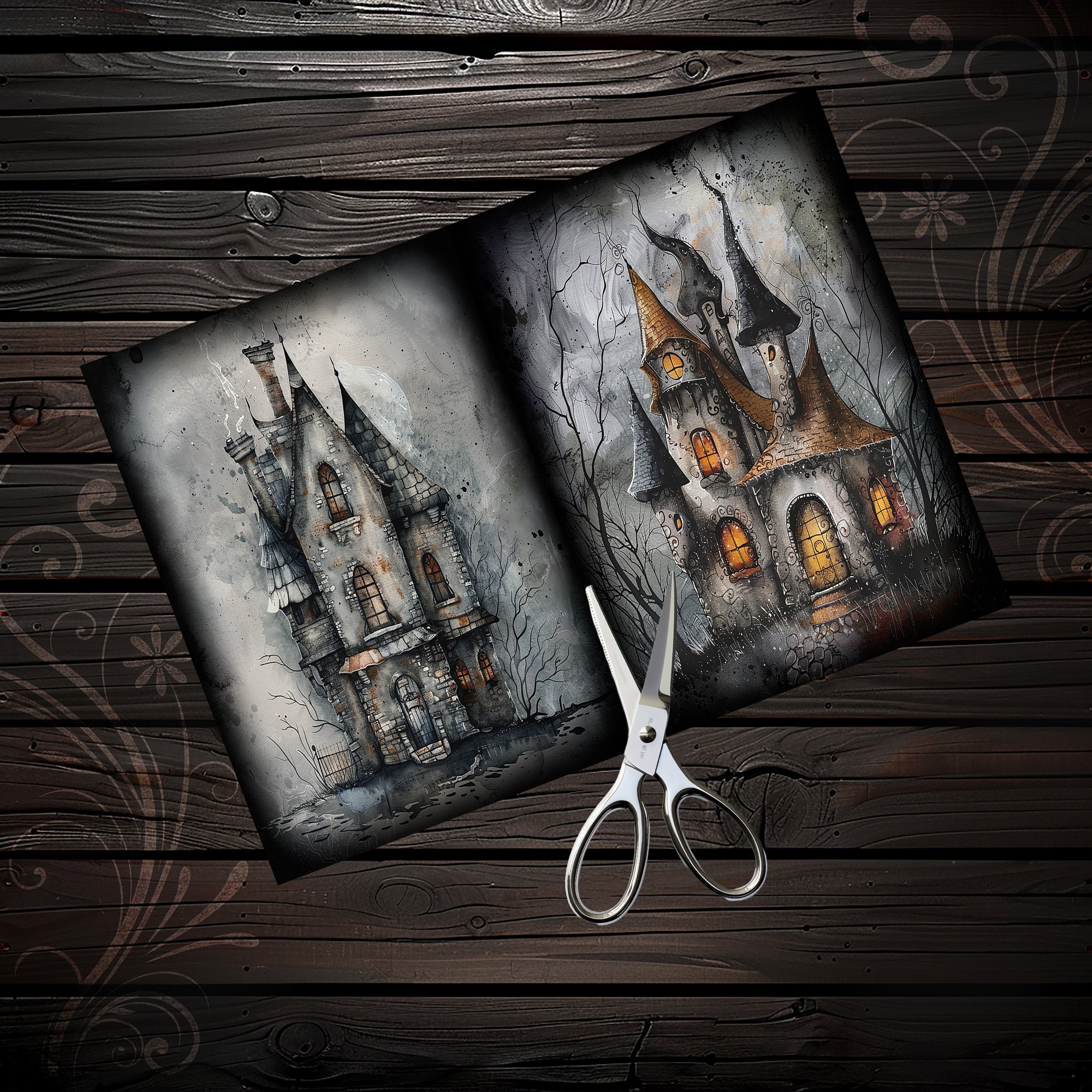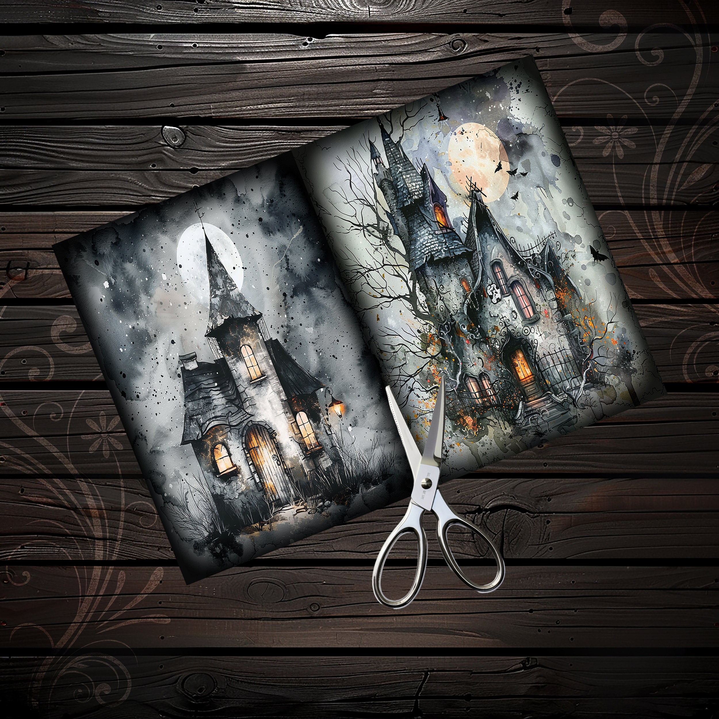 Junk journal haunted house papers, scrapbook, scrapbooking, ephemera, digital paper, gothic, fantasy