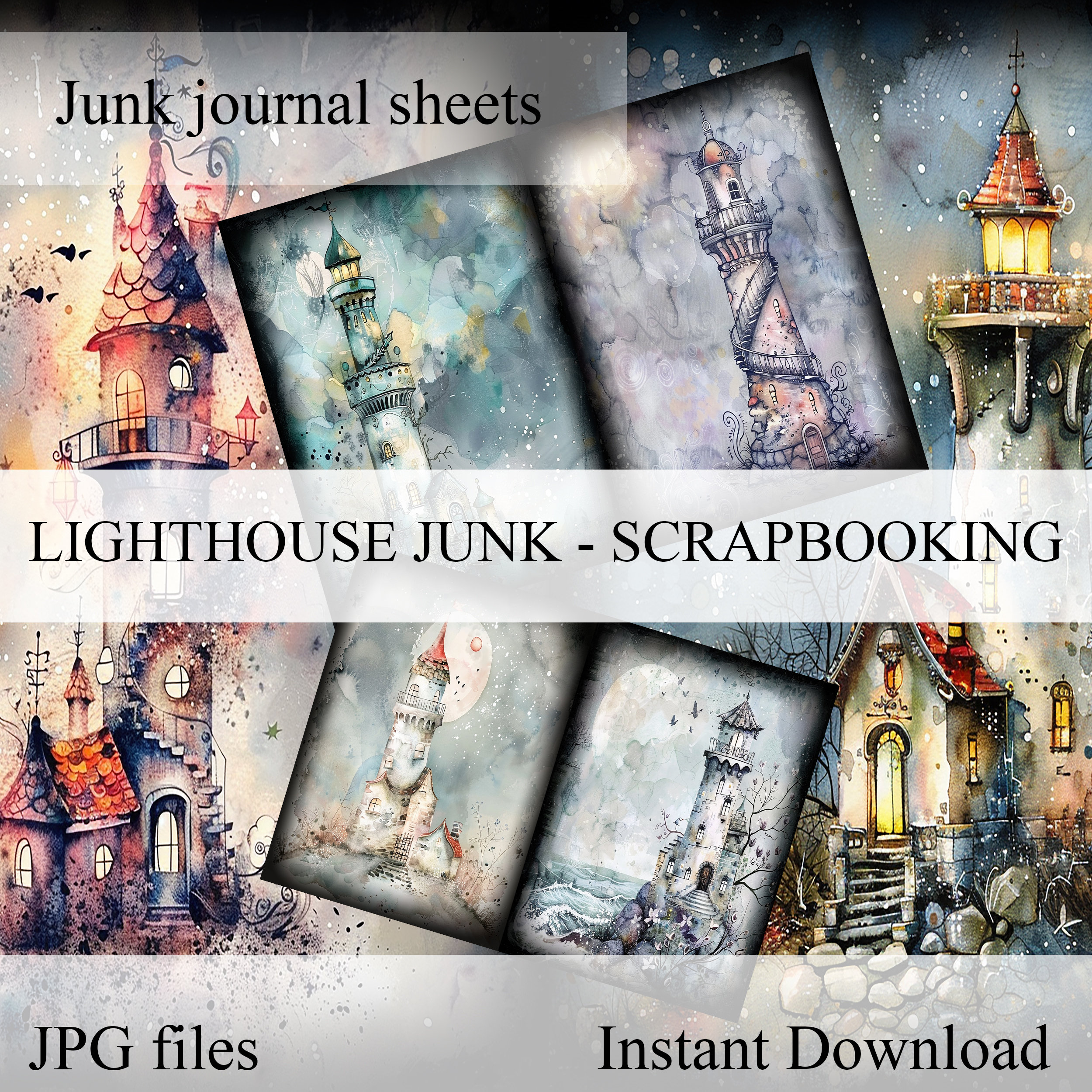 Junk Journal Lighthouse, Junk Journal paper, Scrapbook, handmade, Scrapbooking set, Junk Journal set, Ephemera, Junk Journal kit, digital