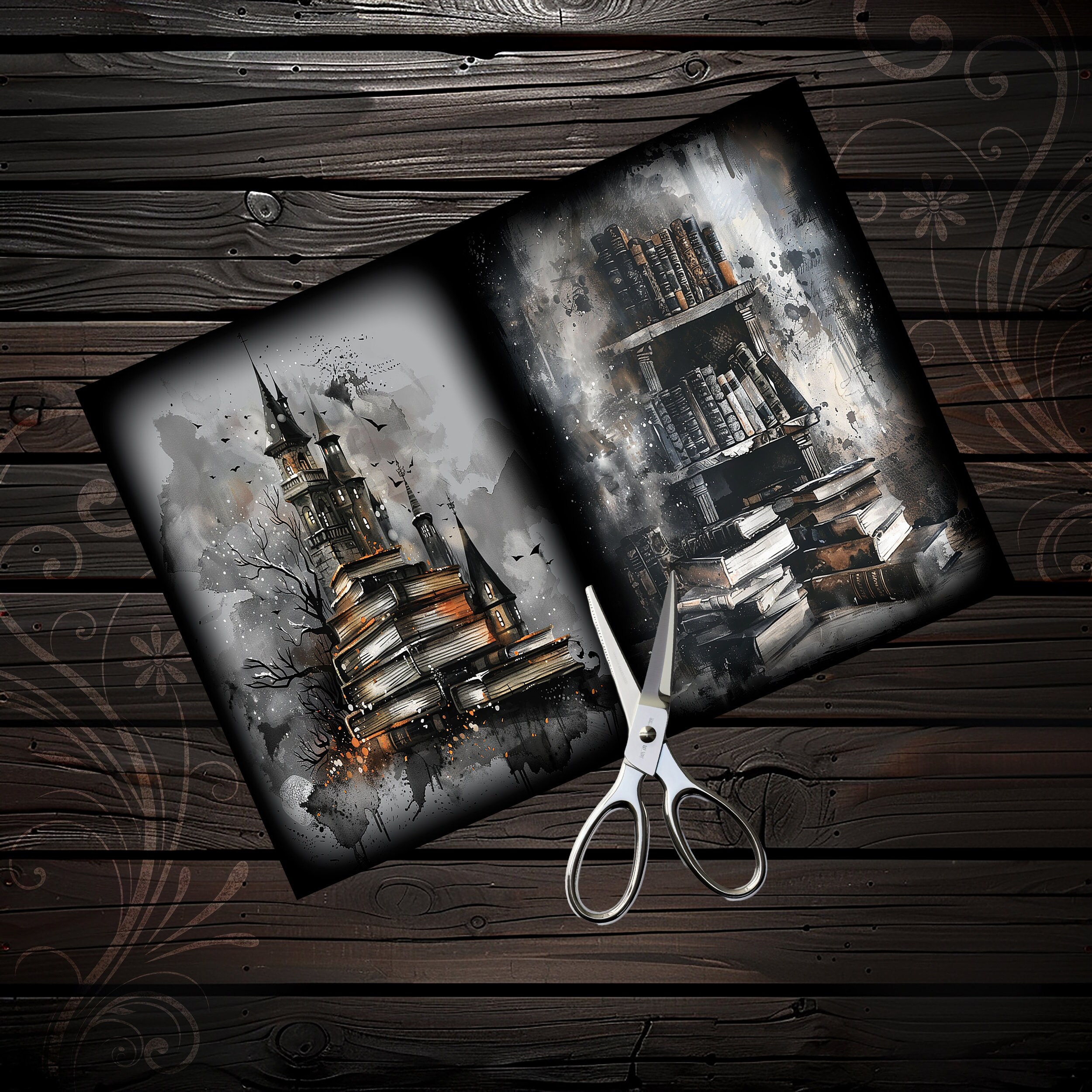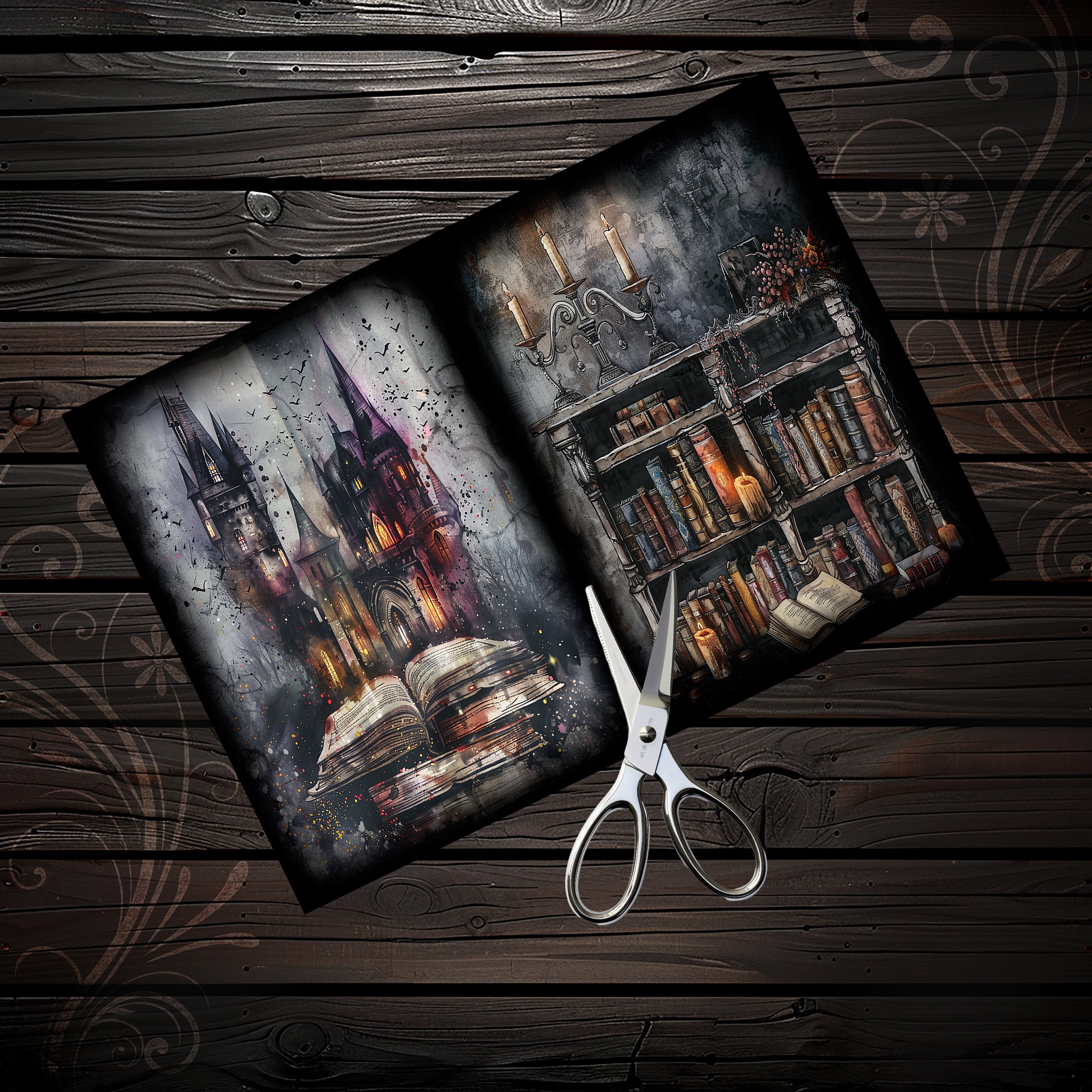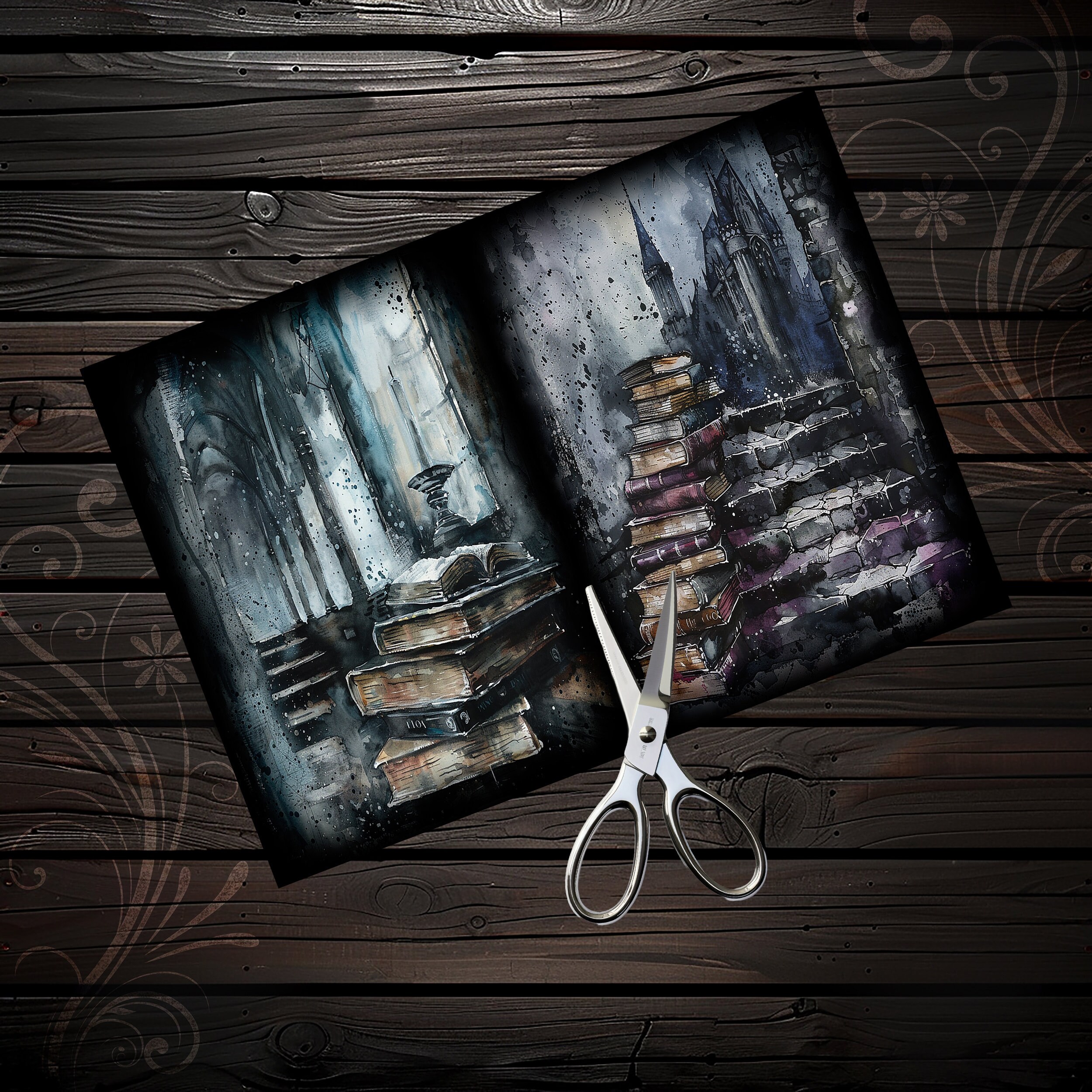 Dark gothic academia junk journal paper, scrapbook, scrapbooking, fantasy, ephemera, diary papers - digital paper - fantasy