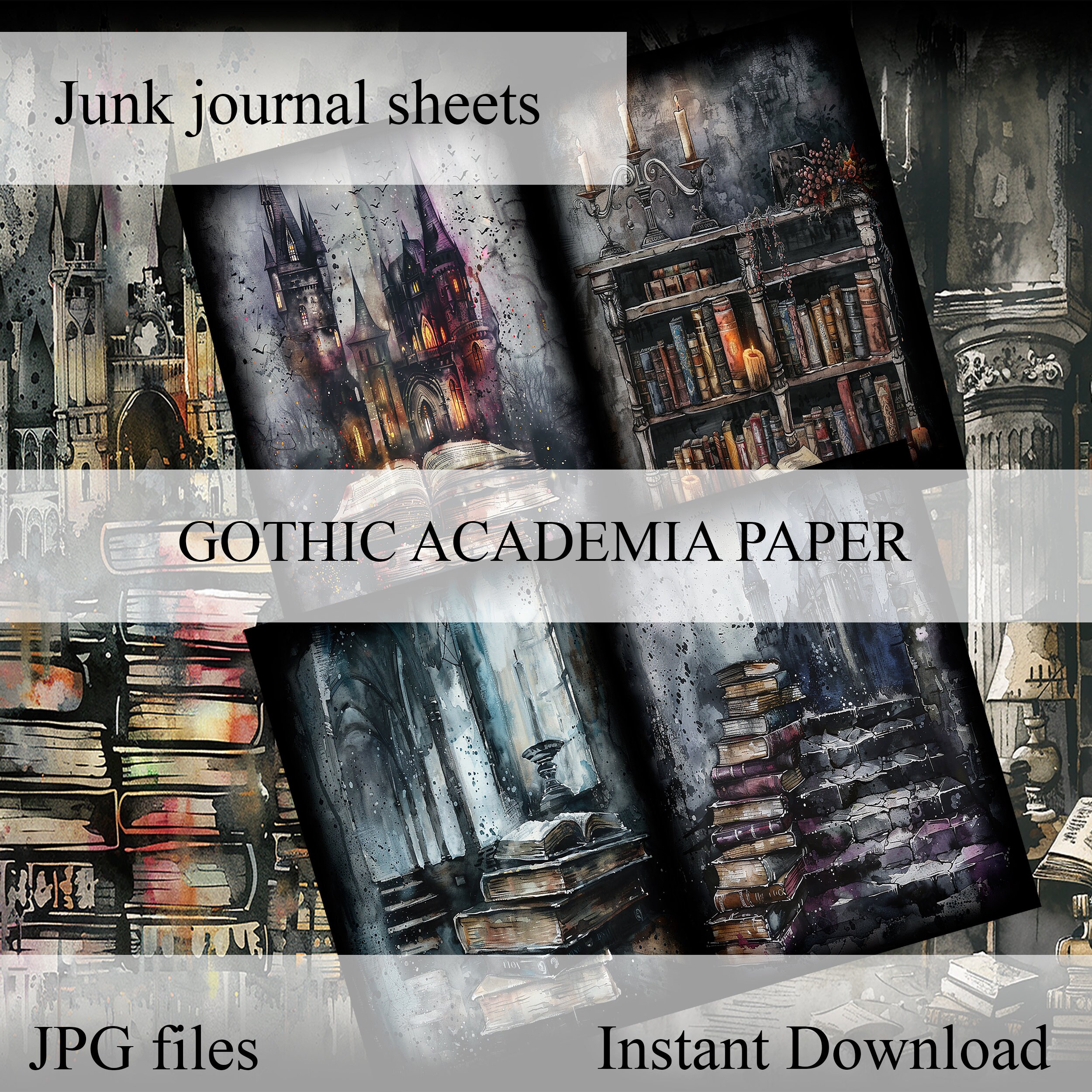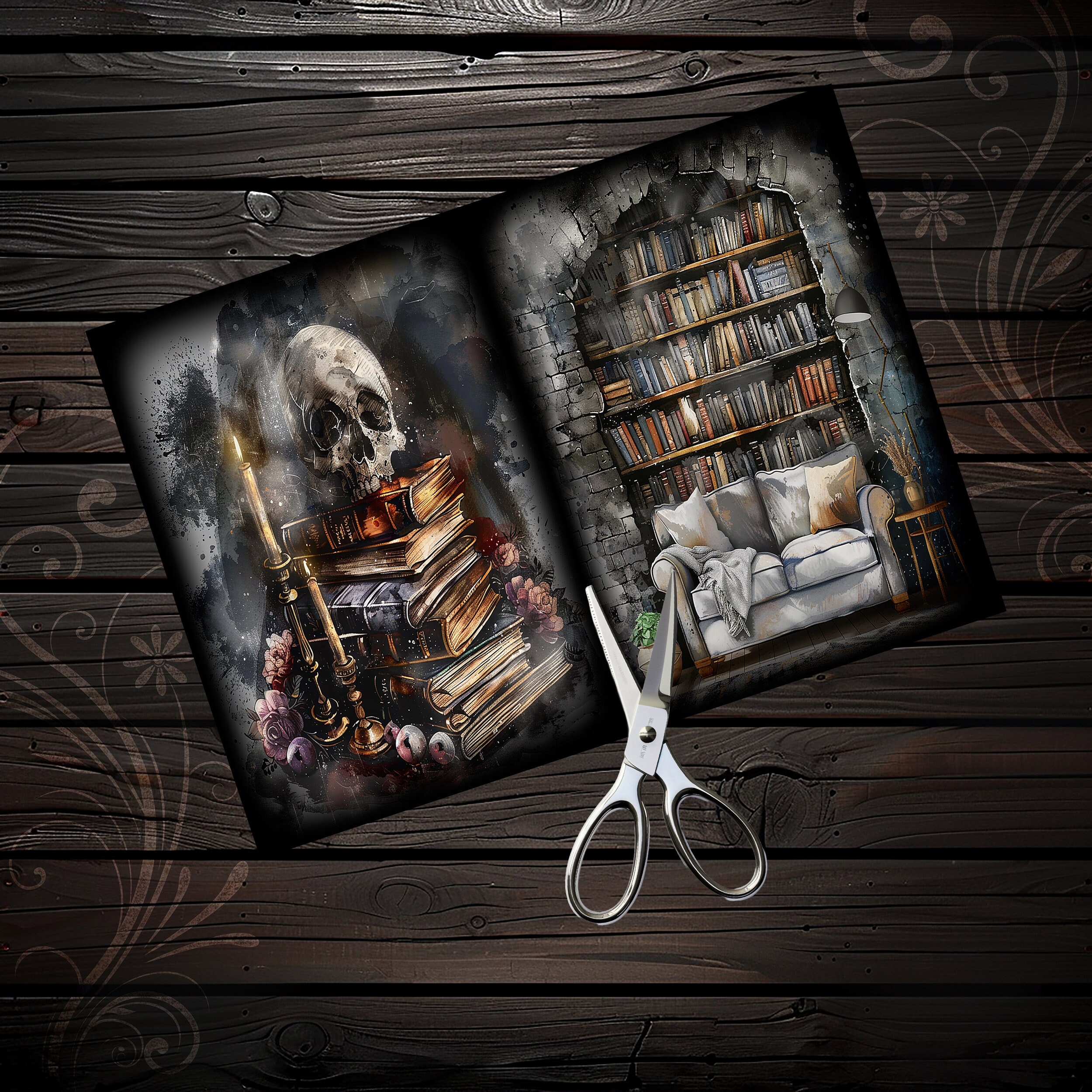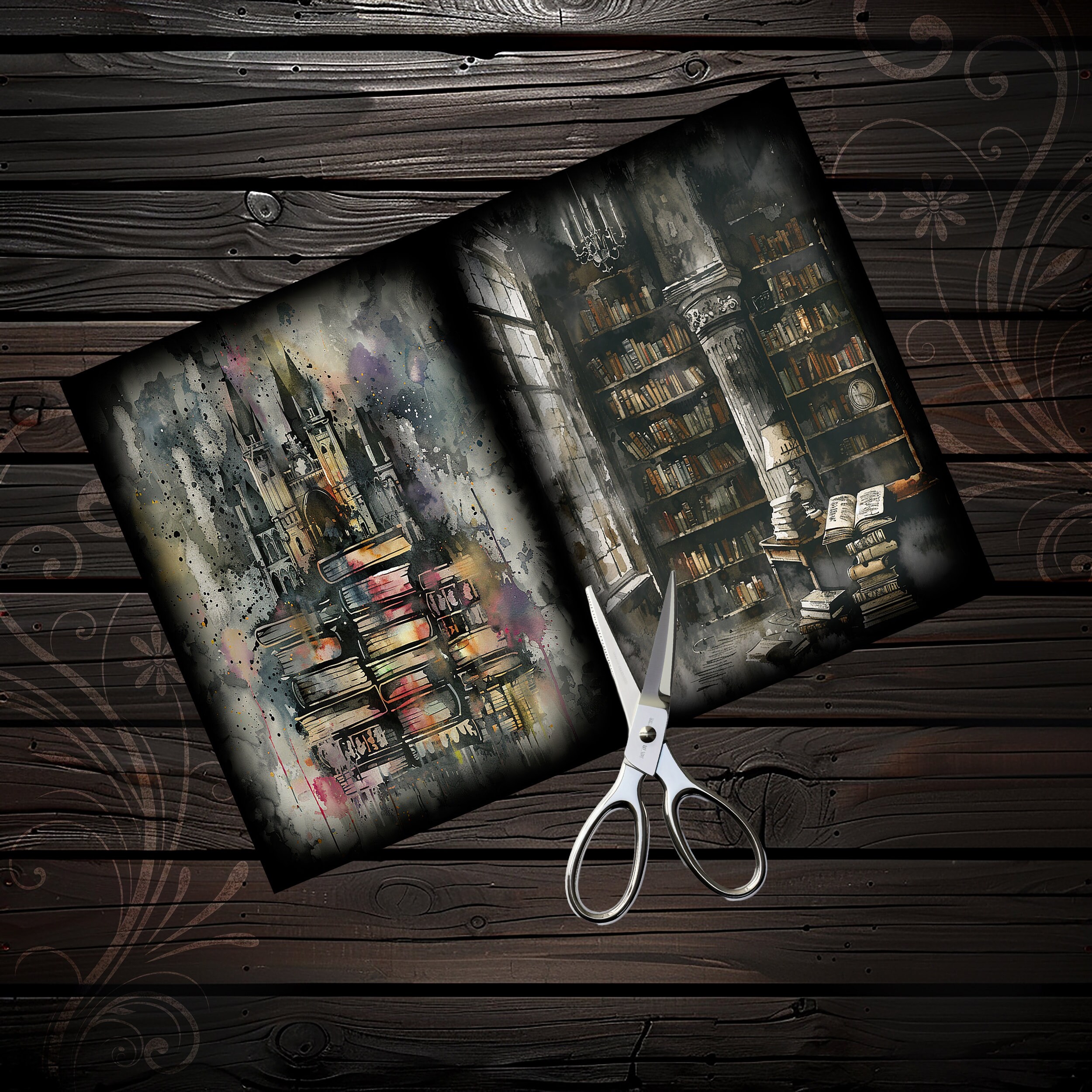 Dark gothic academia junk journal paper, scrapbook, scrapbooking, fantasy, ephemera, diary papers - digital paper - fantasy