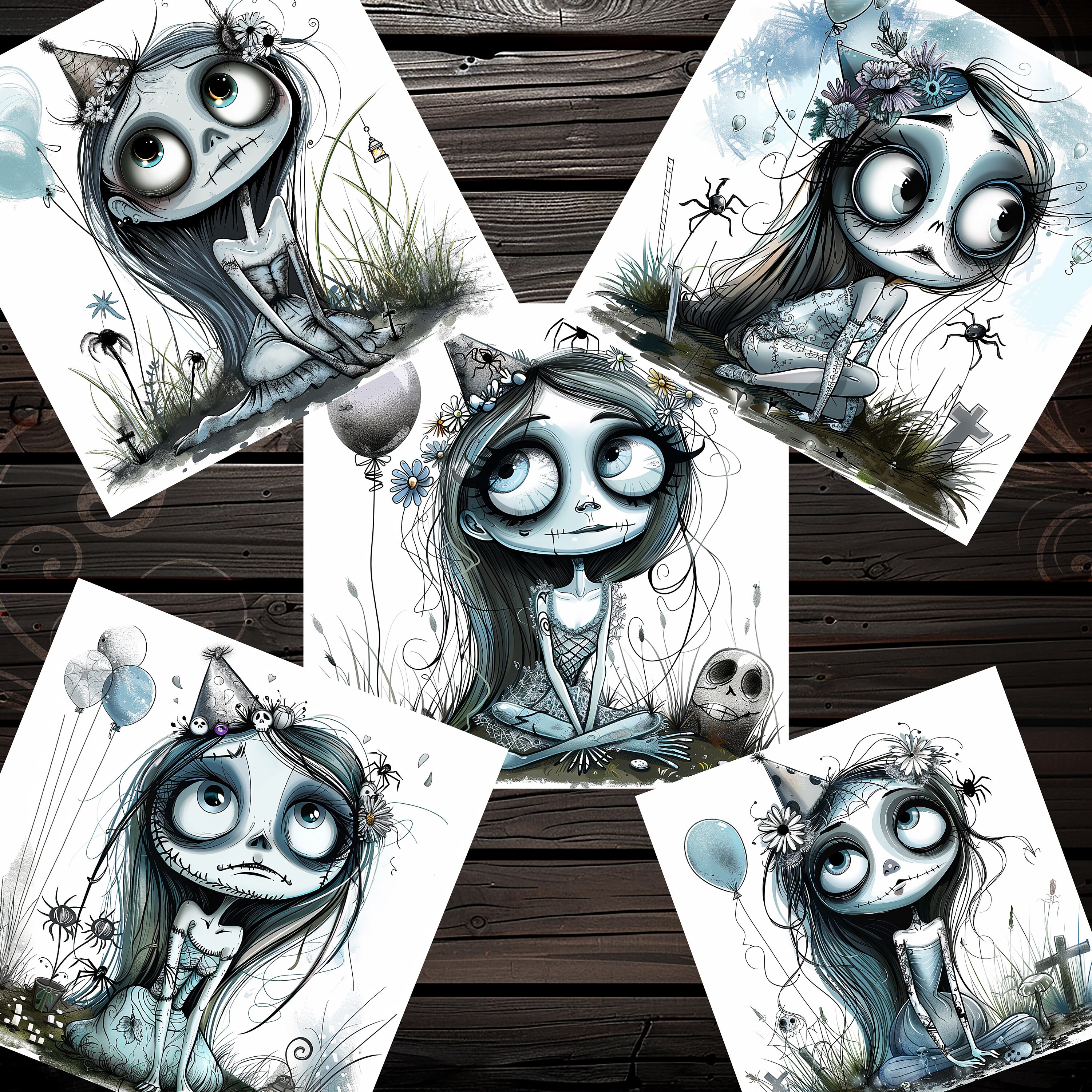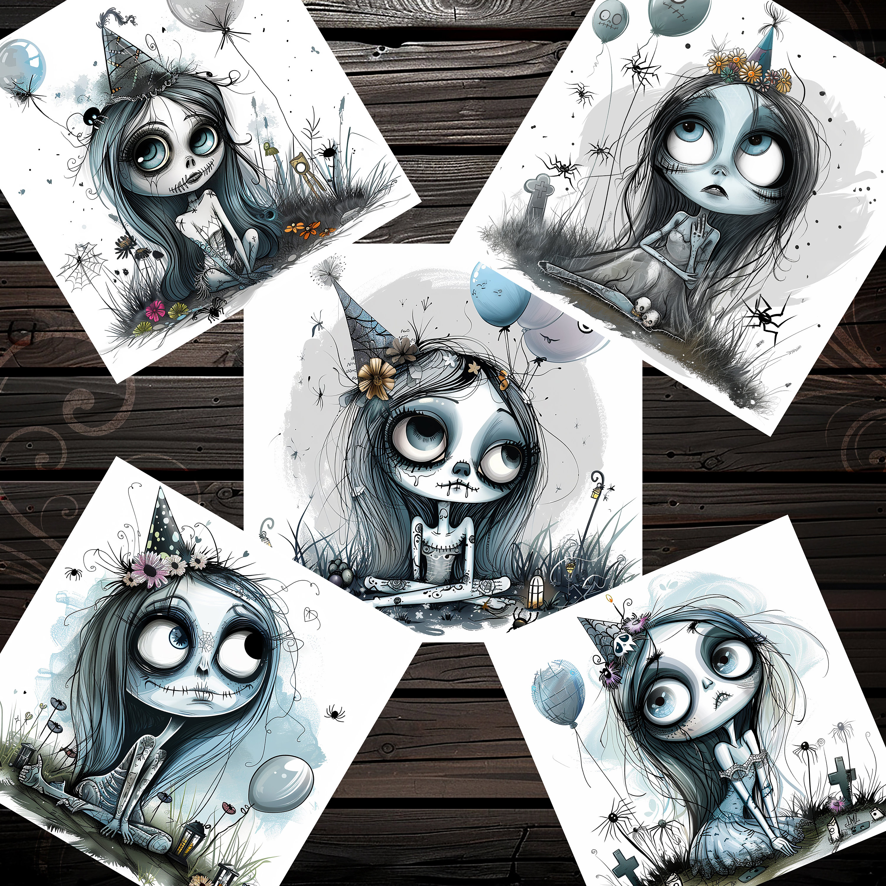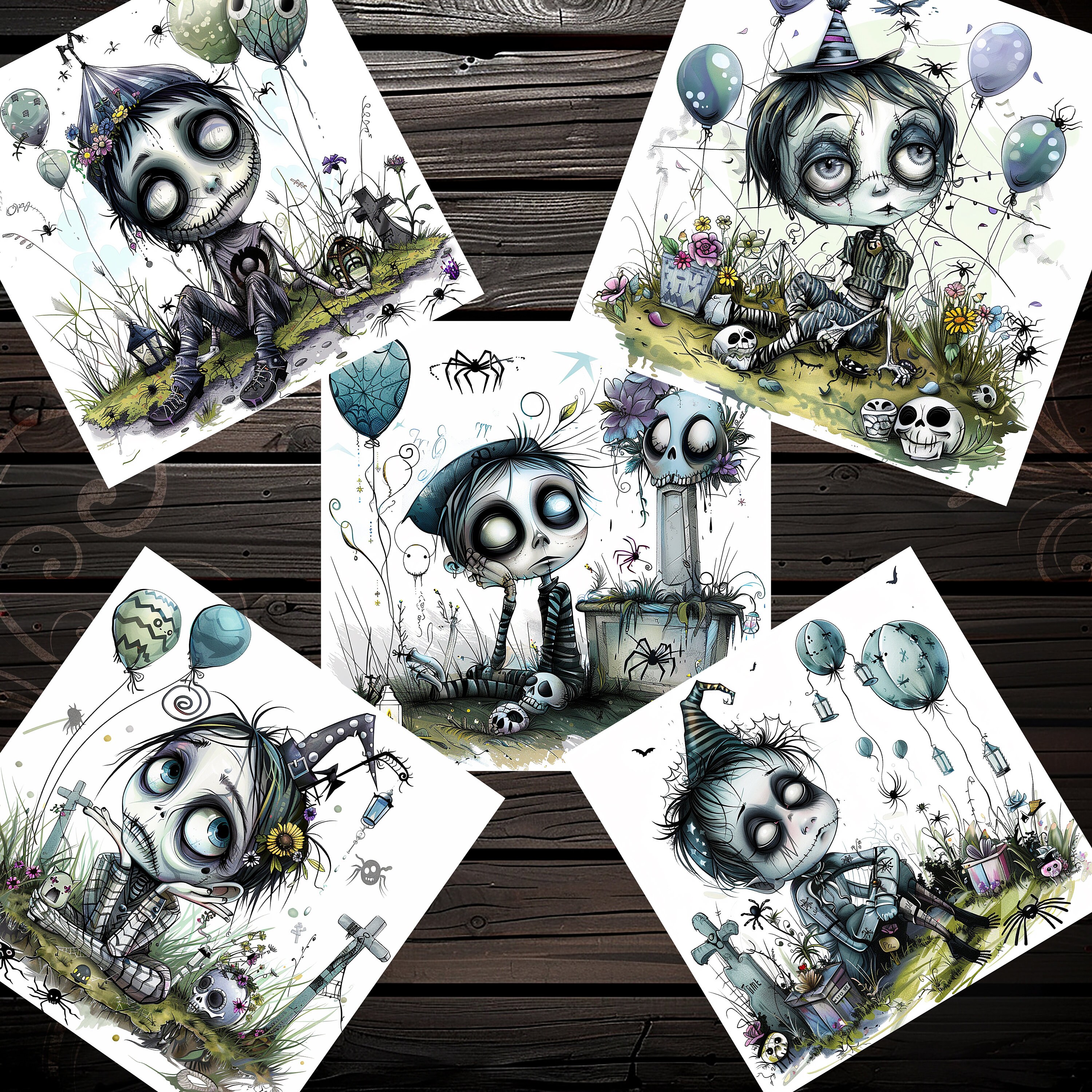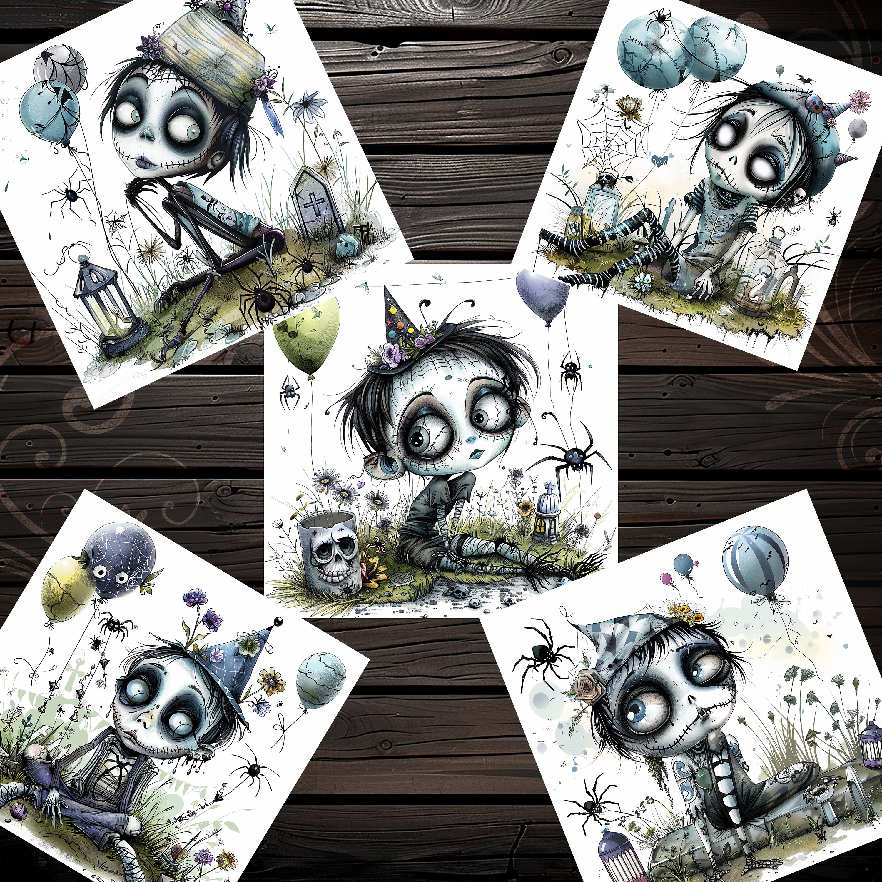 Clip arts gothic birthday stickers, junk journal sticker, scrapbooking stickers, ephemera, digital, Tim Burton style, printable paper