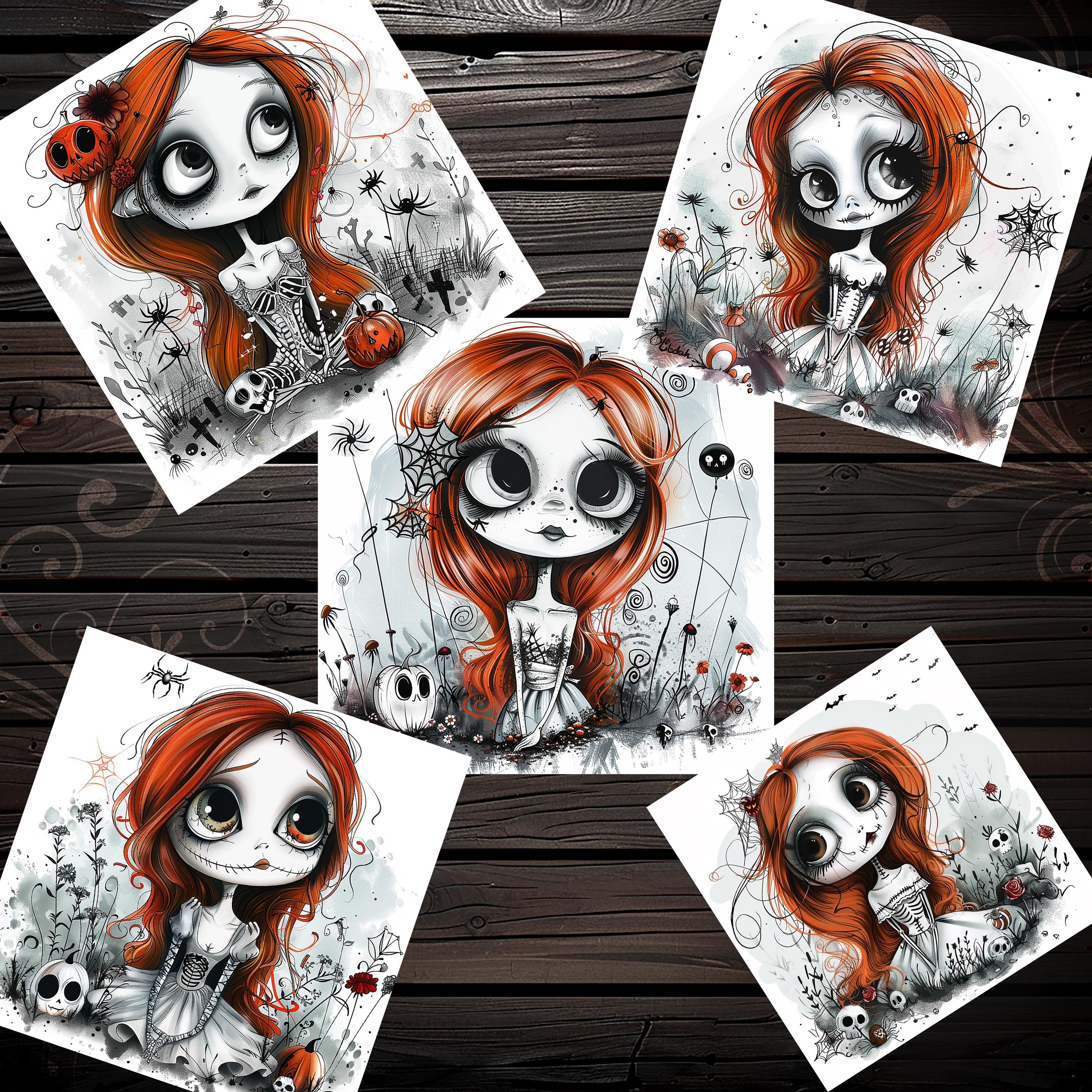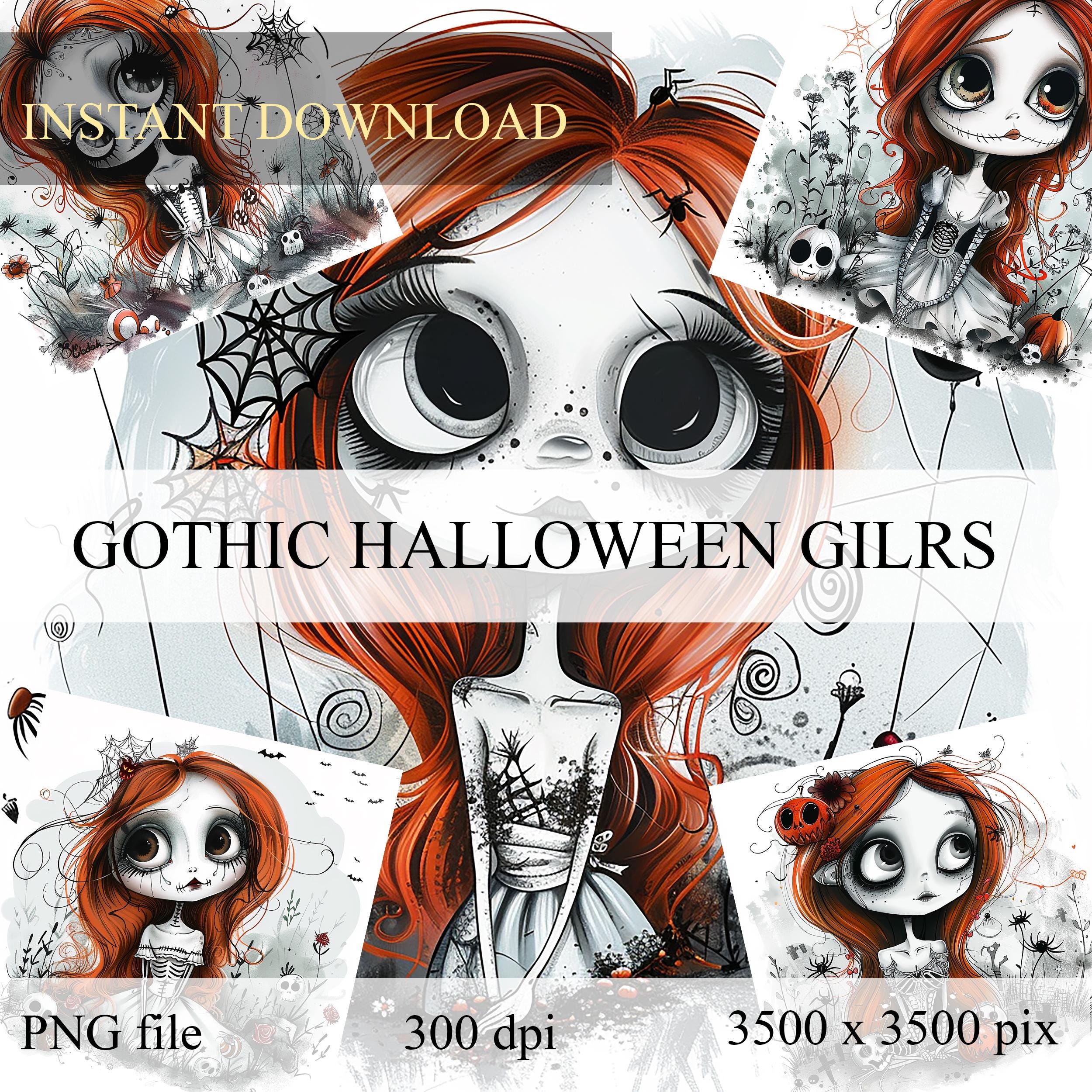 Clipart Halloween gothic girls stickers, junk journal sticker, scrapbook, scrapbooking stickers, ephemera, dark fantasy, tim burton style