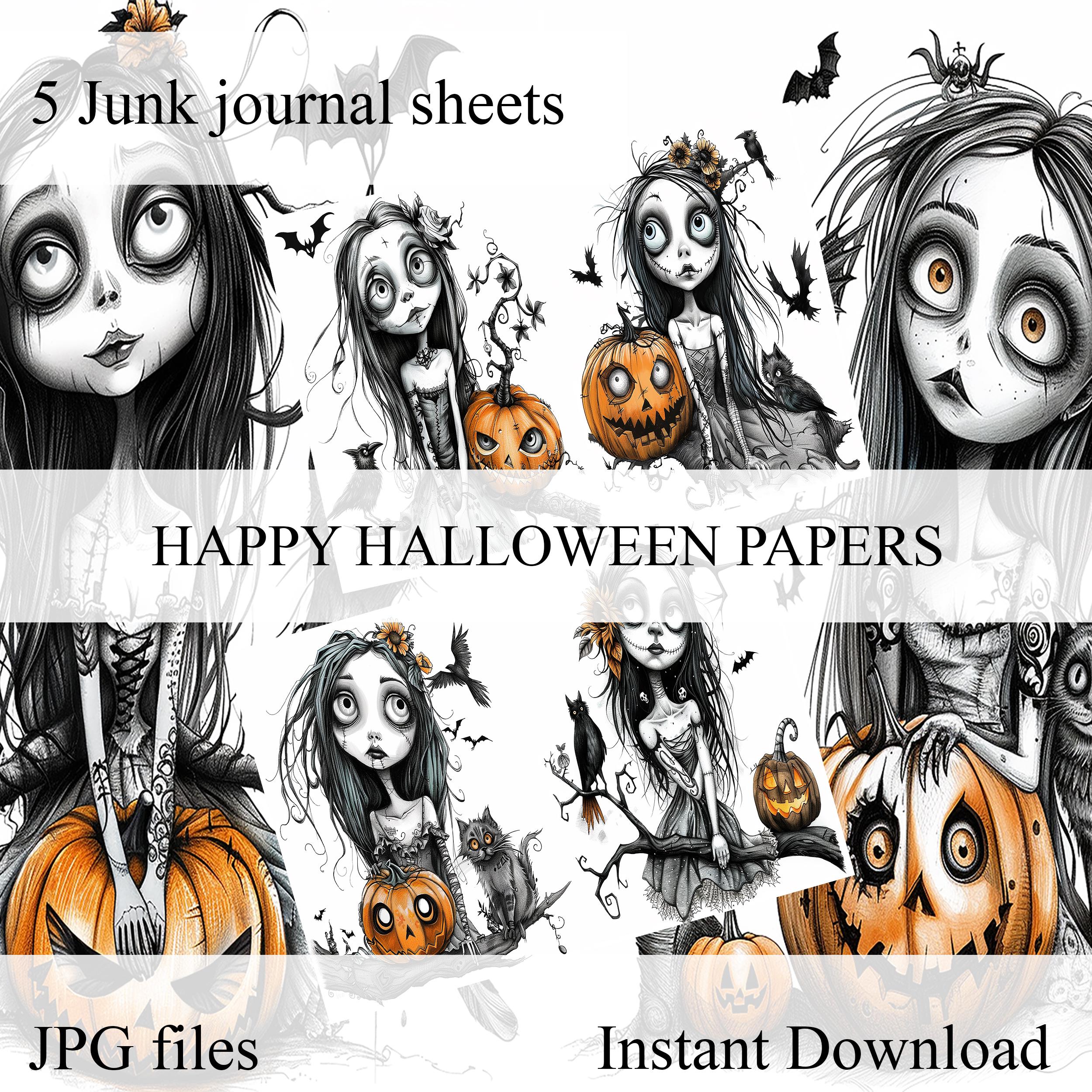 Happy Halloween junk journal paper, scrapbook, scrapbooking set, collage, ephemera, gothic, dark fantasy, clipart, fantasy, digital