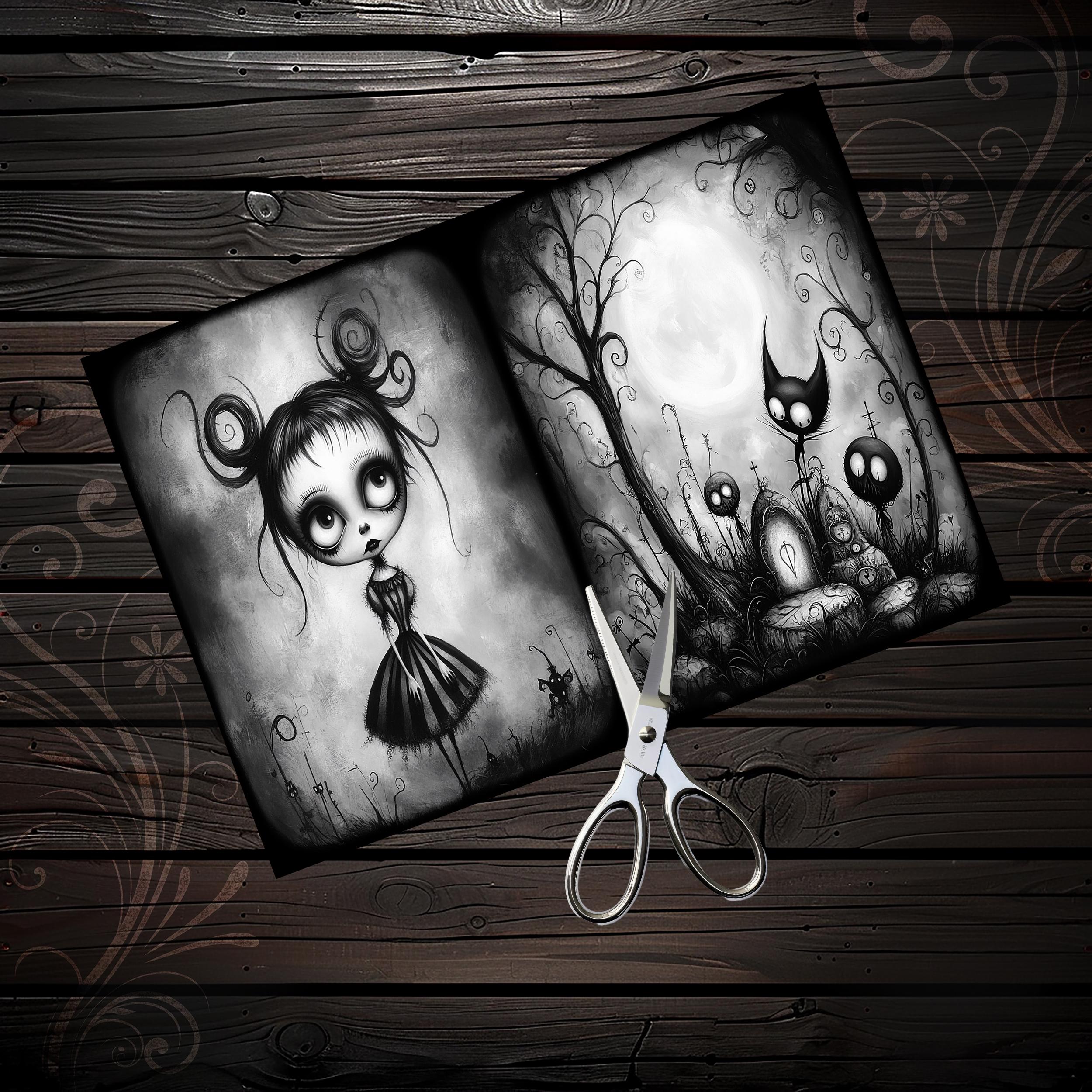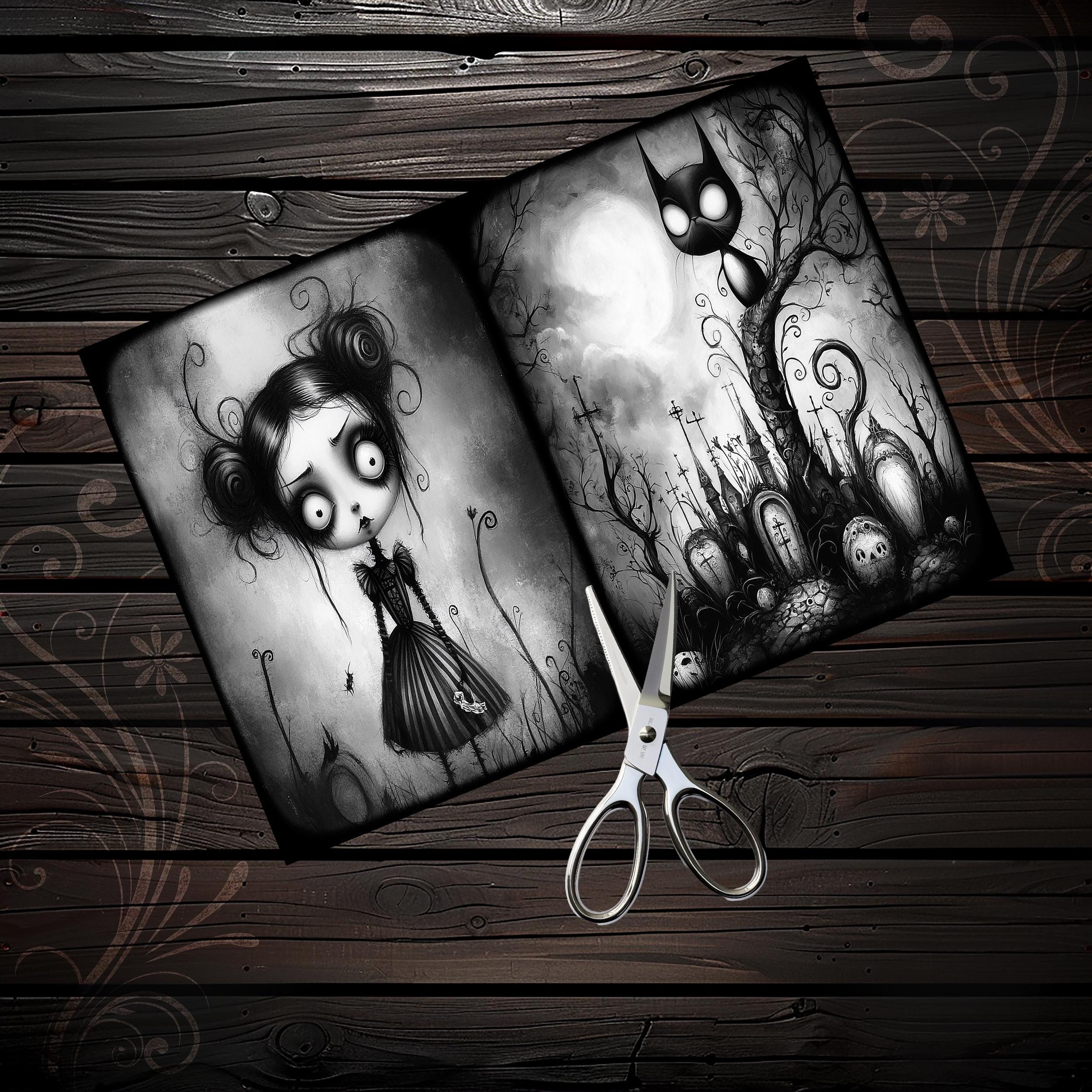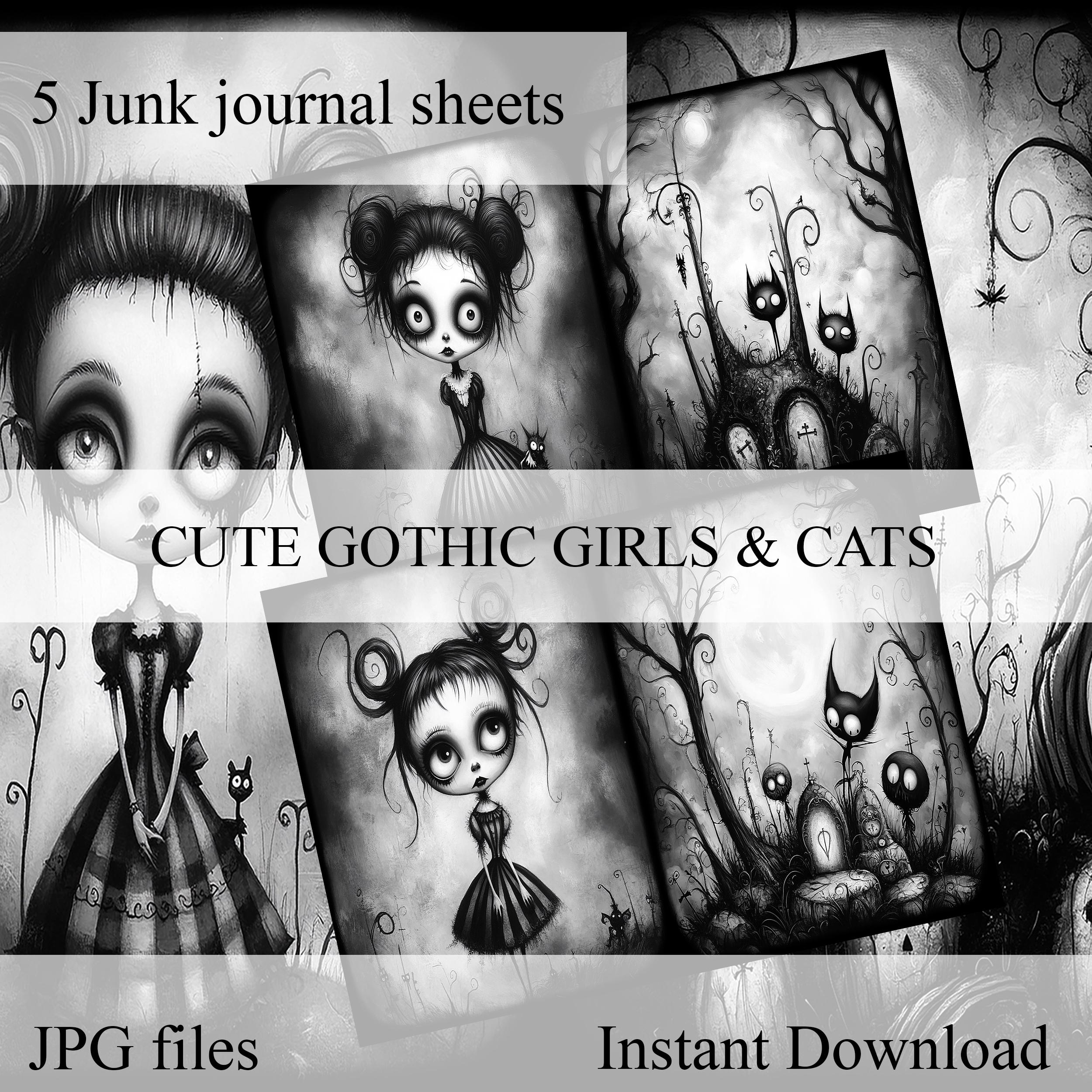 Cute gothic girls and cats junk journal paper, scrapbook, scrapbooking set, ephemera, digital, printable paper, halloween