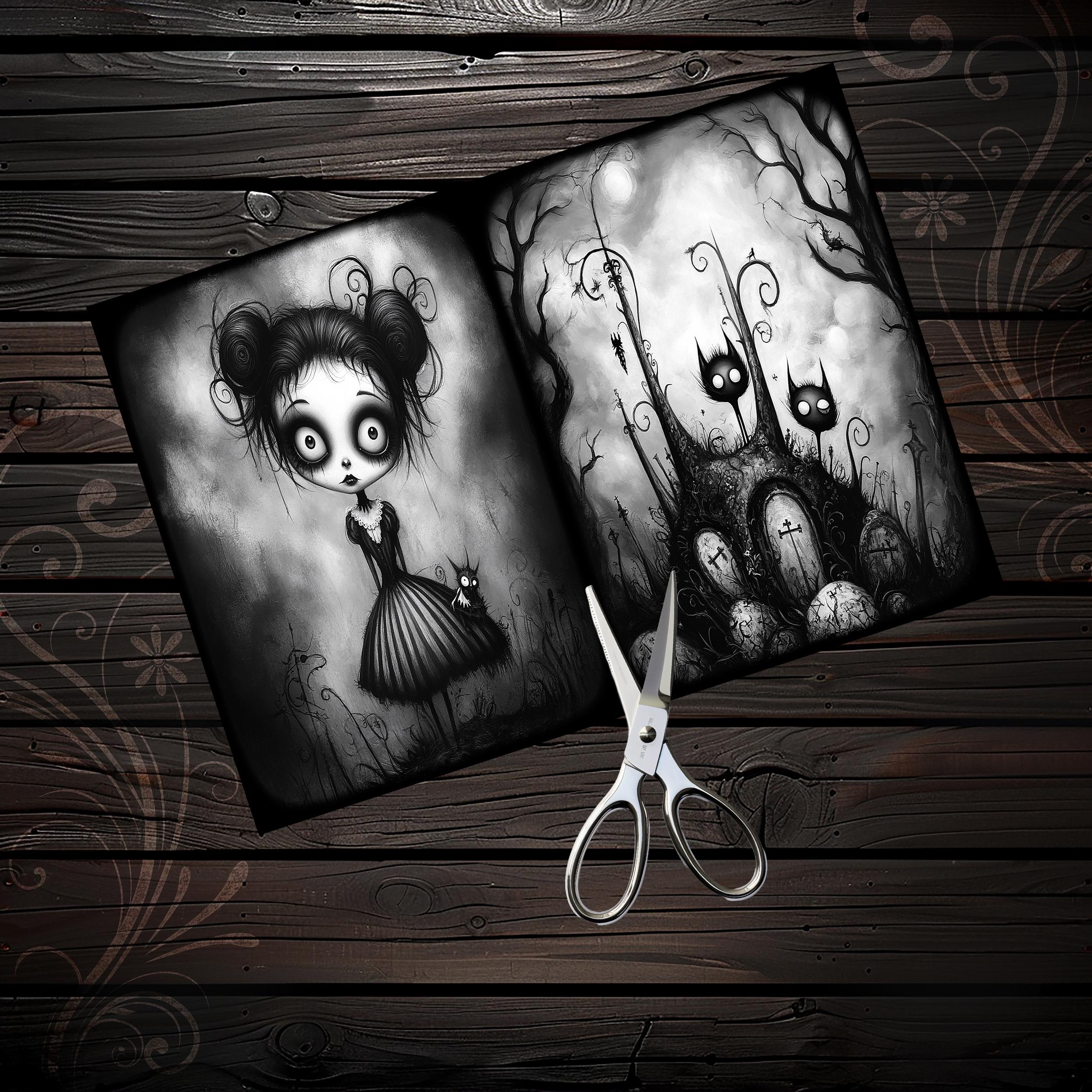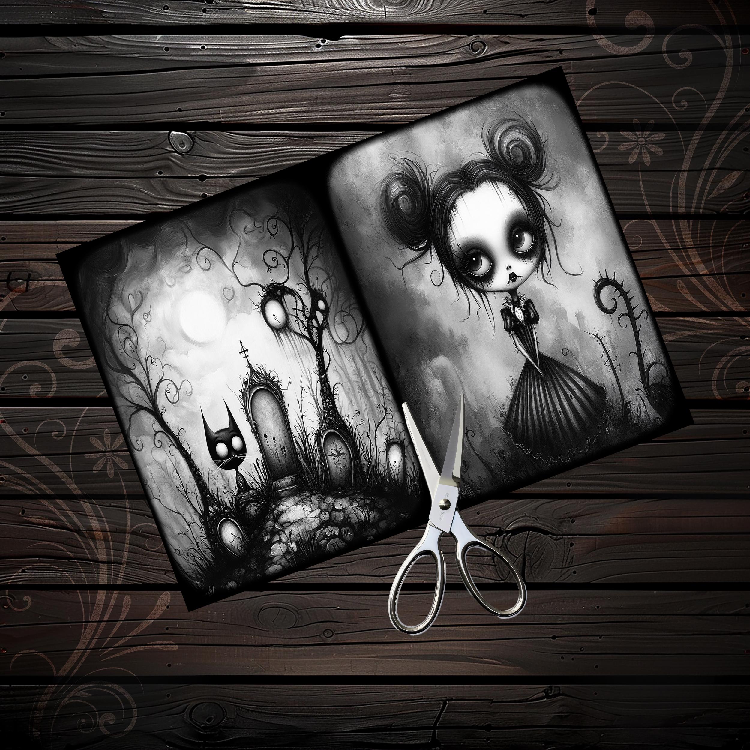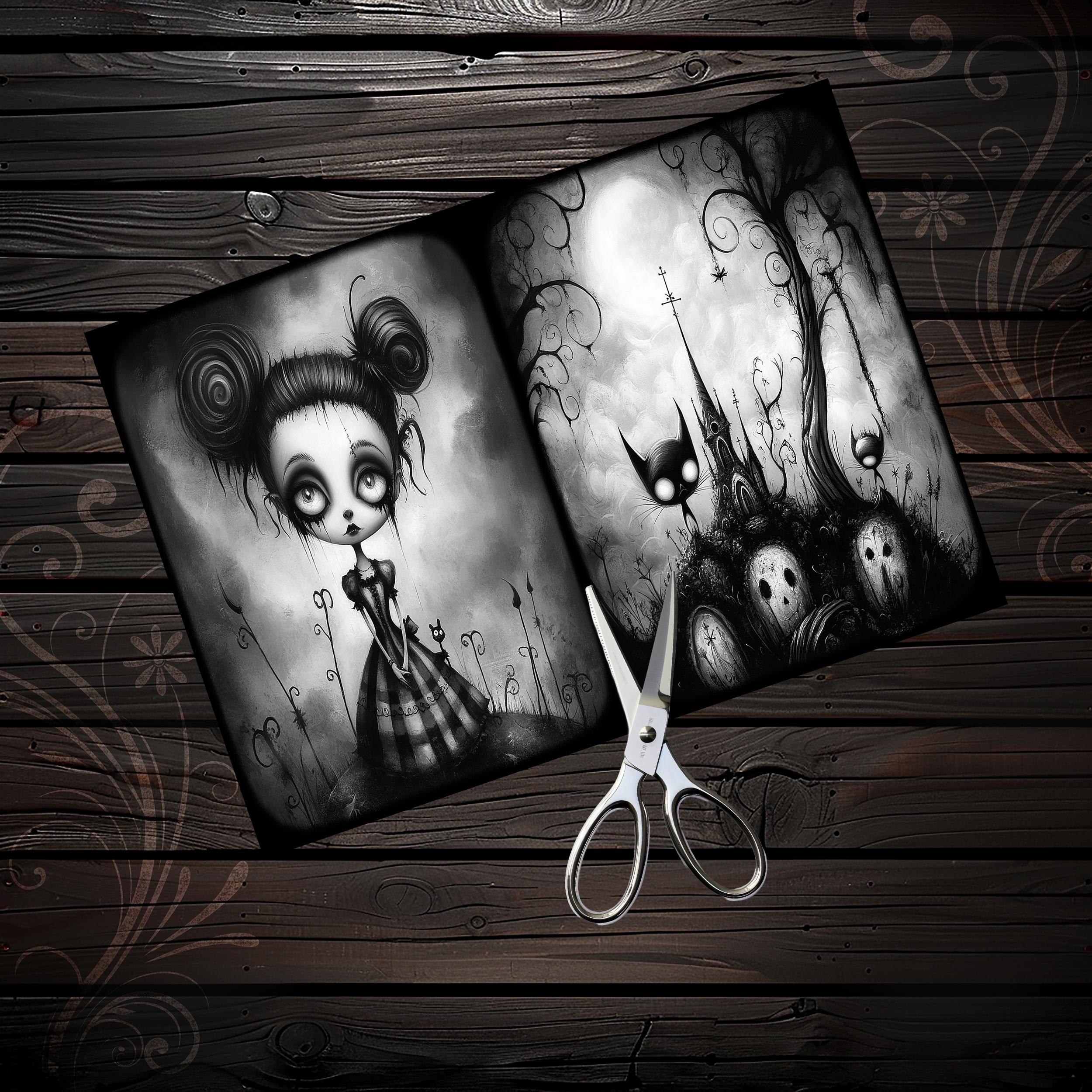 Cute gothic girls and cats junk journal paper, scrapbook, scrapbooking set, ephemera, digital, printable paper, halloween