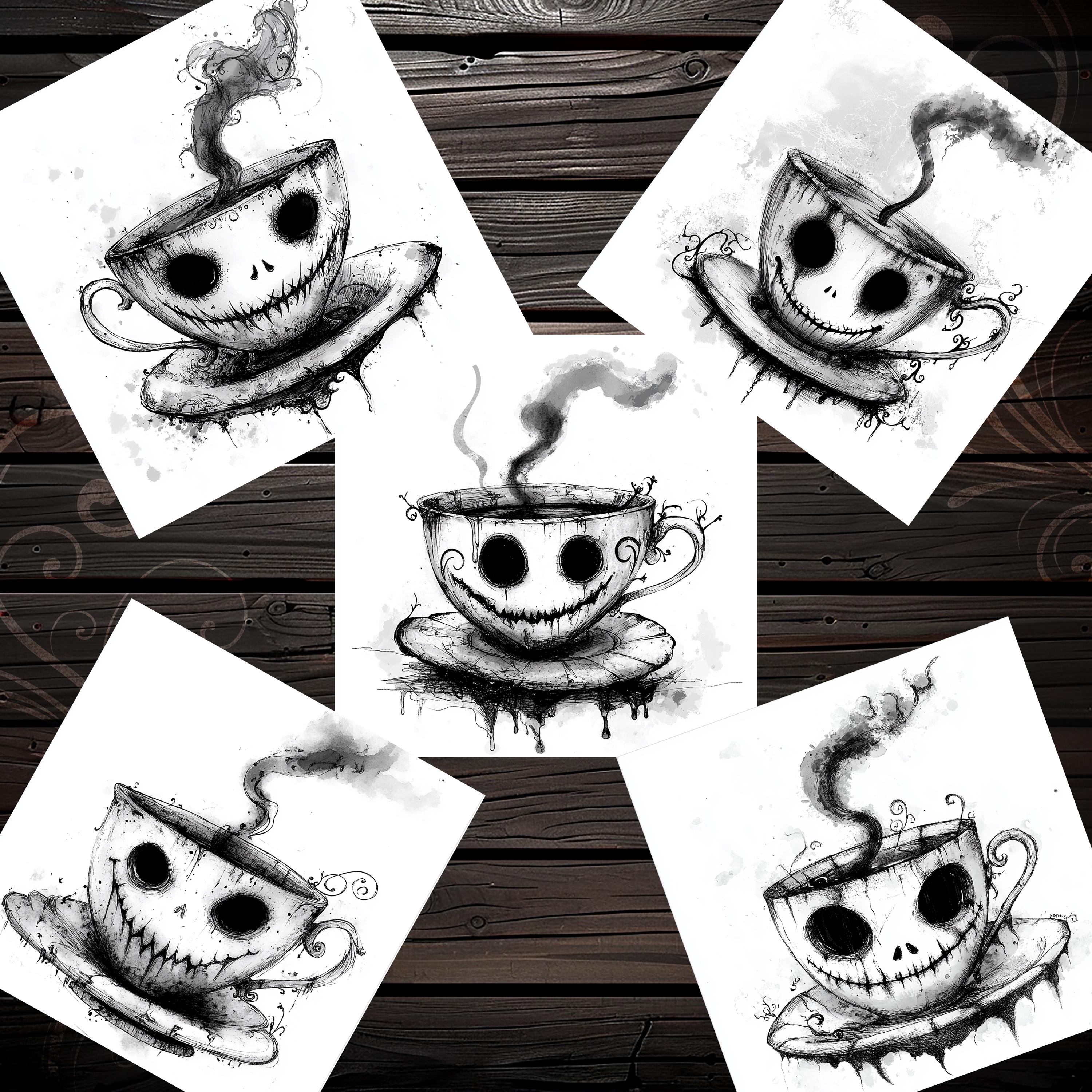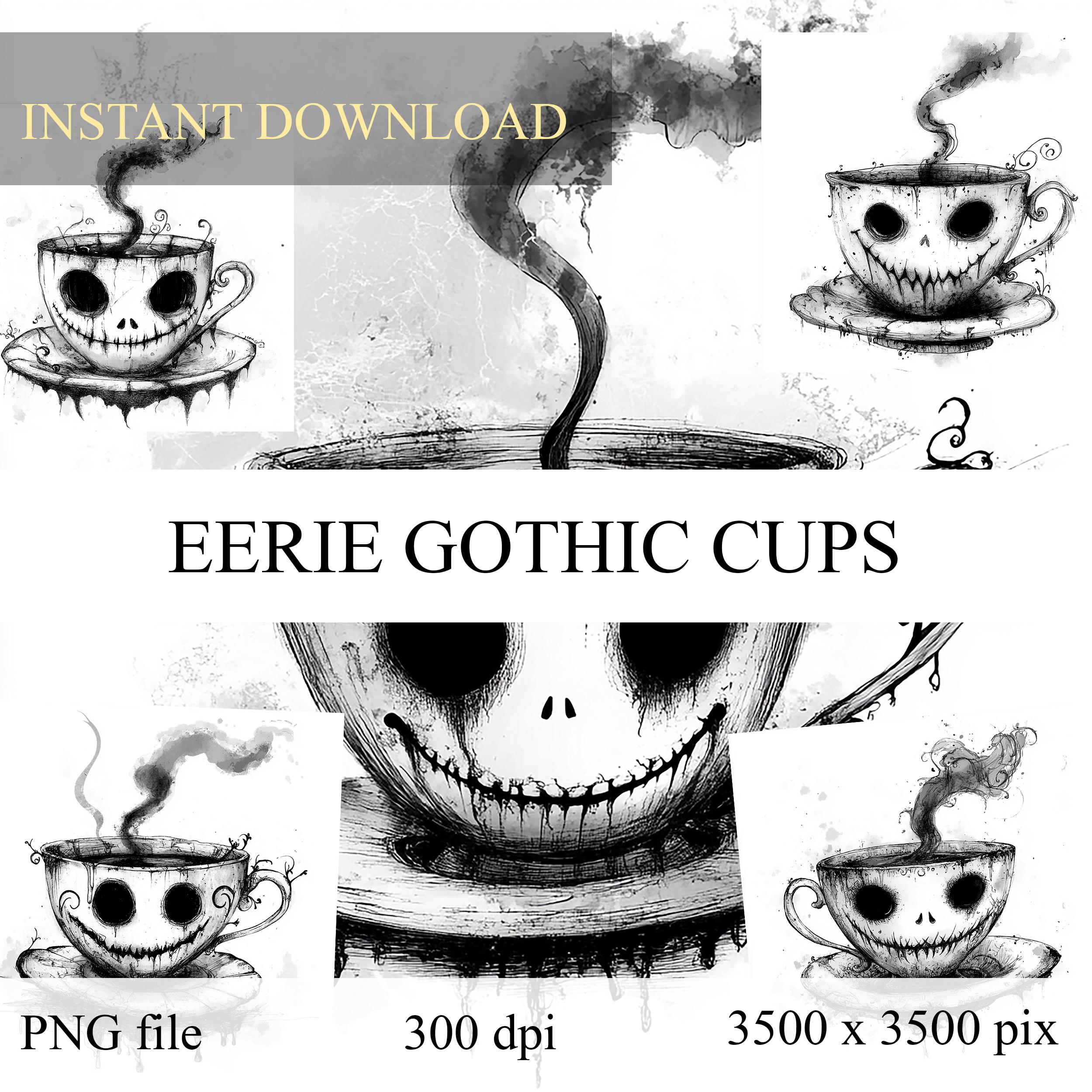 Clipart gothic eerie tea cup stickers, scrapbooking sticker, scrapbook handmade, ephemera, junk journal stickers, digital