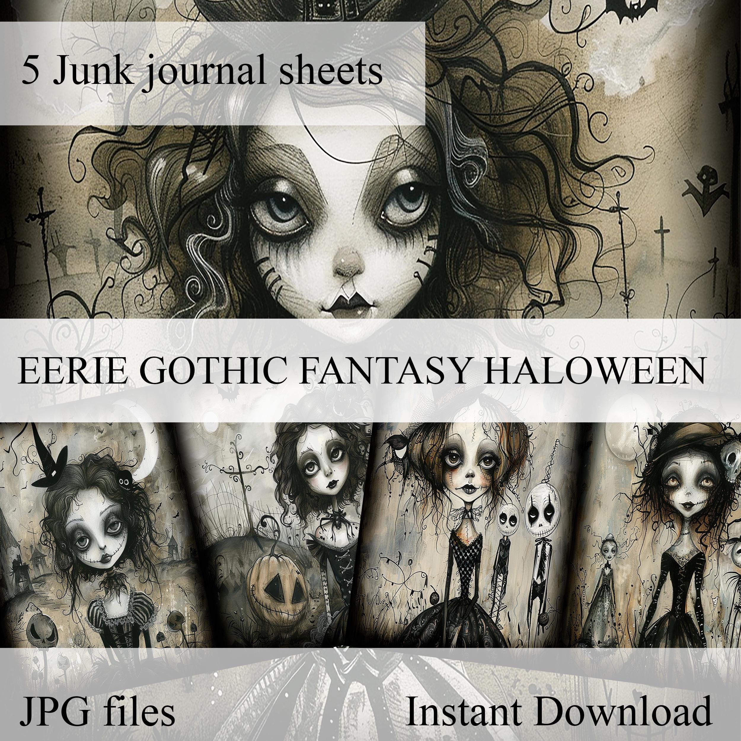 Eerie gothic Halloween junk journal witches paper, scrapbook, scrapbooking set, junk journal kit, ephemera, fantasy, printable paper