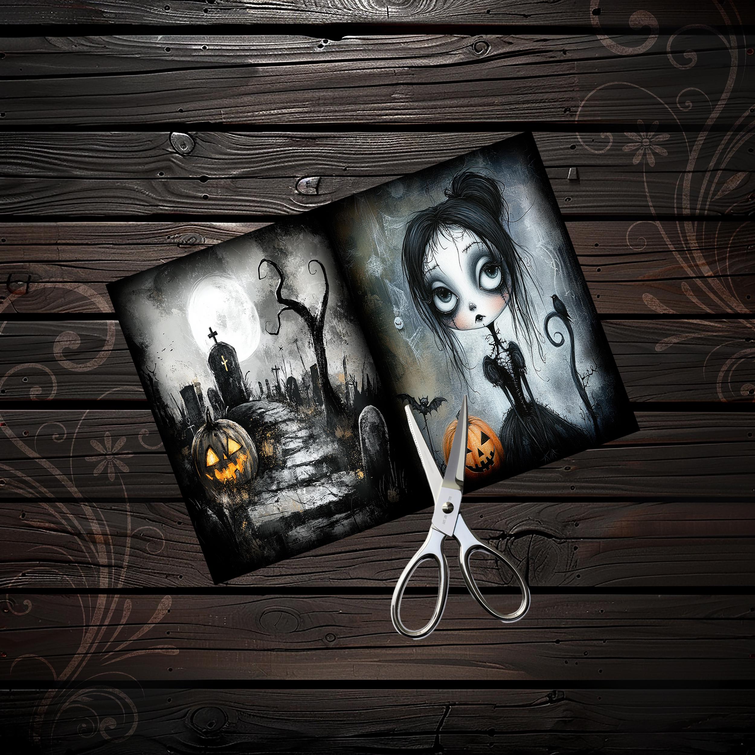 Eerie cute gothic Halloween junk journal witches paper, scrapbook, scrapbooking set, junk journal kit, ephemera, fantasy, printable paper