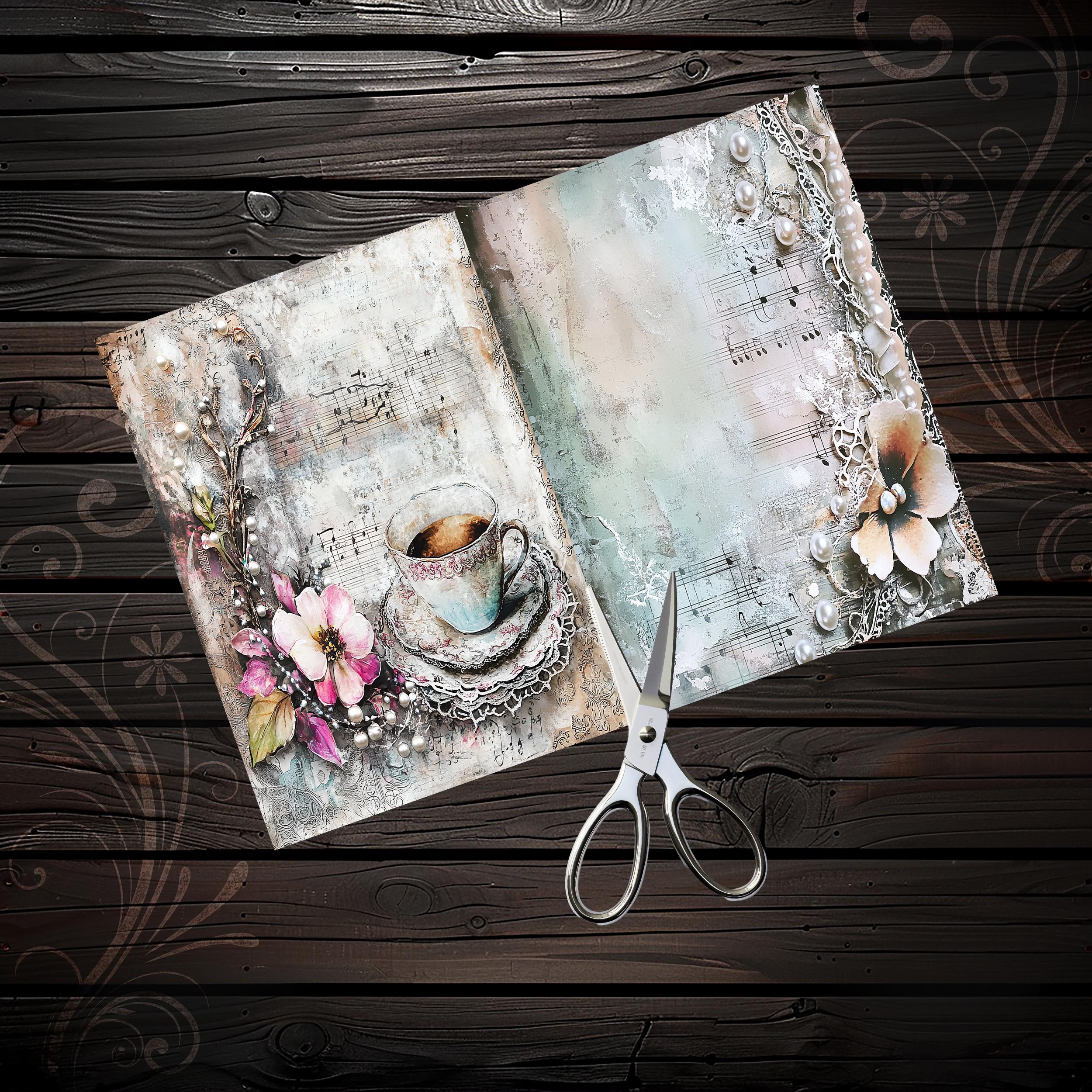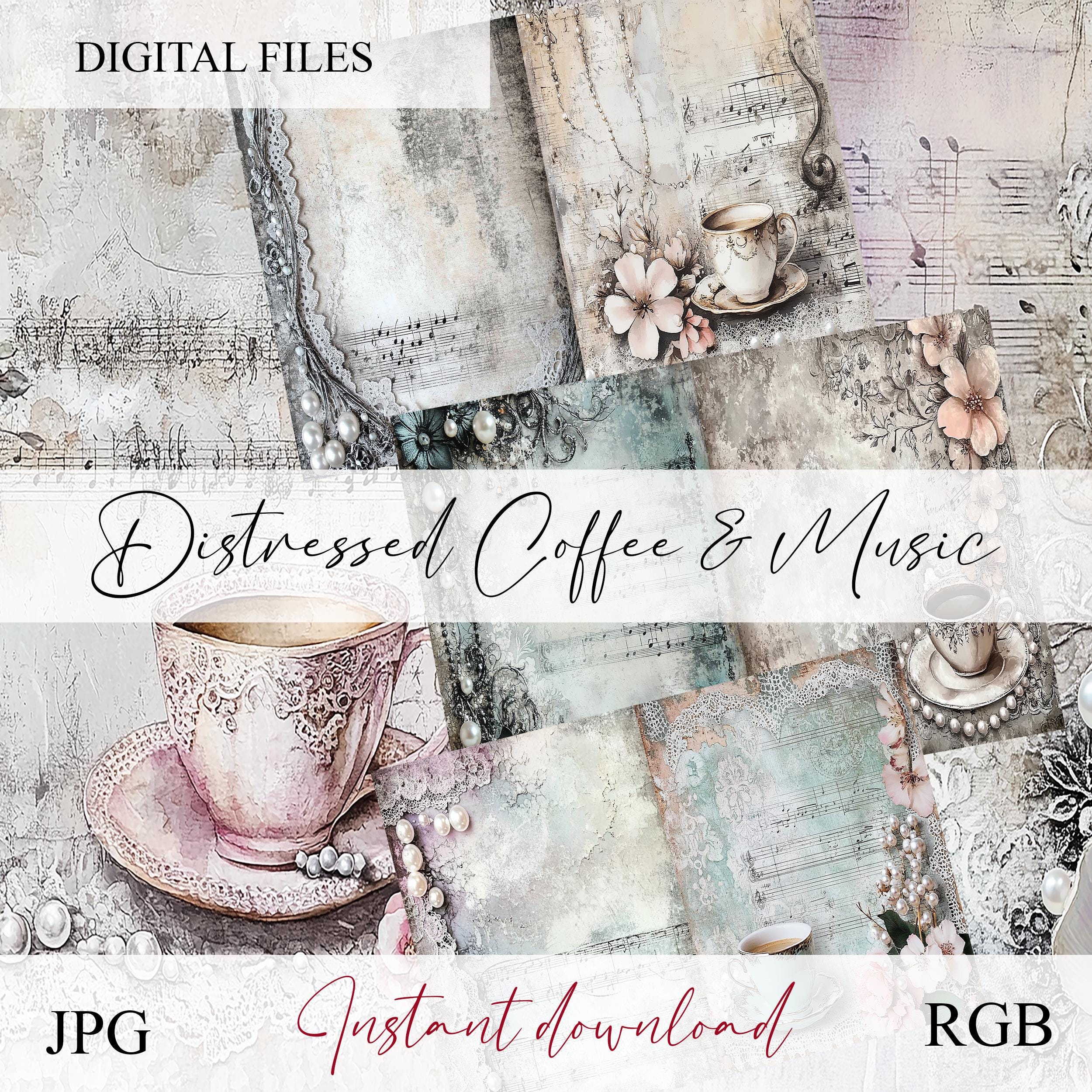 Scrapbook "coffee & music" printable papers, scrapbook, scrapbooking kit, junk journal, digital paper, ephemera, distressed