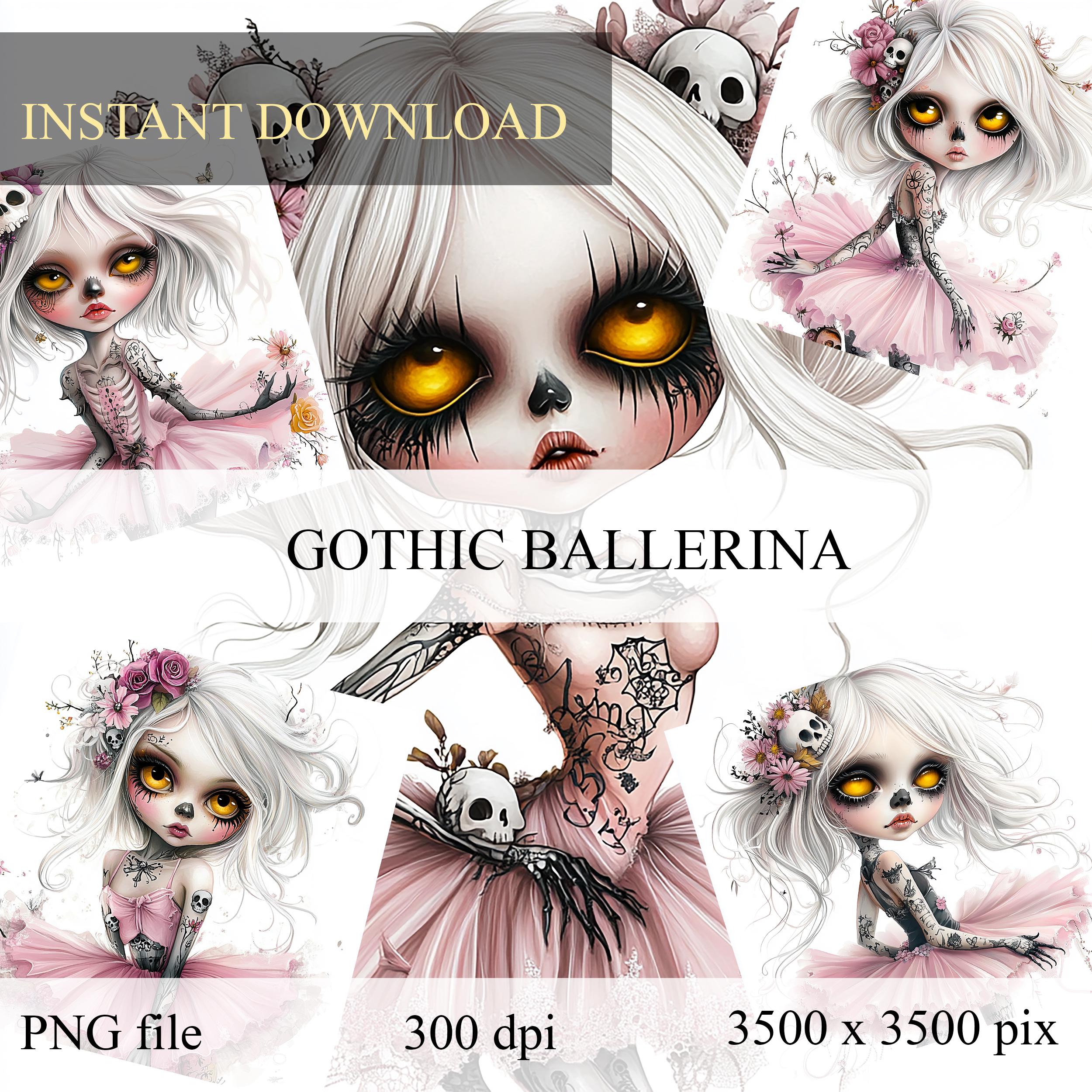 CLIPART gothic ballerina, junk journal sticker, scrapbook sticker, scrapbooking stickers, ephemera, cute, digital