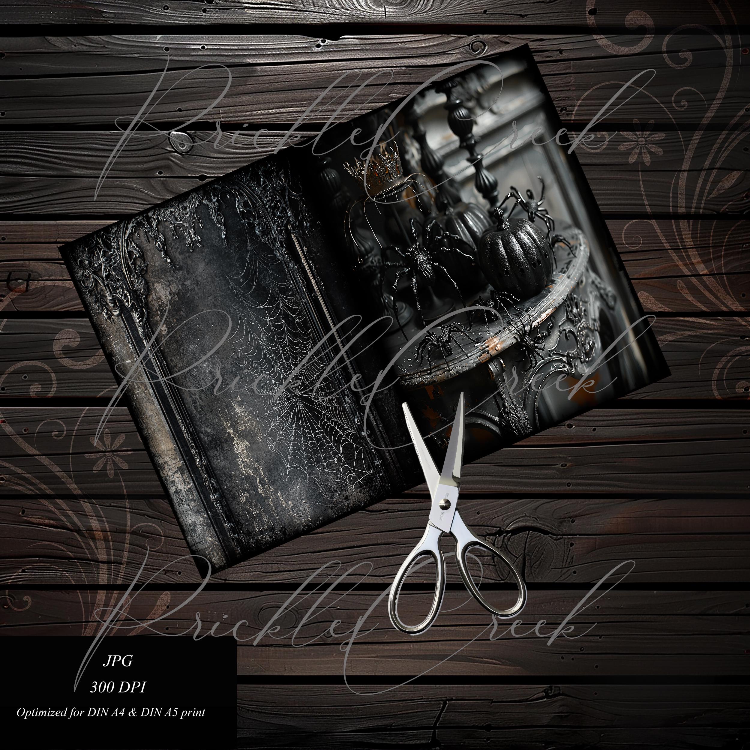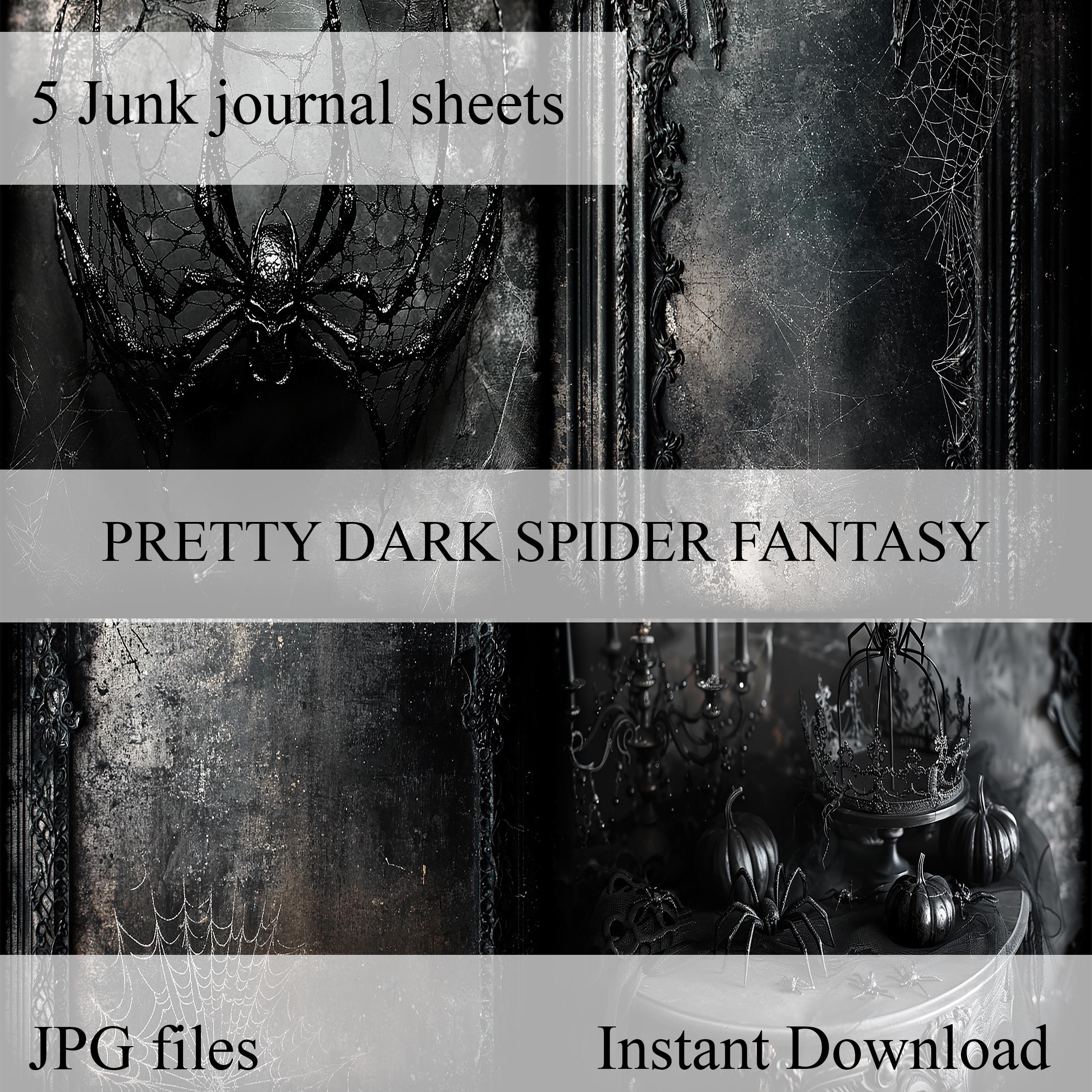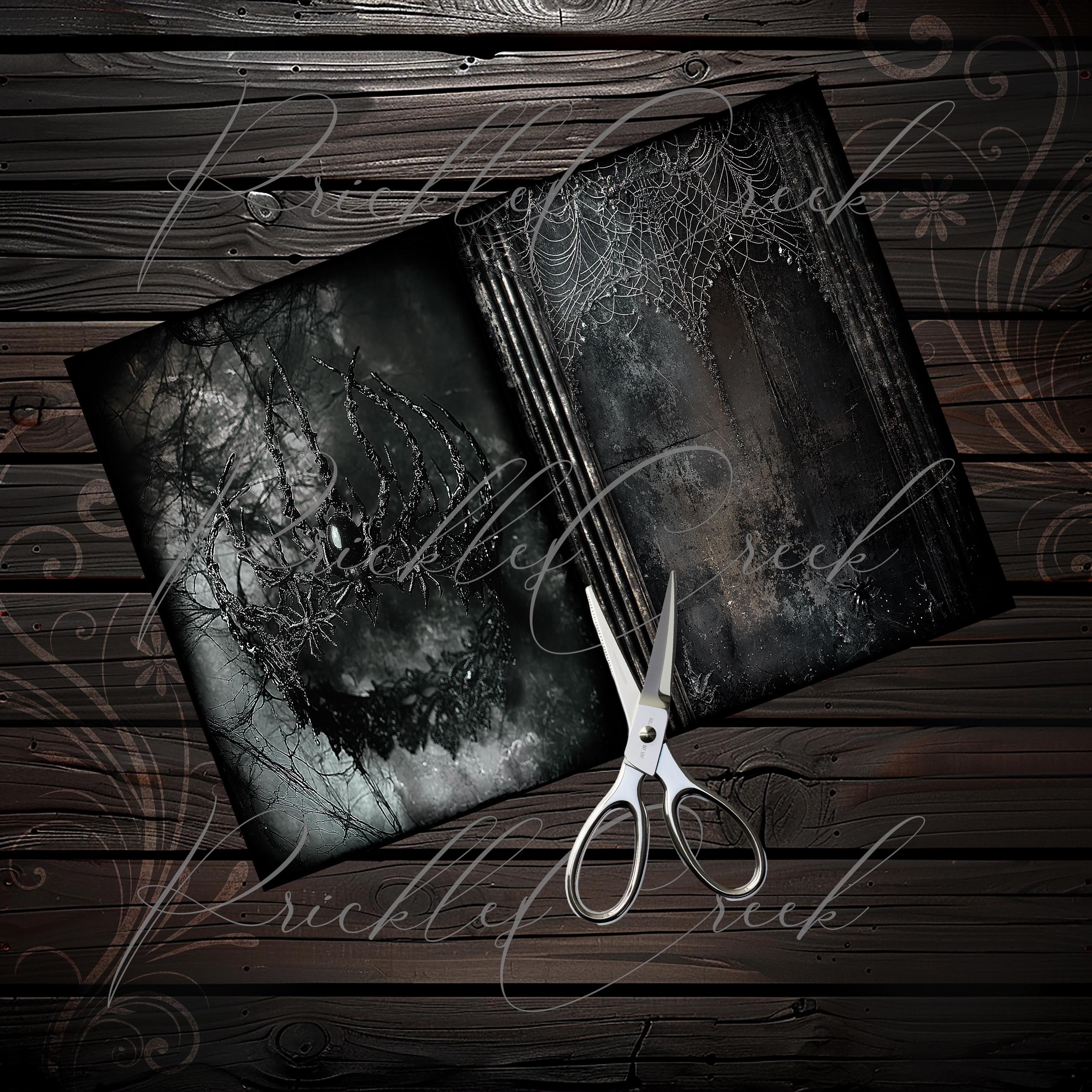Dark gothic spider junk journal paper, scrapbook, scrapbooking collage, junk journal kit, ephemera, fantasy, printable paper