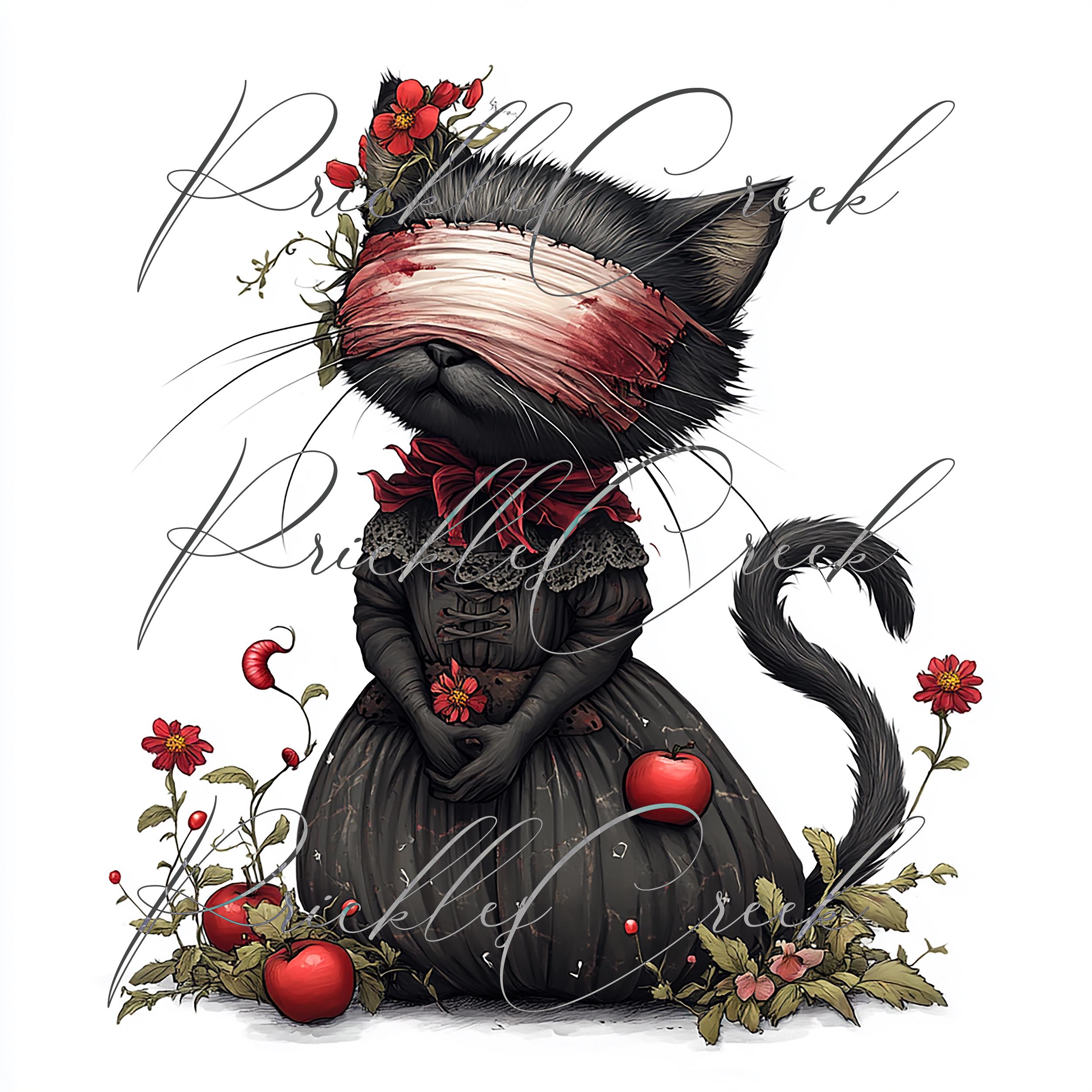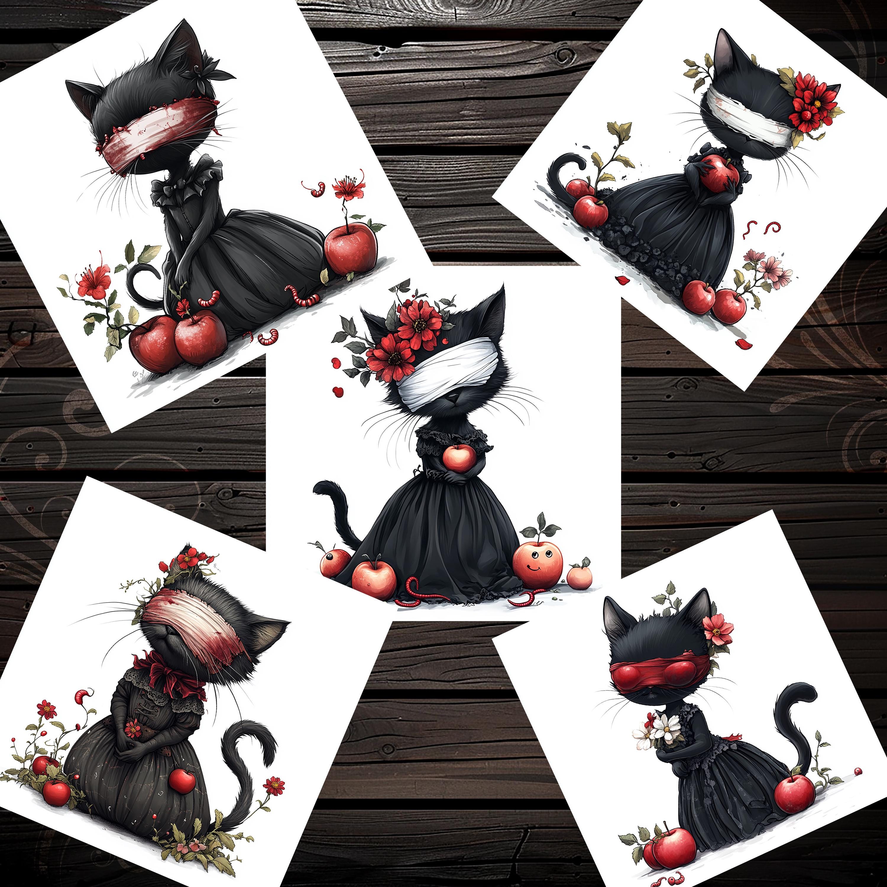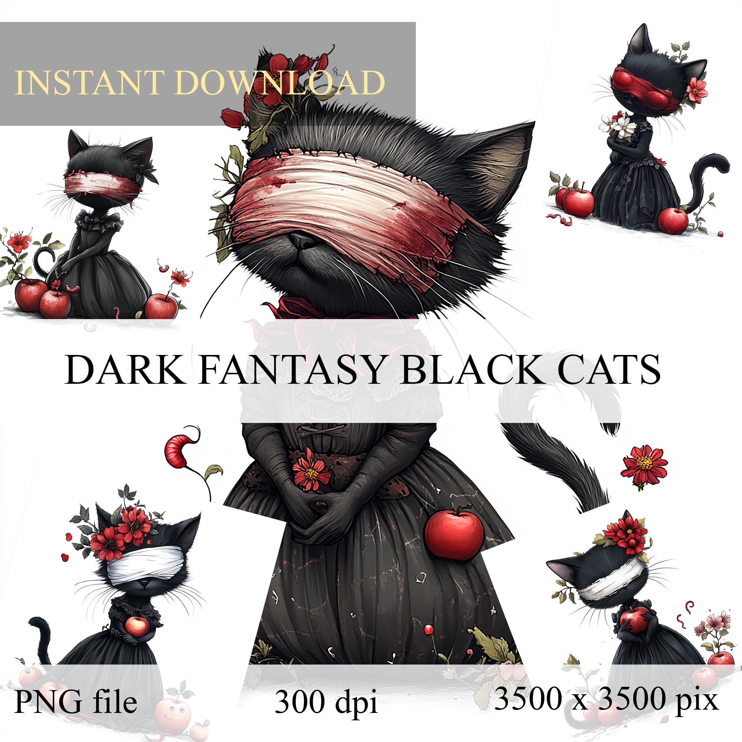 CLIPART cute eerie wicked gothic cat junk journal sticker, scrapbooking kit, junk journal collage, ephemera, gothic, digital, paper, sticker