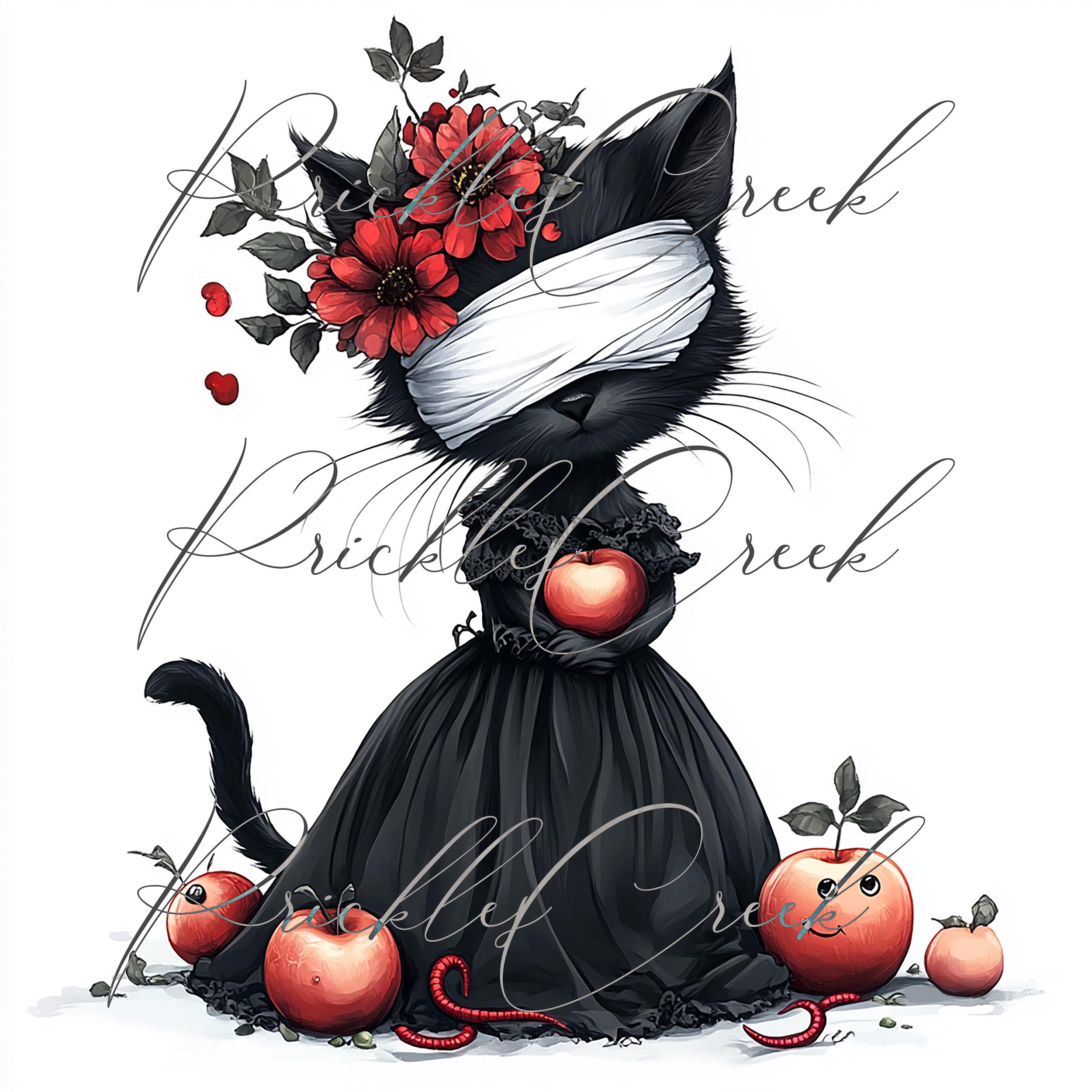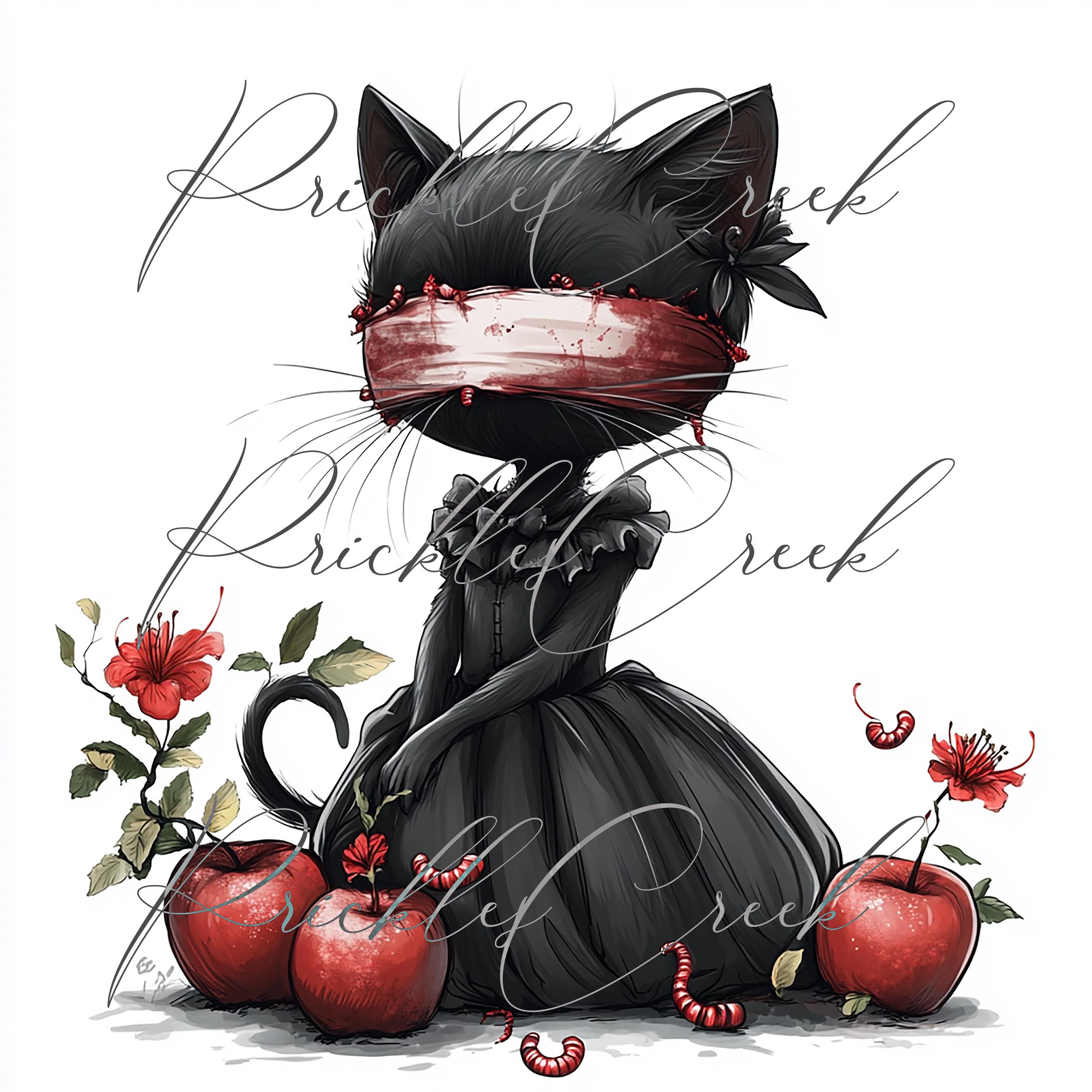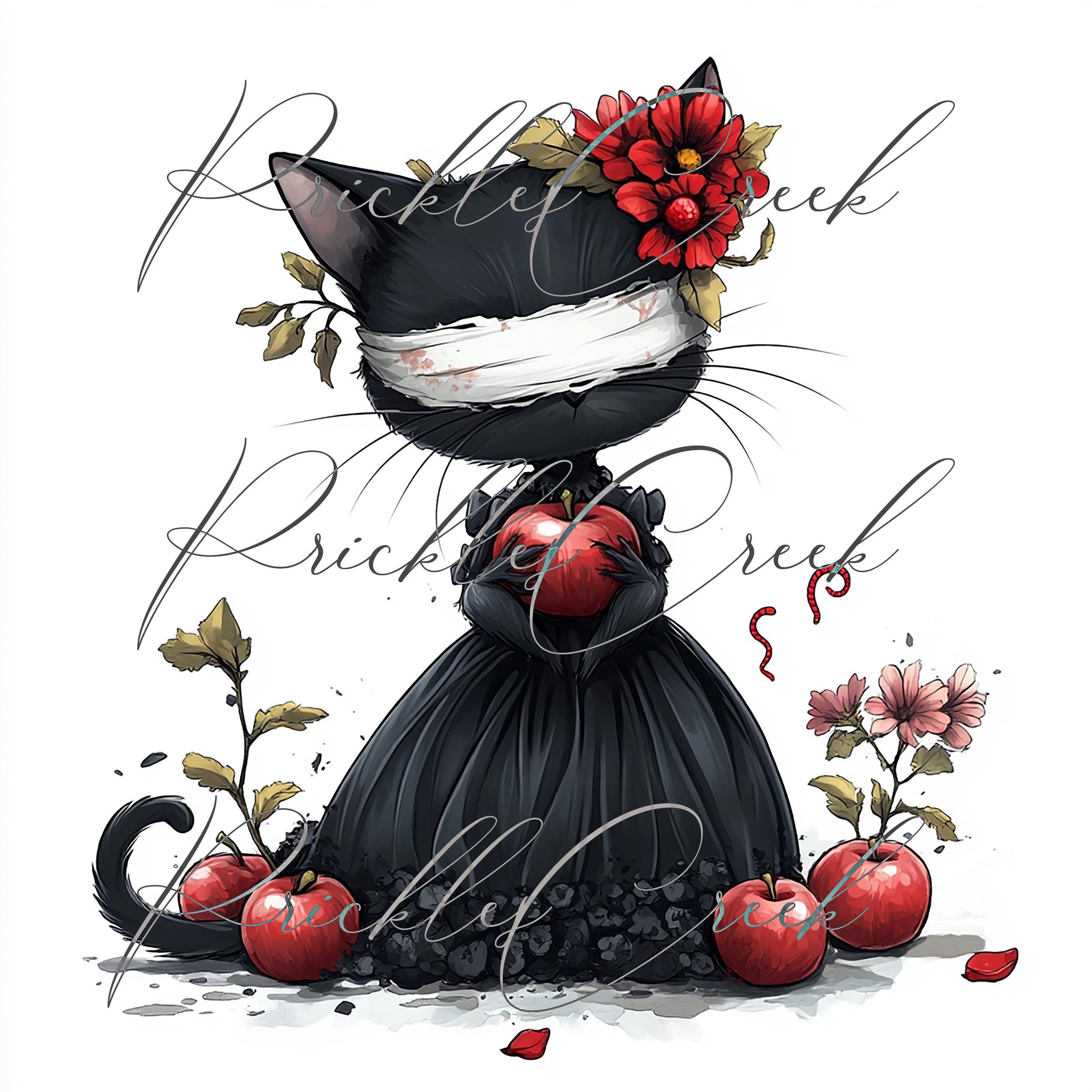 CLIPART cute eerie wicked gothic cat junk journal sticker, scrapbooking kit, junk journal collage, ephemera, gothic, digital, paper, sticker