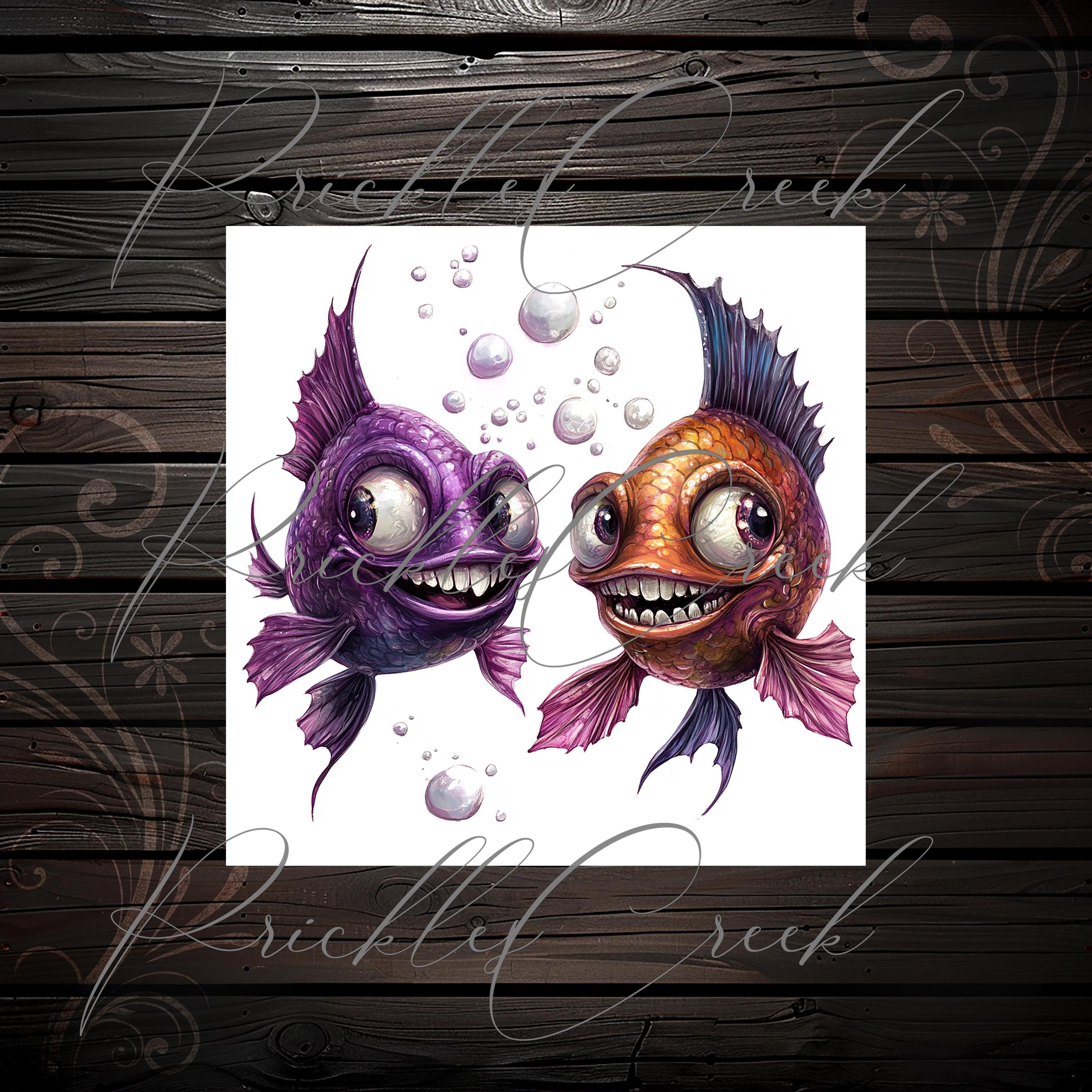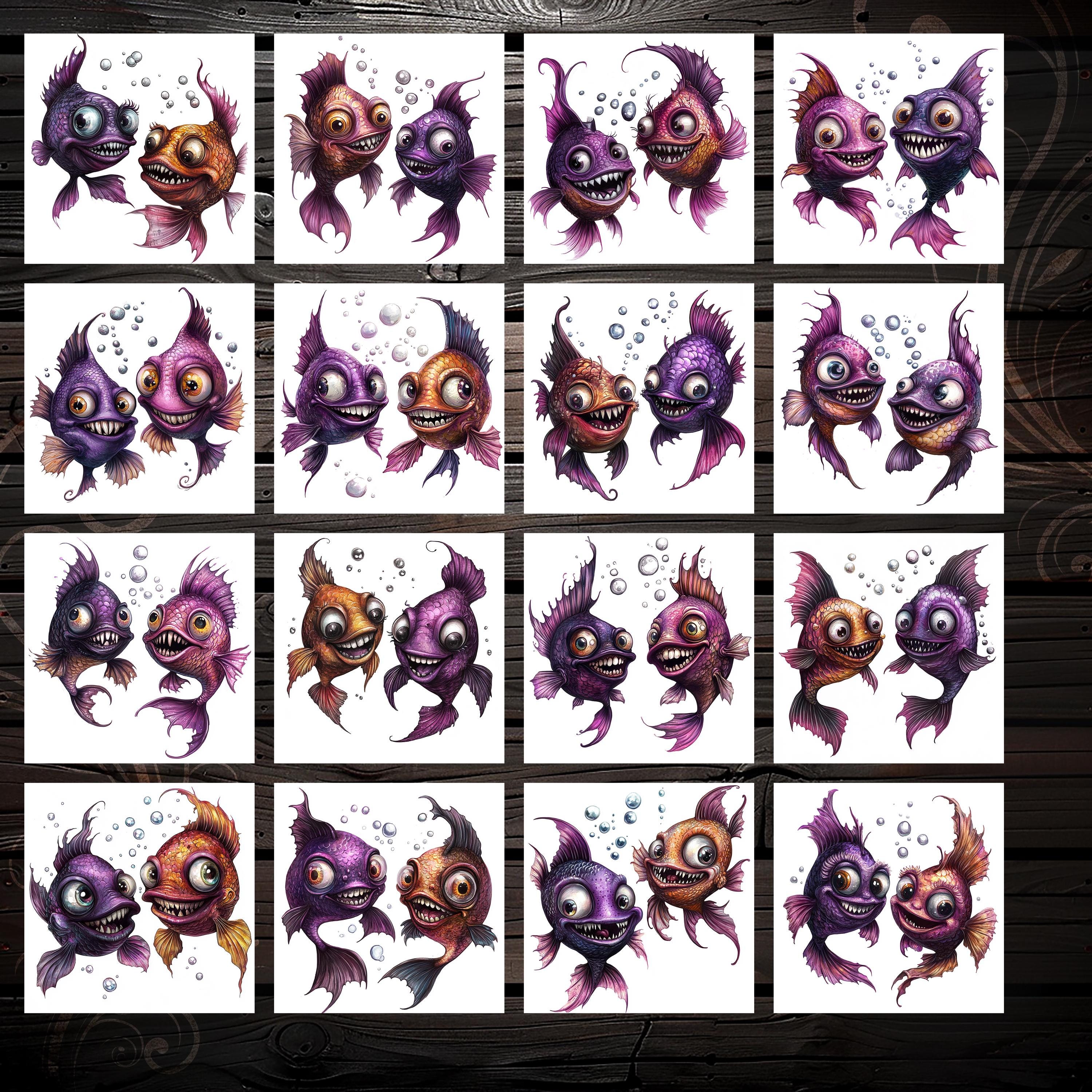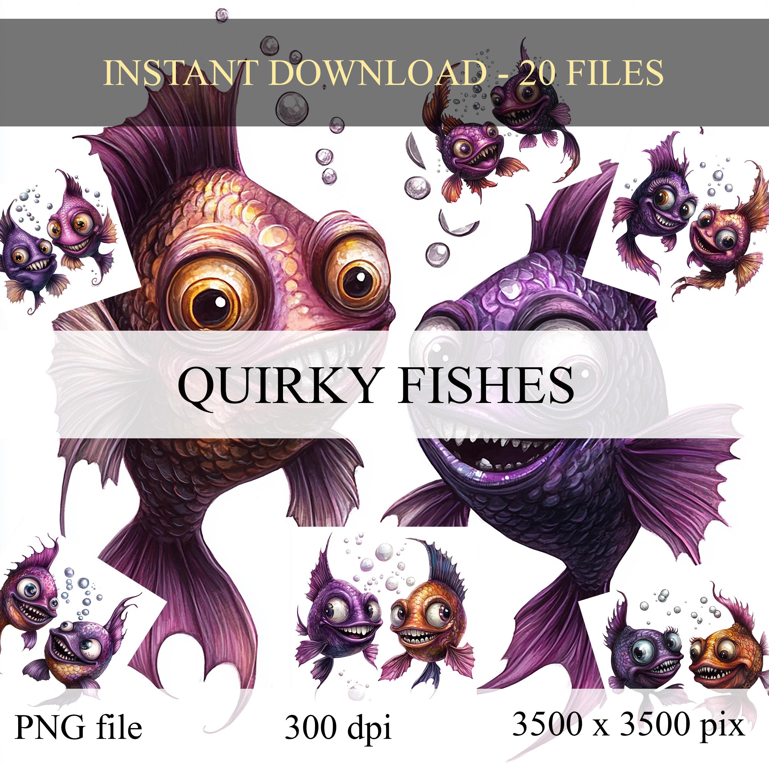 CLIPARTS bundle quirky cute fishes, junk journal stickers, scrapbook, scrapbooking kit, digital paper, fantasy