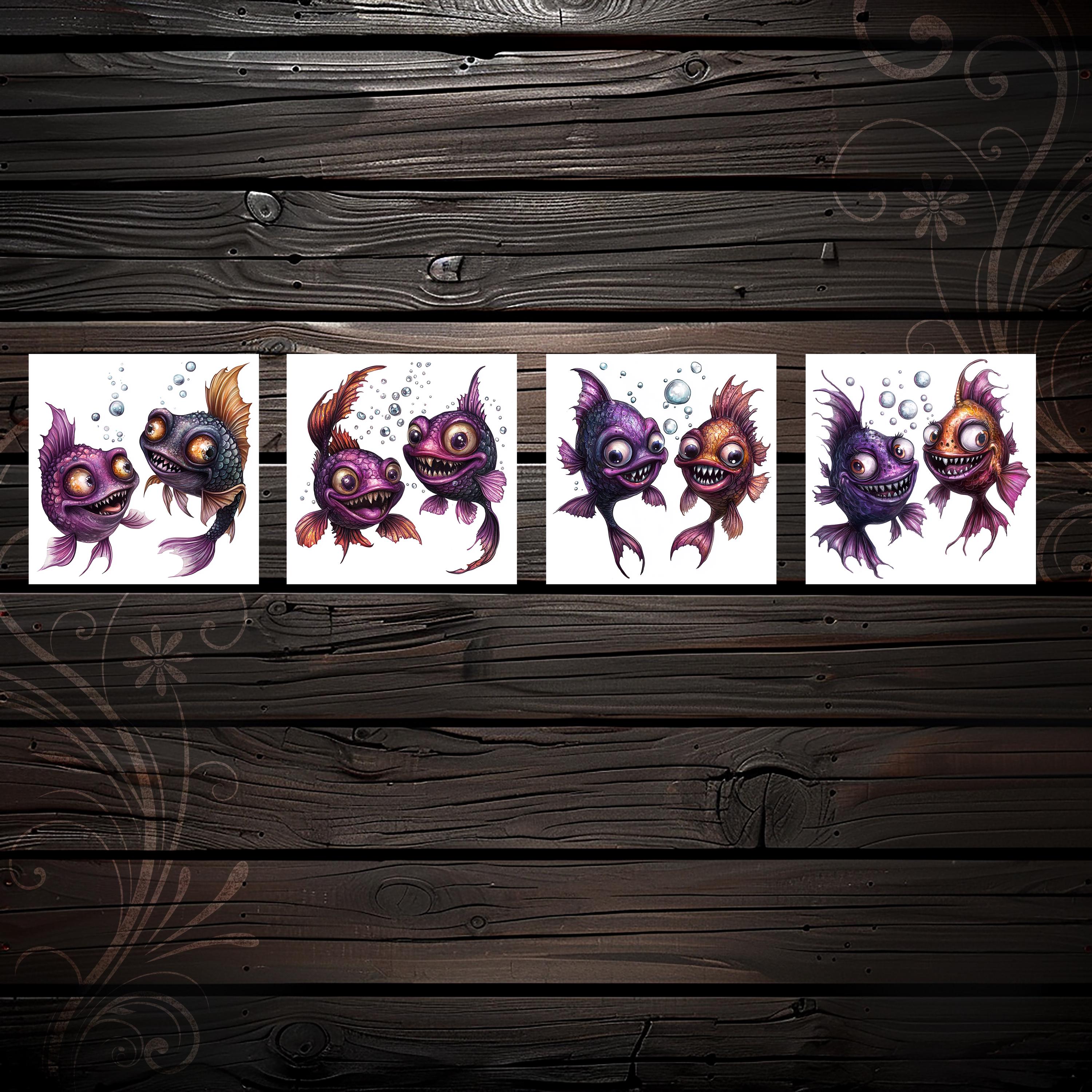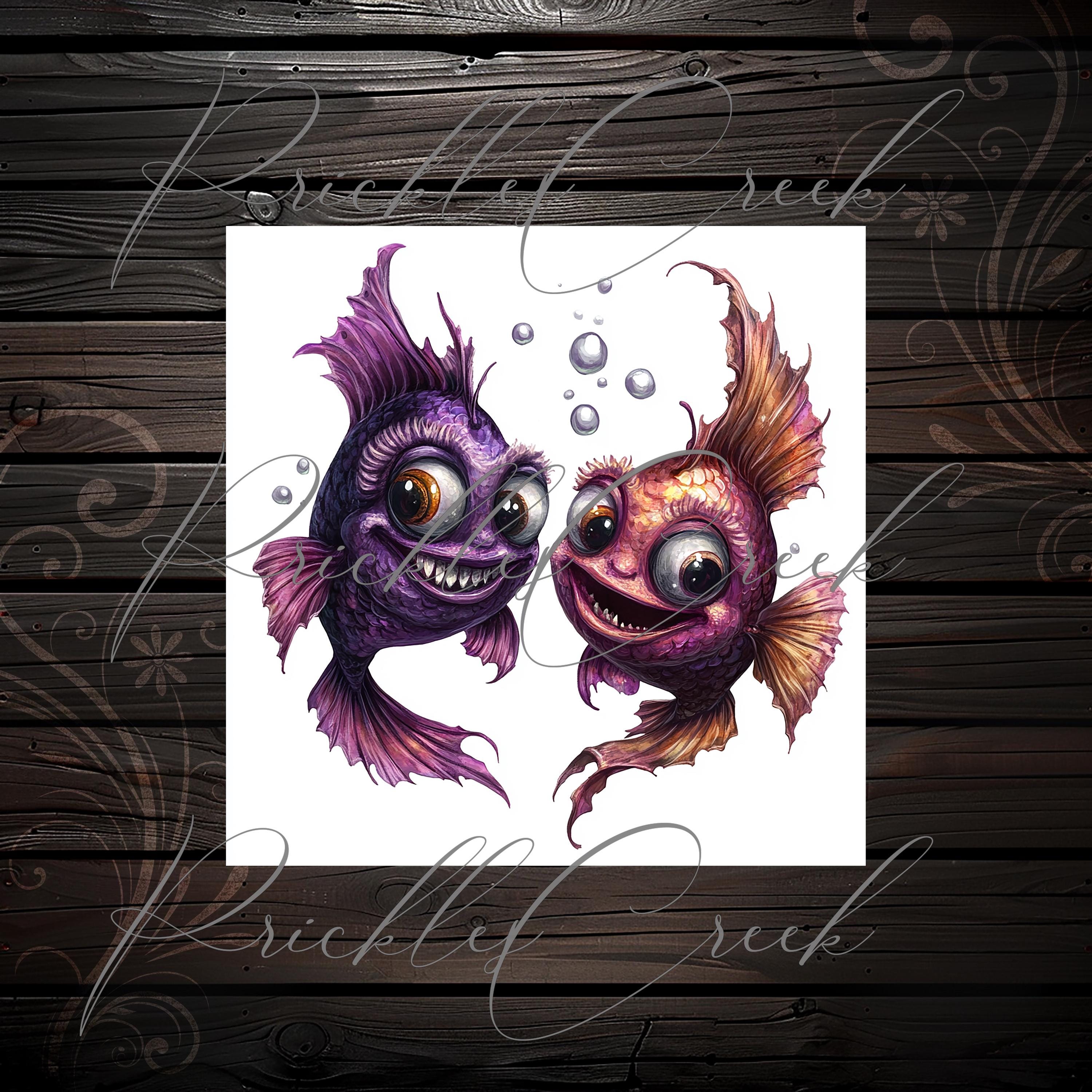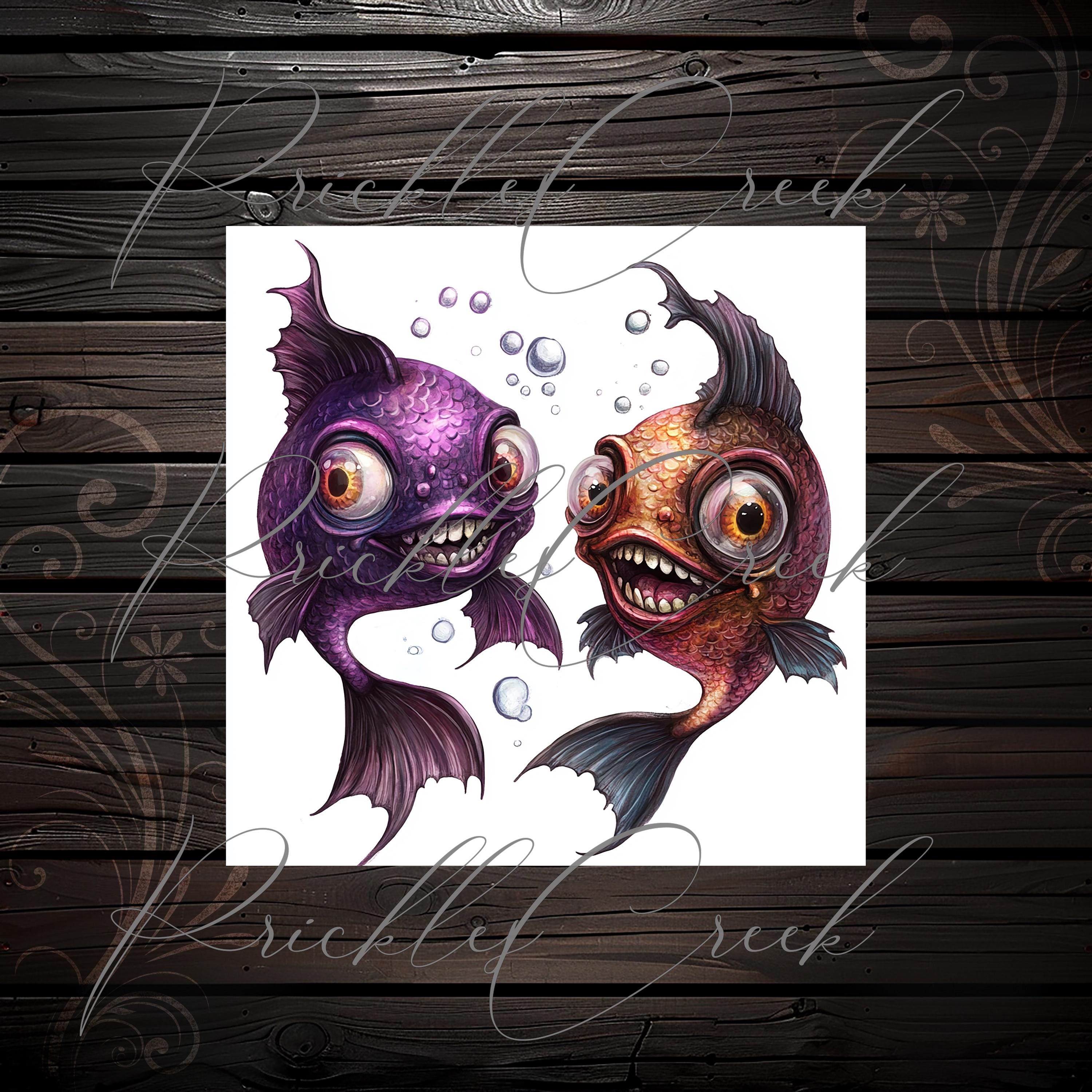 CLIPARTS bundle quirky cute fishes, junk journal stickers, scrapbook, scrapbooking kit, digital paper, fantasy