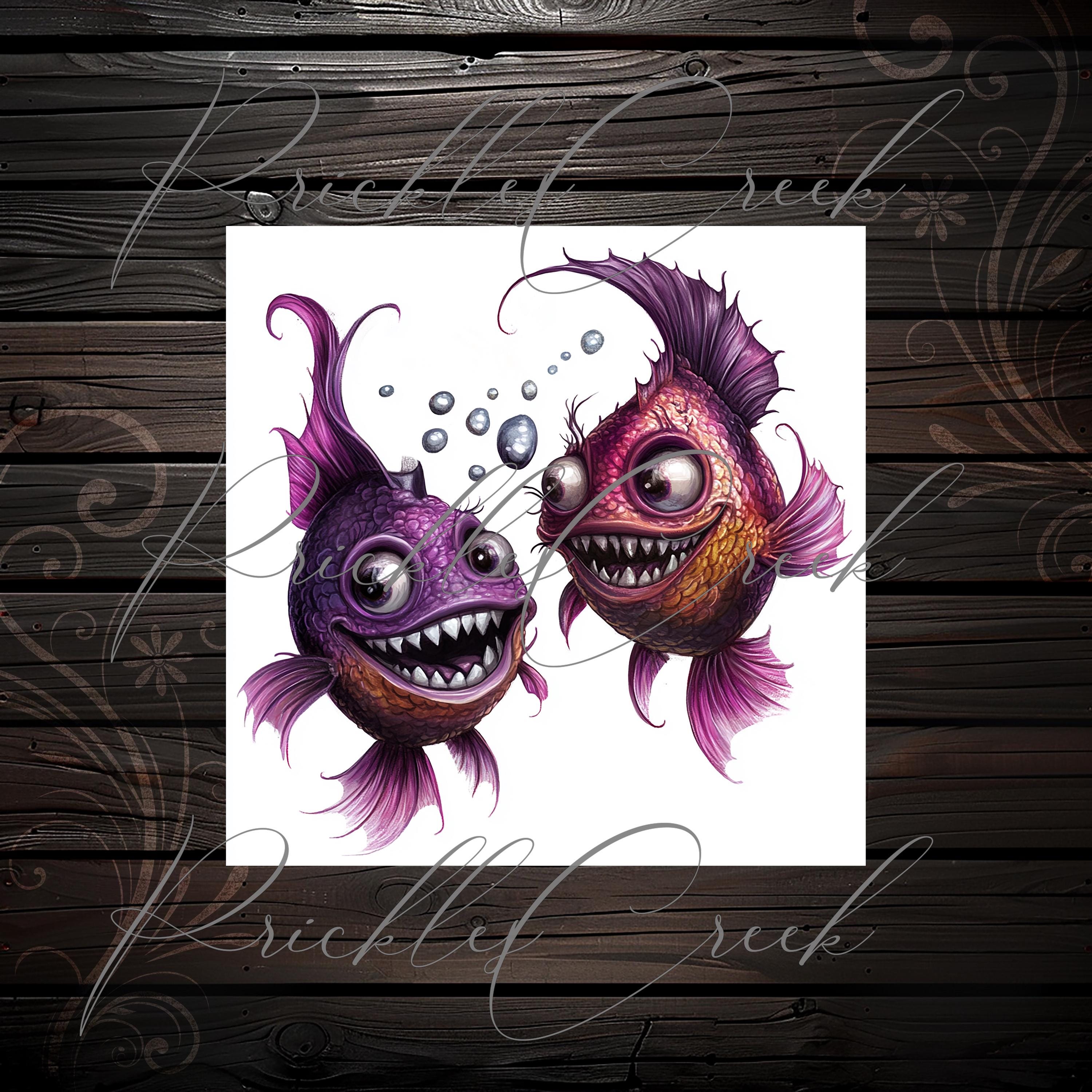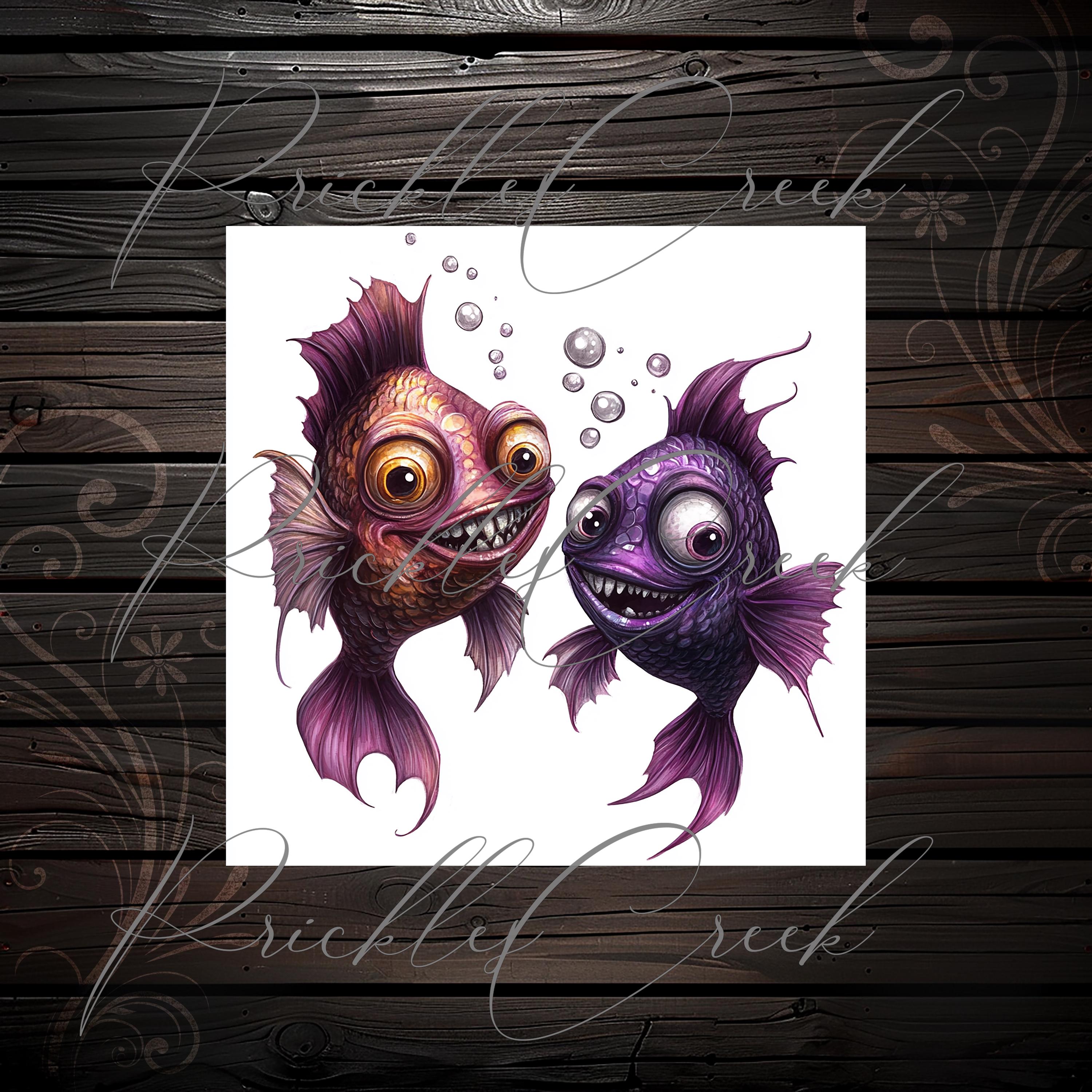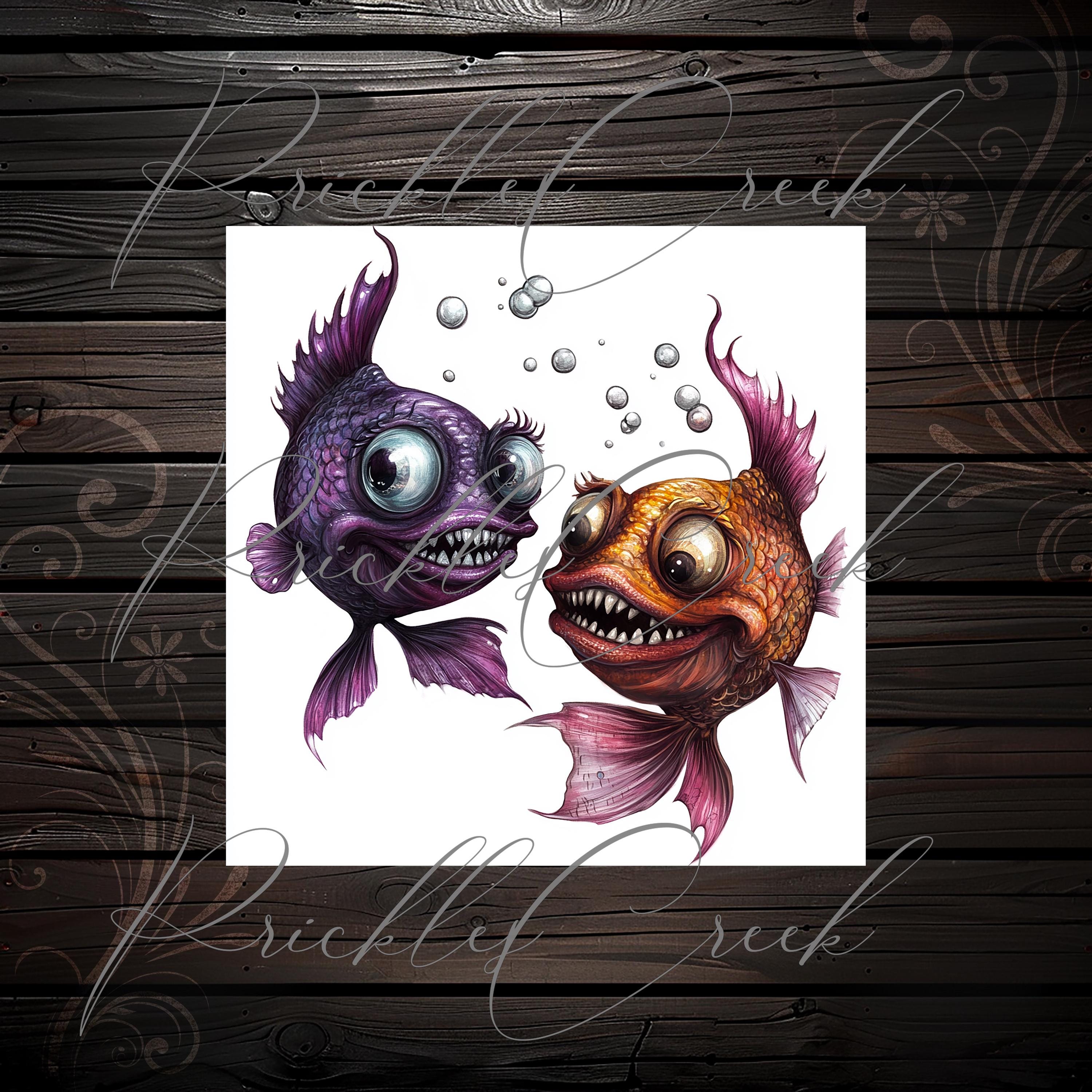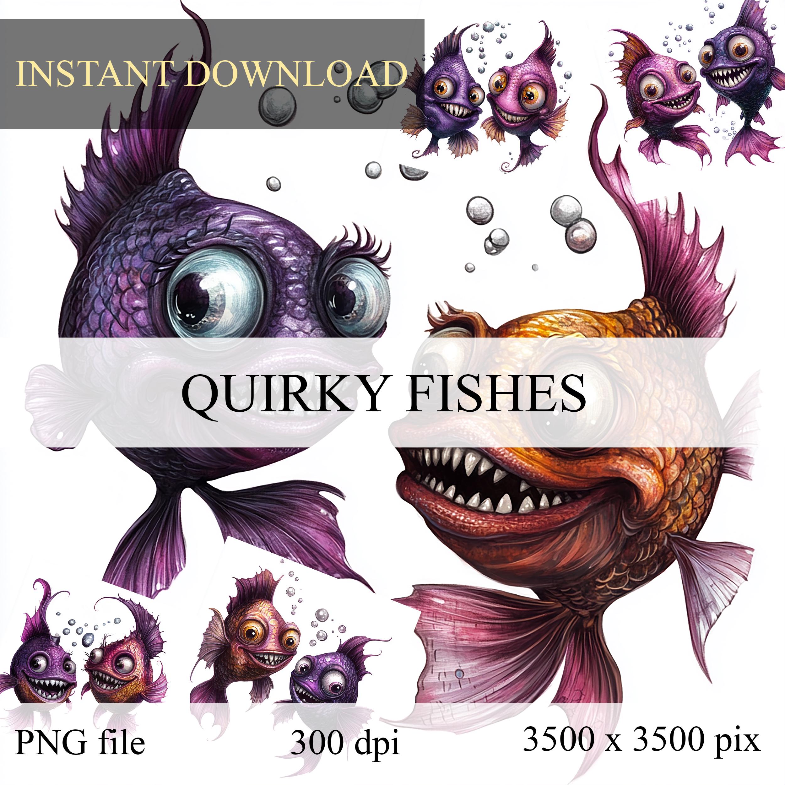 CLIPARTS quirky cute fisches clipart, junk journal digital, scrapbook, scrapbooking, ephemera, fantasy