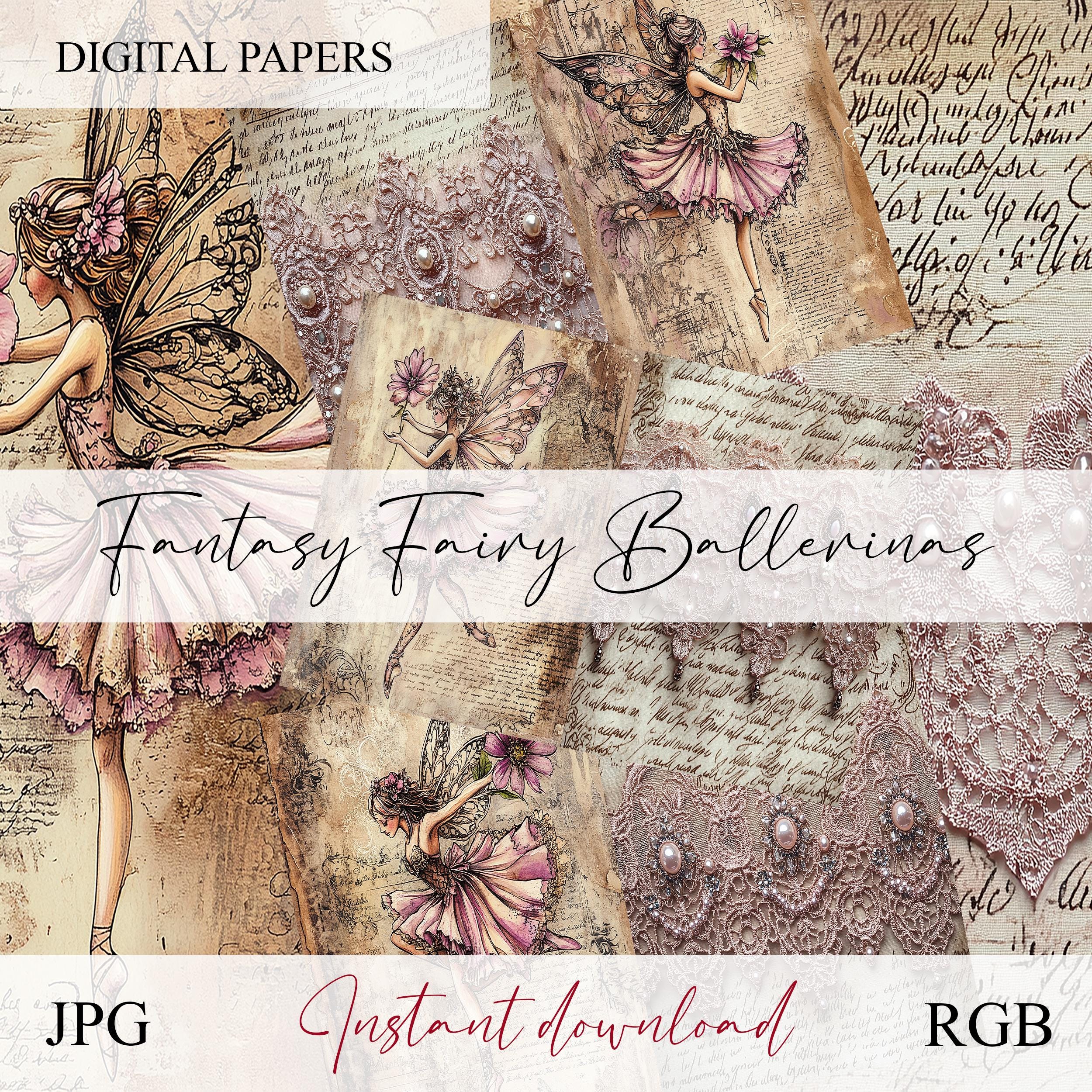 Scrapbook "fantasy ballerina" printable papers, scrapbook, scrapbooking kit, junk journal, digital paper, ephemera, diary