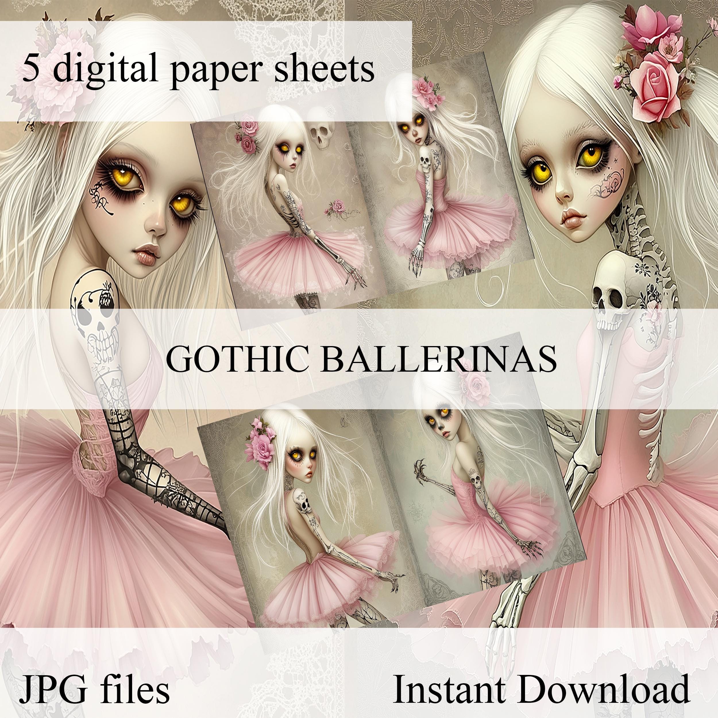 Pastell gothic ballerina scrapbooking paper, scrapbook sheets, scrapbooking kit, junk journal, digital paper