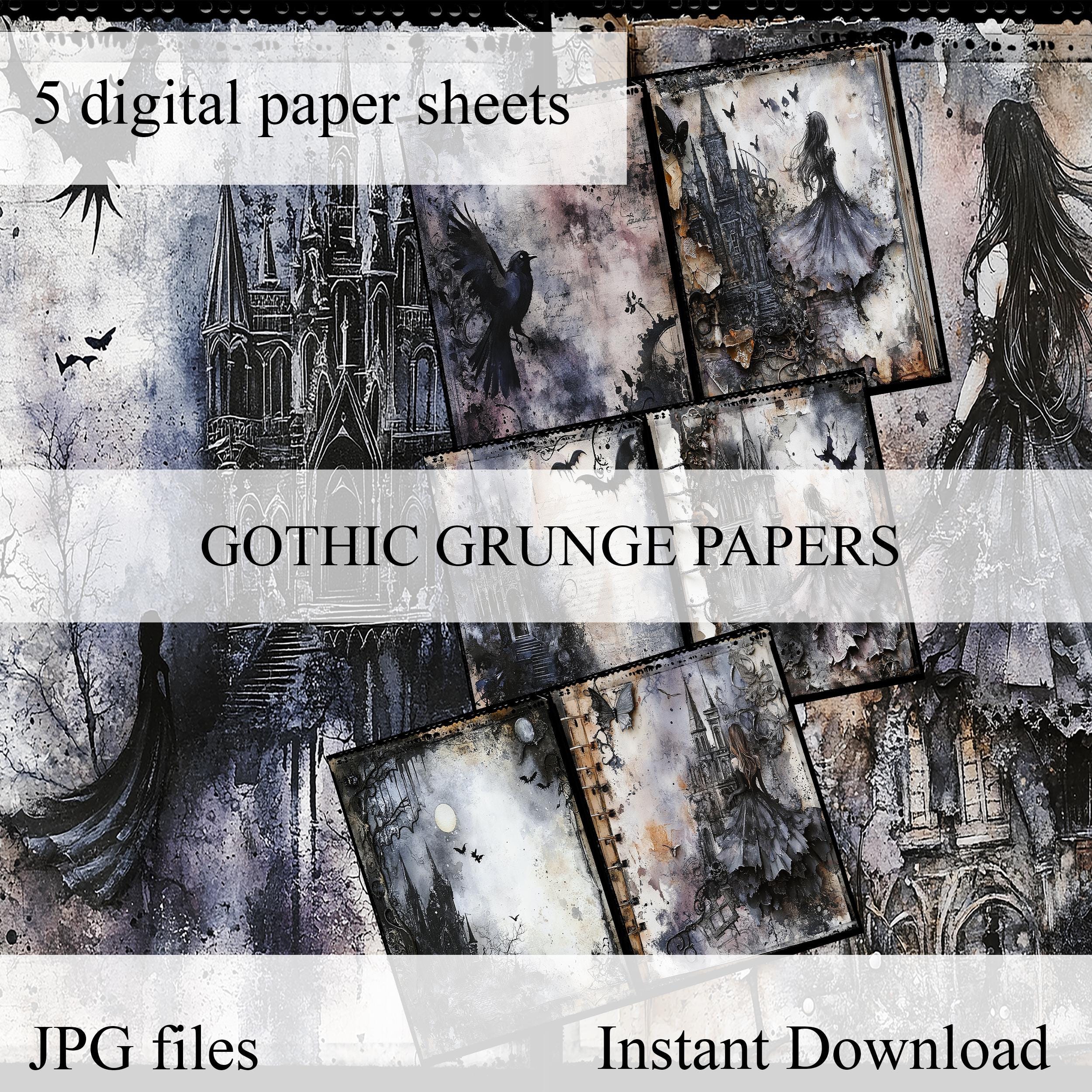 Scrapbook dark fantasy papers, scrapbook, scrapbooking, junk journal, ephemera, diary papers, digital papers - gothic, grunge
