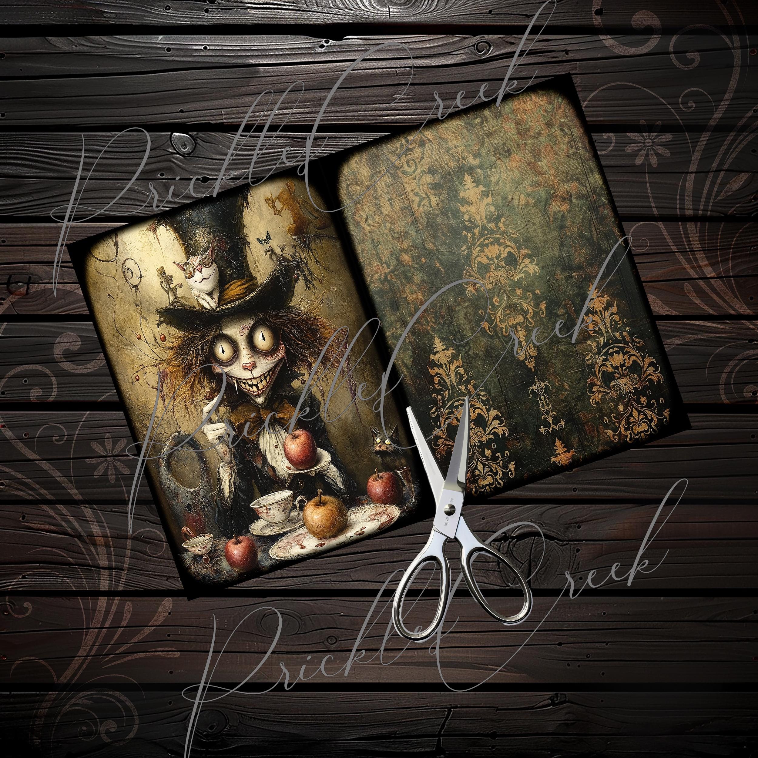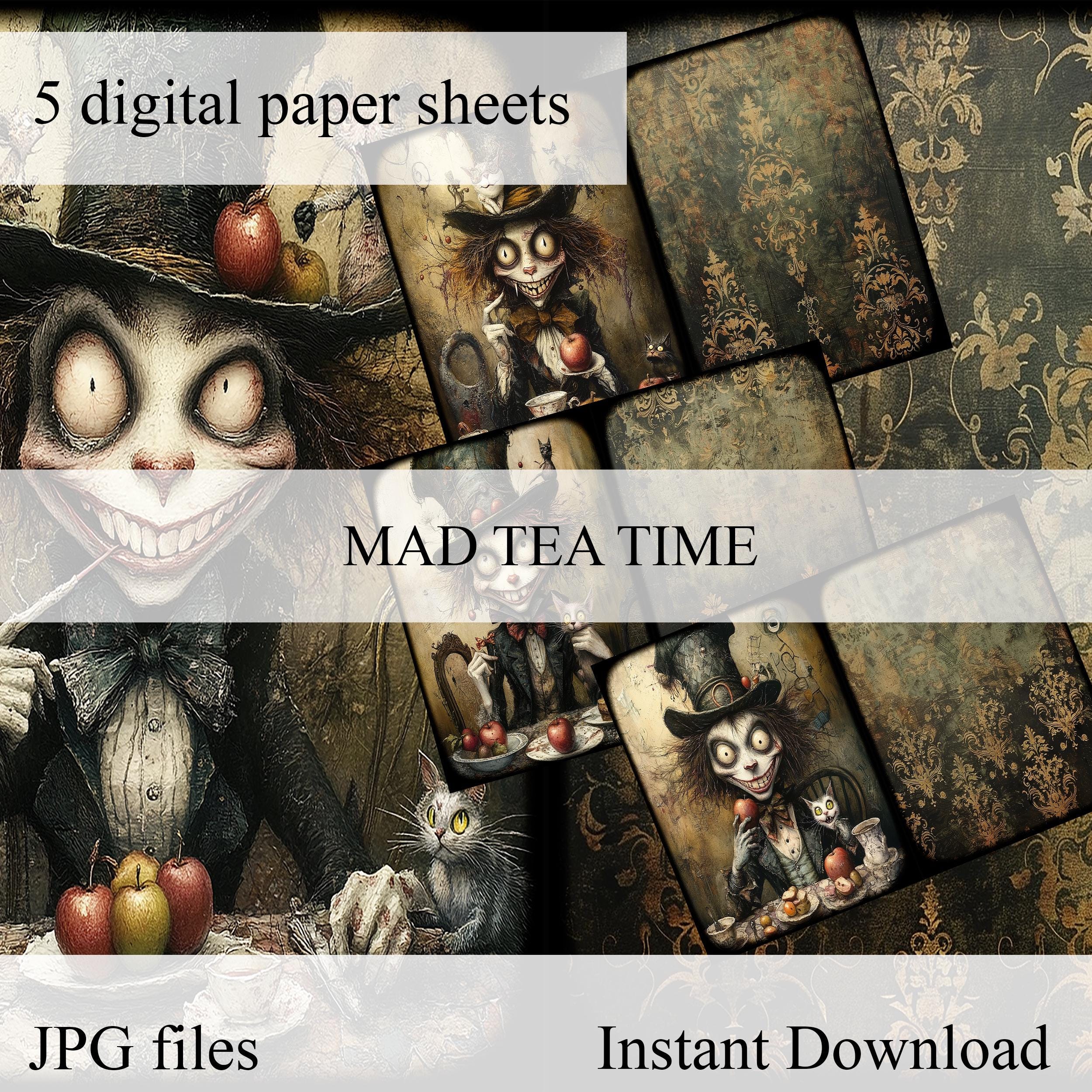 Scrapbook "Crazy Tea Party" dark fantasy papers, scrapbook, scrapbooking, junk journal, ephemera, diary paper, digital paper