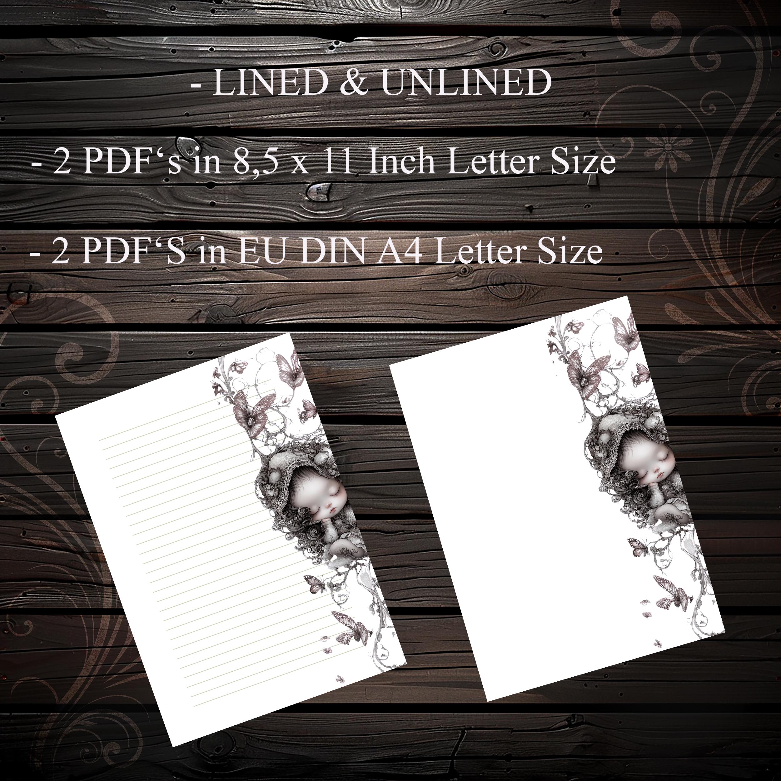 Printable stationery lined paper, writing paper, stationery, personalized notepad, diary paper, A4, US Letter