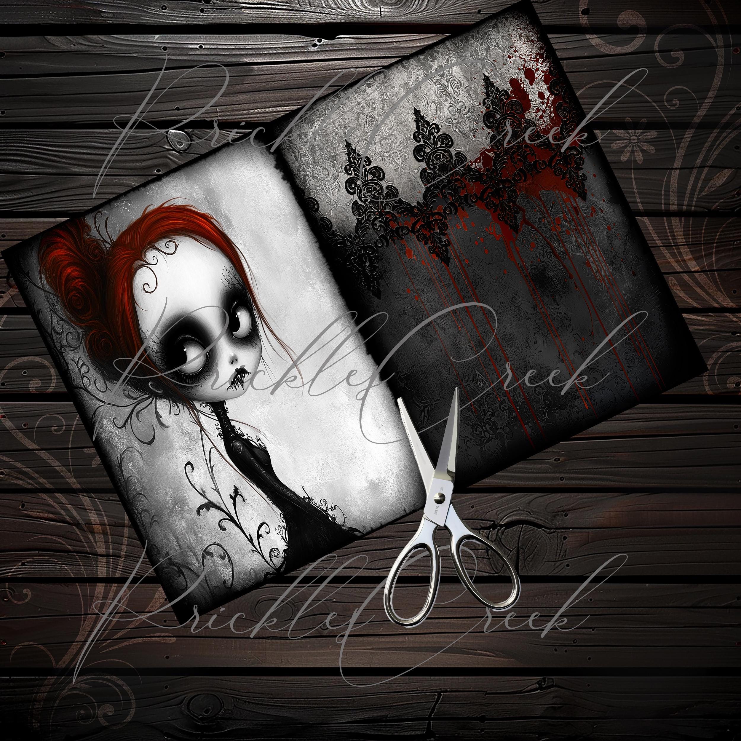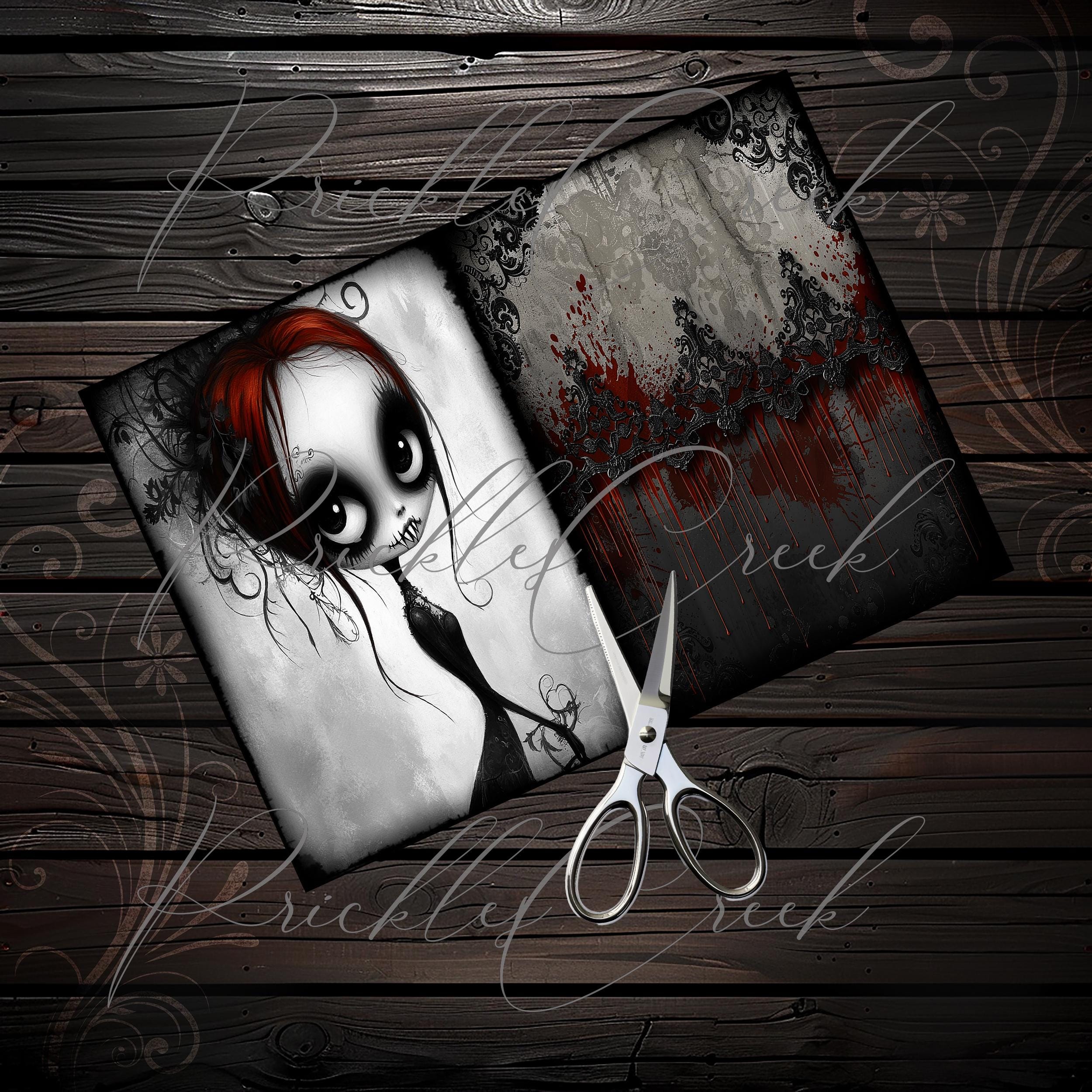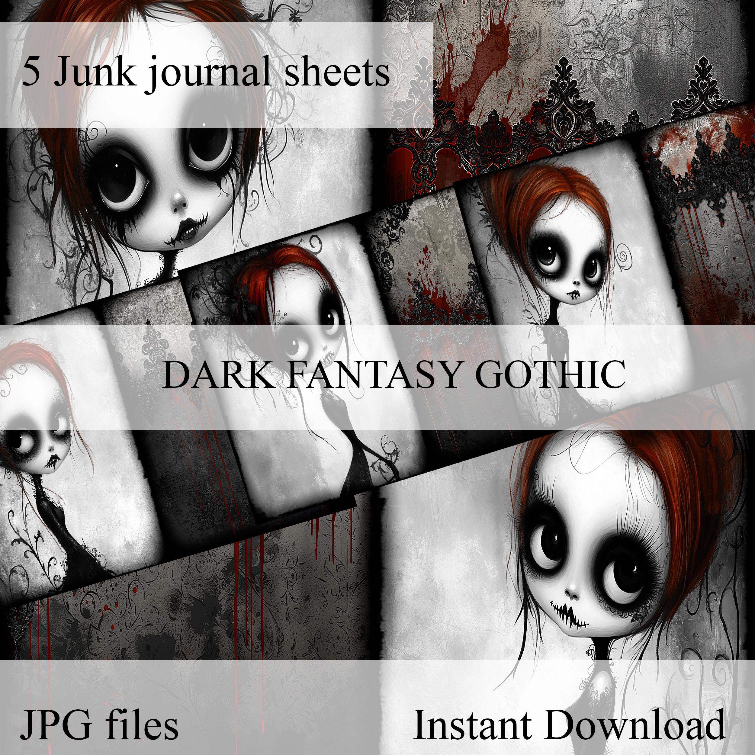 Gothic girls junk journal paper, scrapbook, scrapbooking collage, junk journal kit, ephemera, fantasy, printable paper