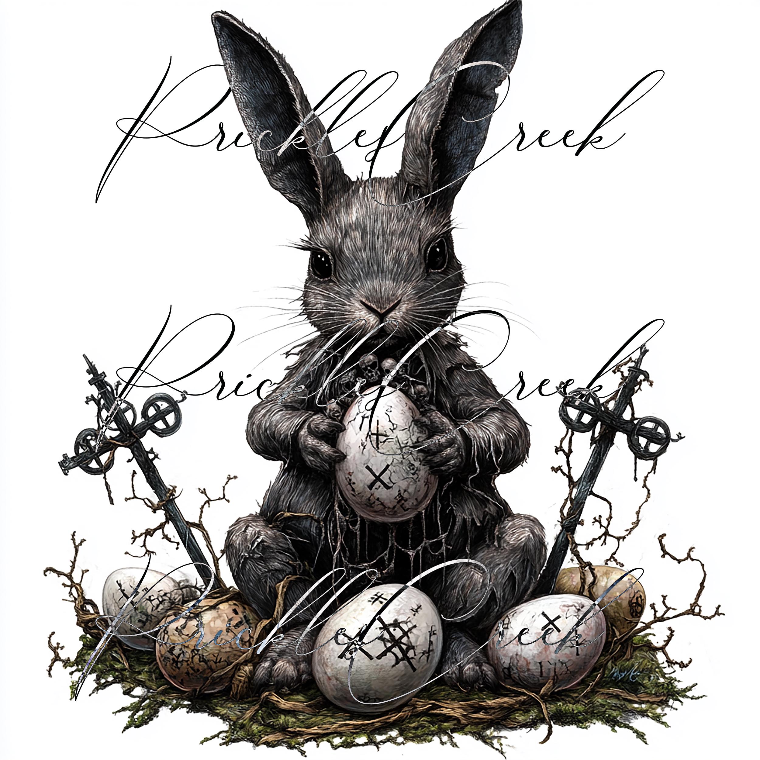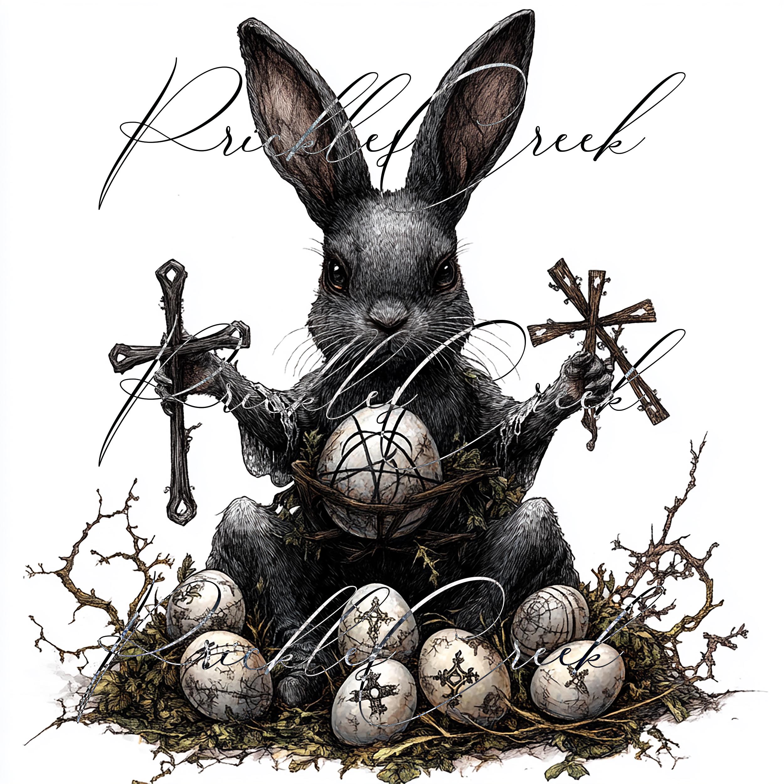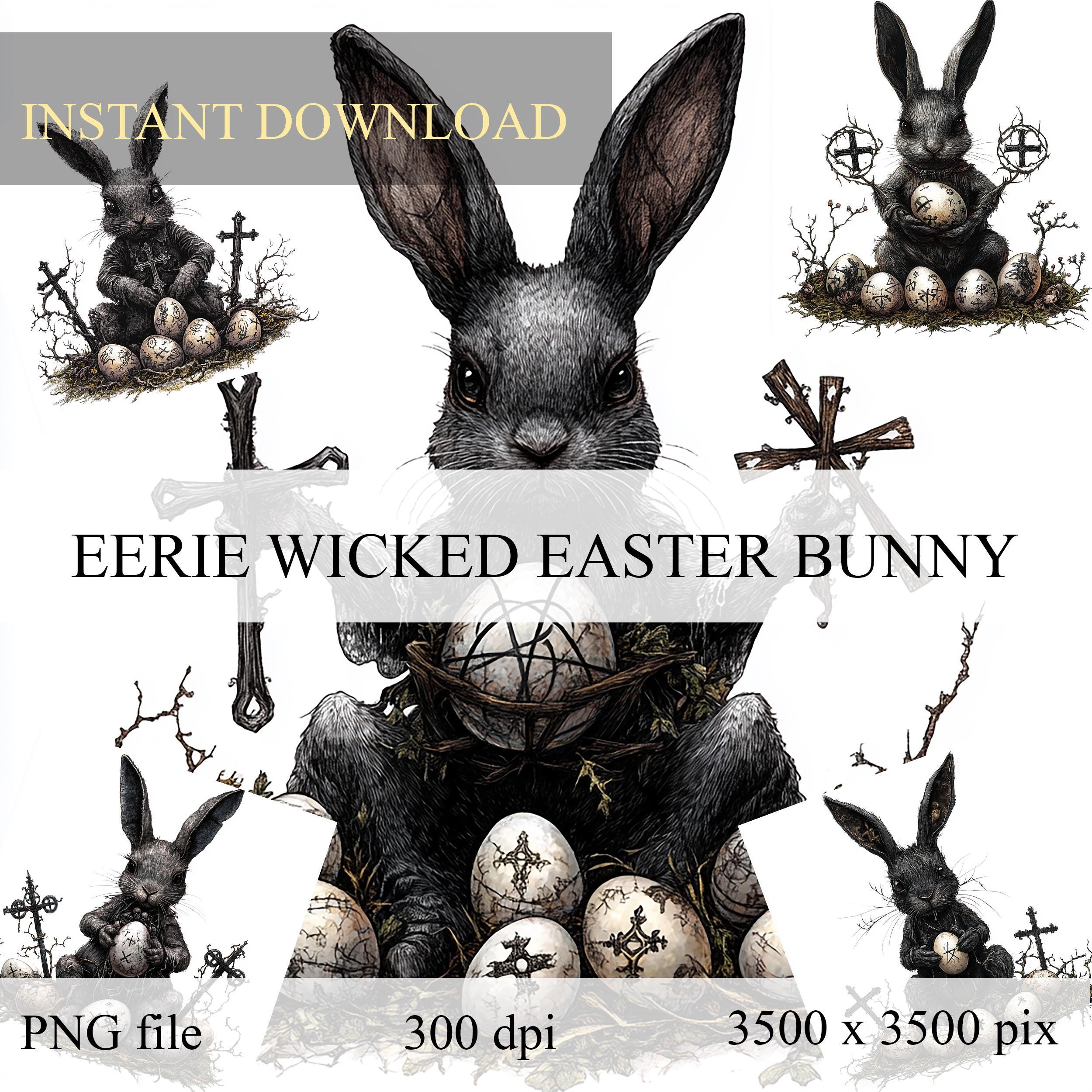 CLIPART gothic eerie wicked easter bunny, junk journal sticker, scrapbook sticker, scrapbooking stickers, ephemera, cute, digital