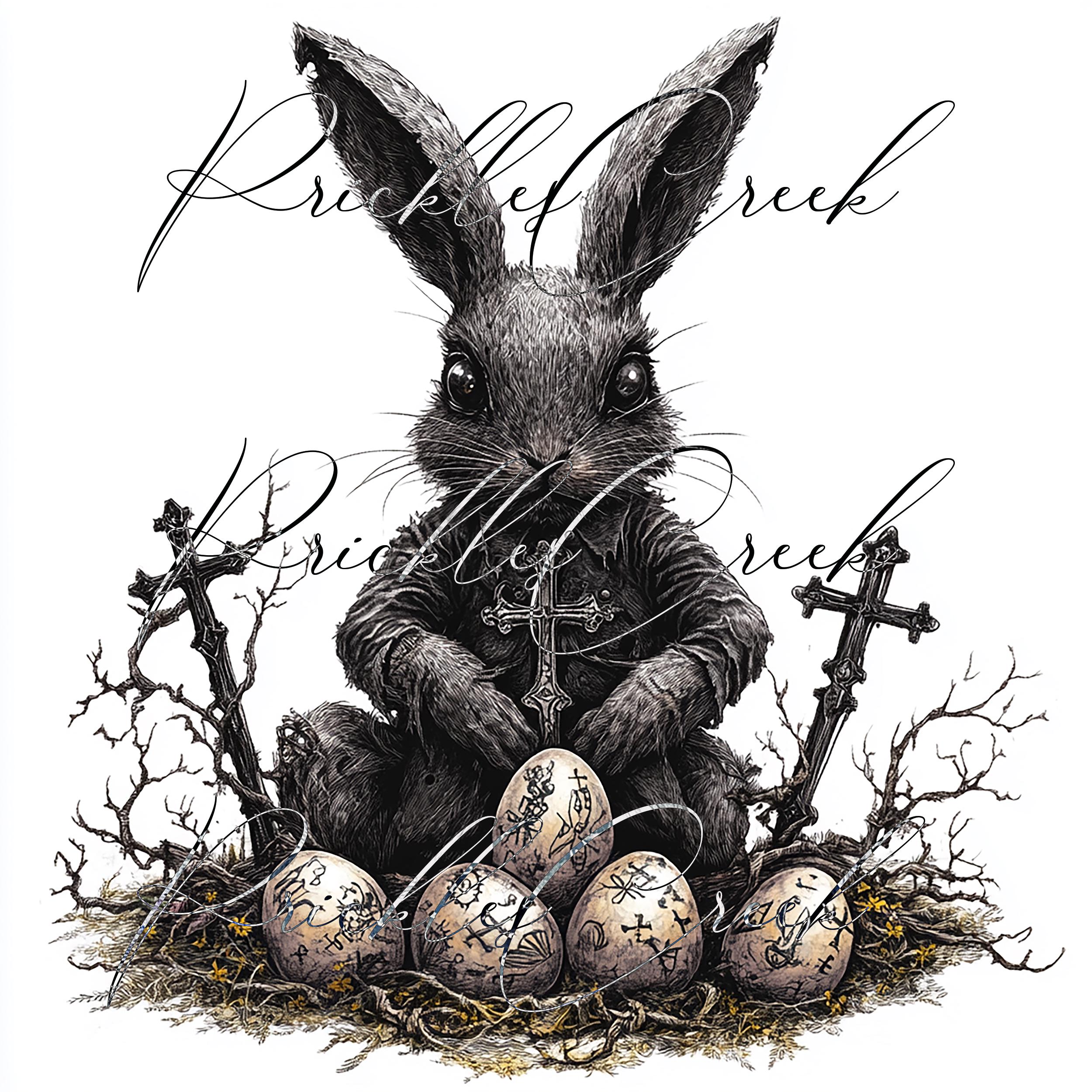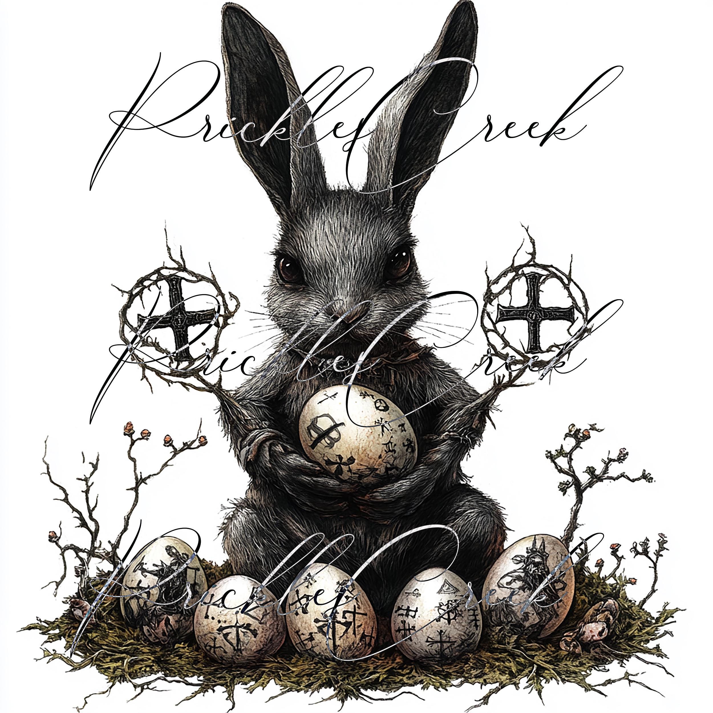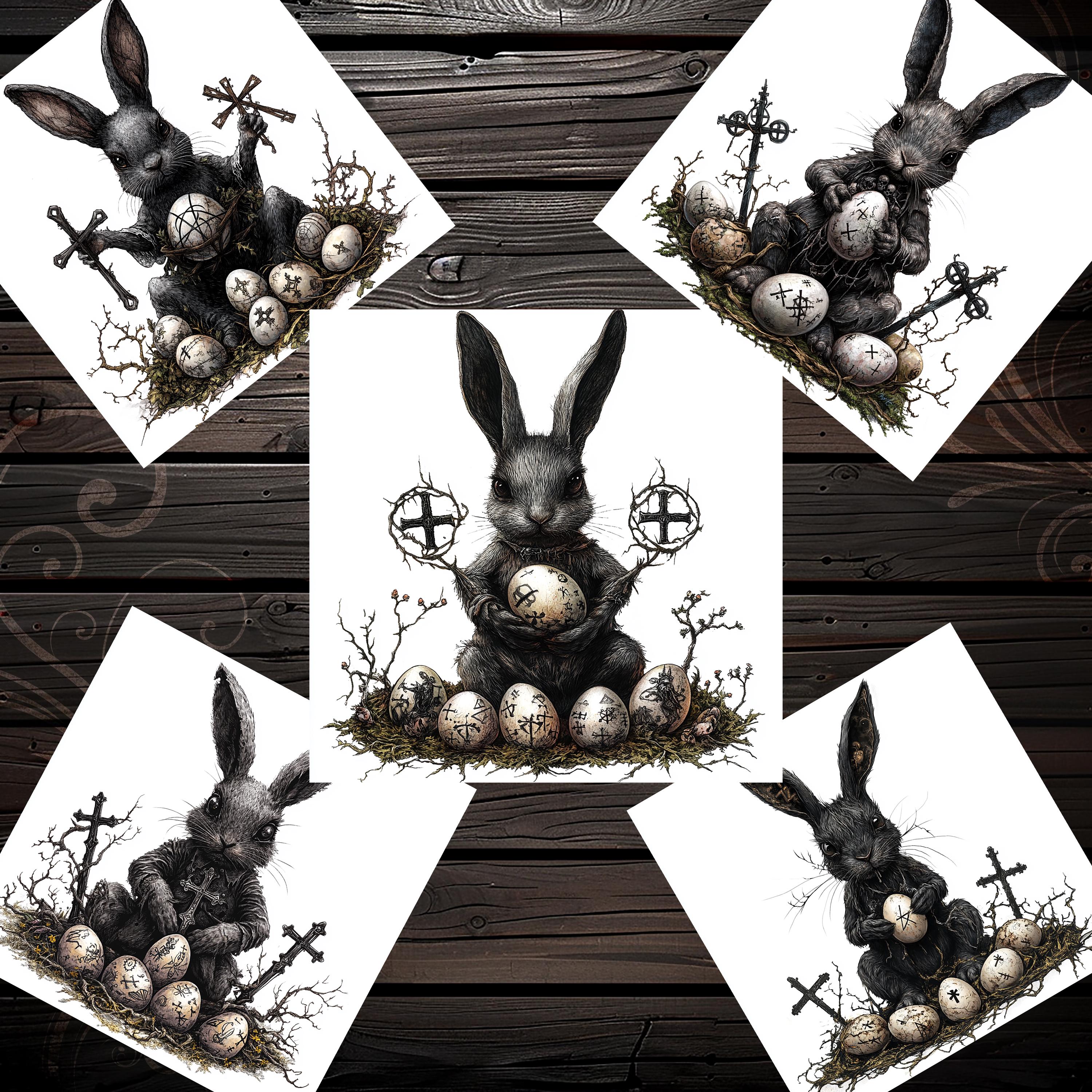 CLIPART gothic eerie wicked easter bunny, junk journal sticker, scrapbook sticker, scrapbooking stickers, ephemera, cute, digital