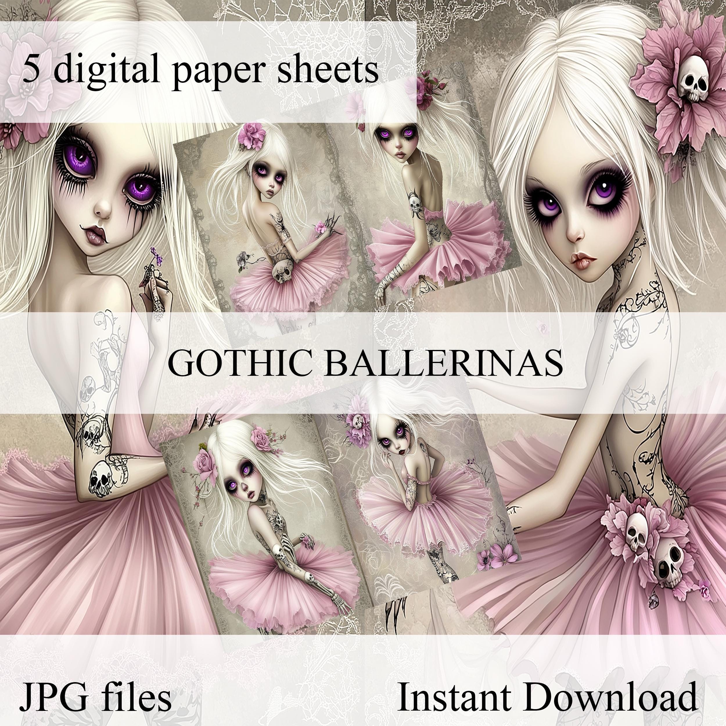 Purple gothic ballerina scrapbooking paper, scrapbook sheets, scrapbooking kit, junk journal, digital paper