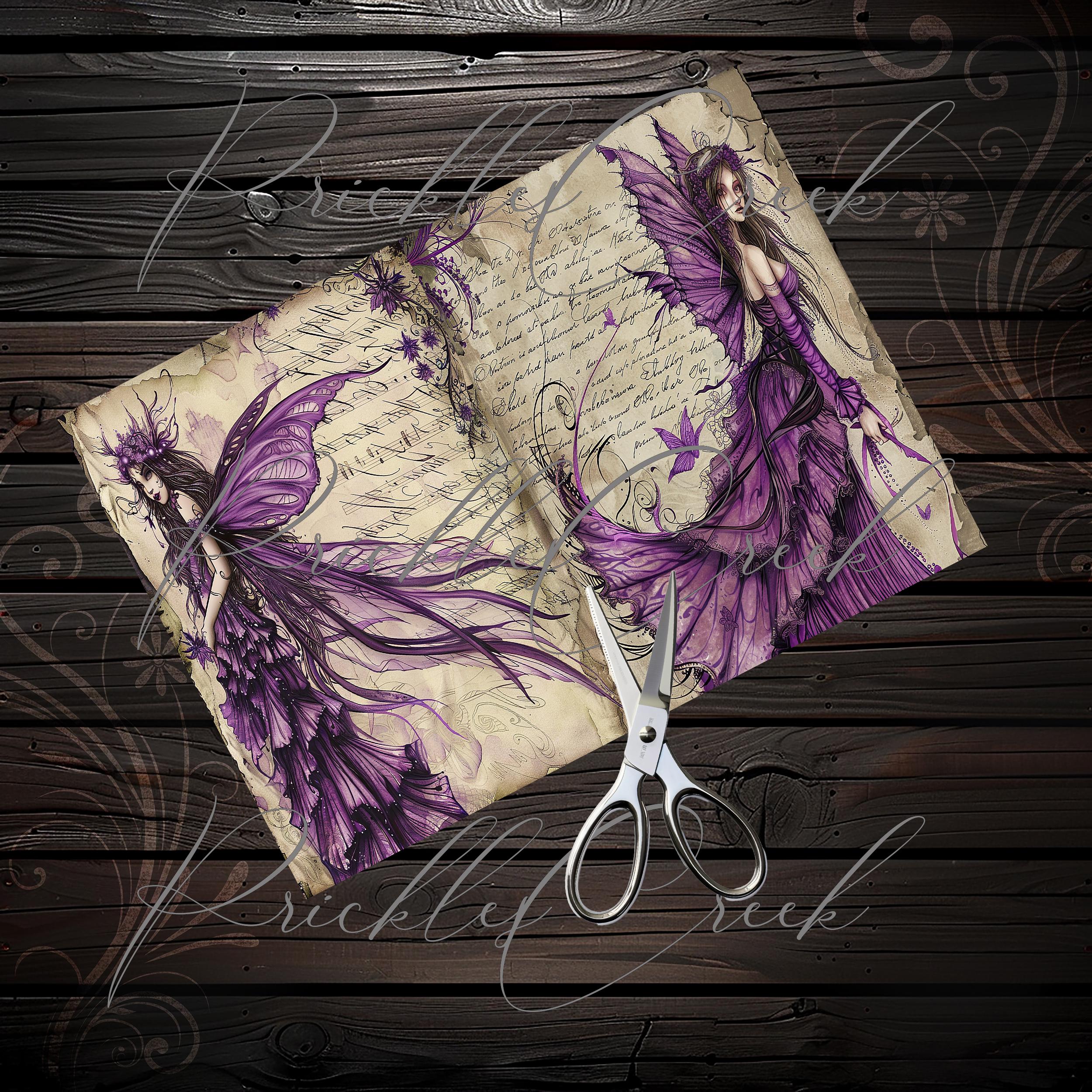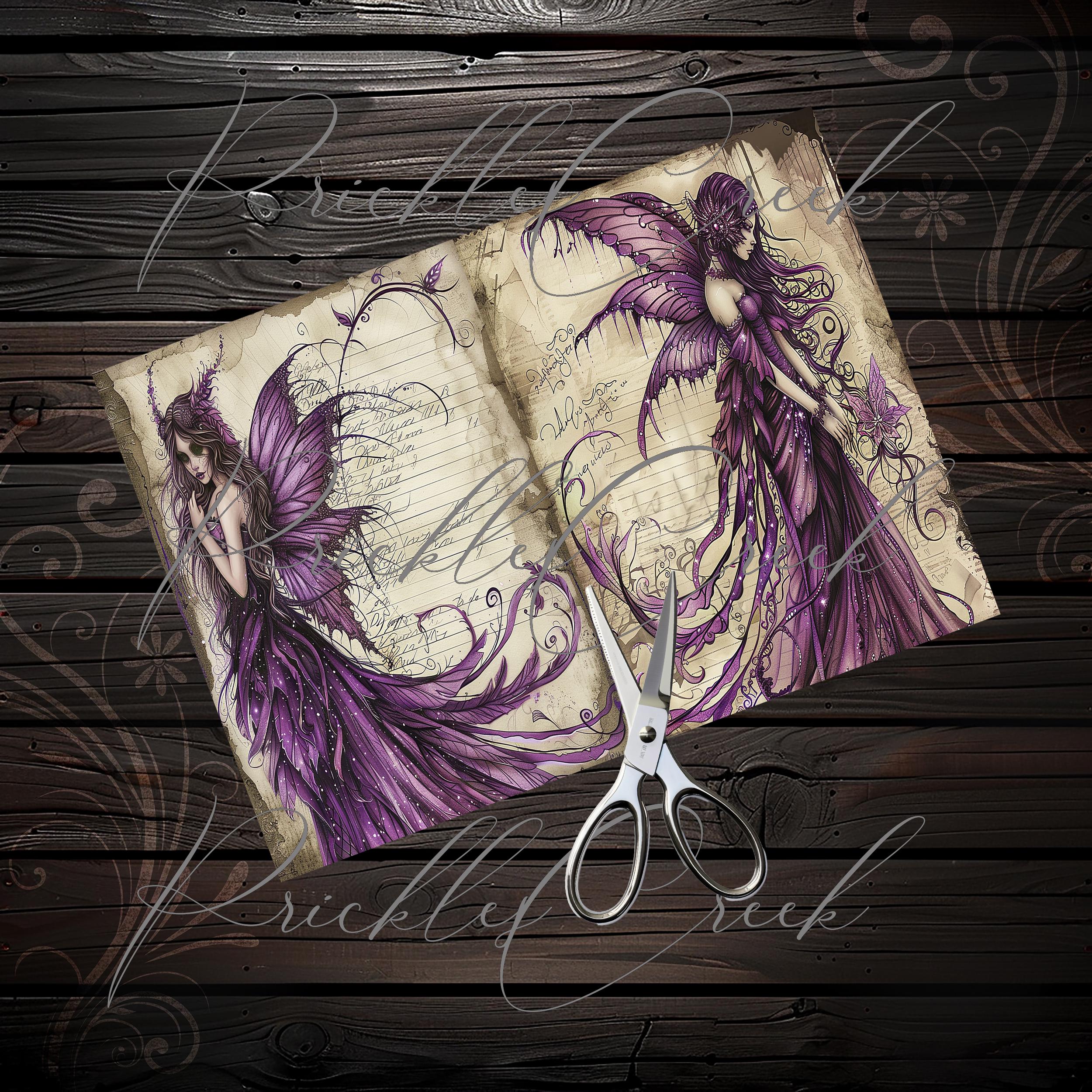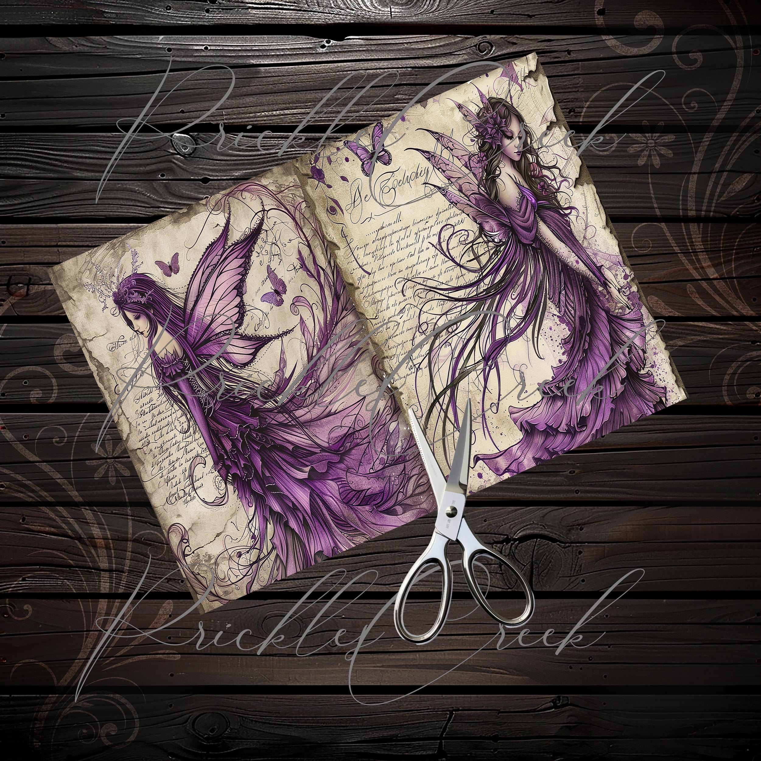 Junk journal papers purple fairies, scrapbook, scrapbooking, ephemera, digital paper - fantasy