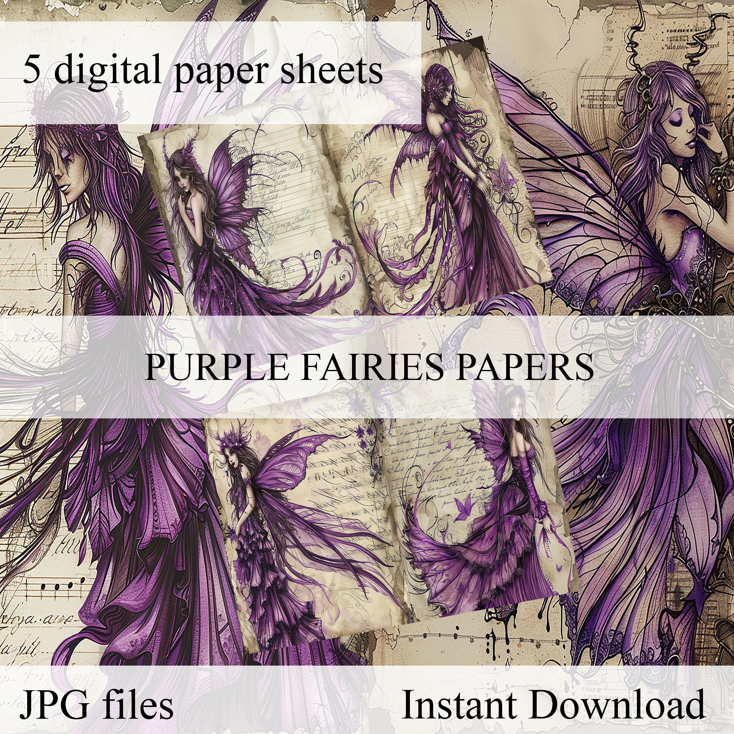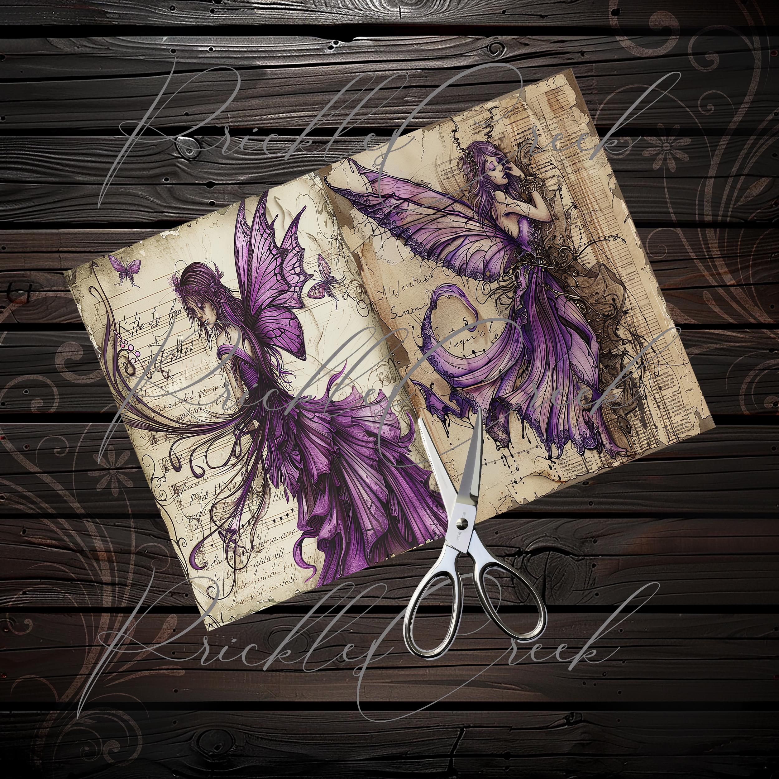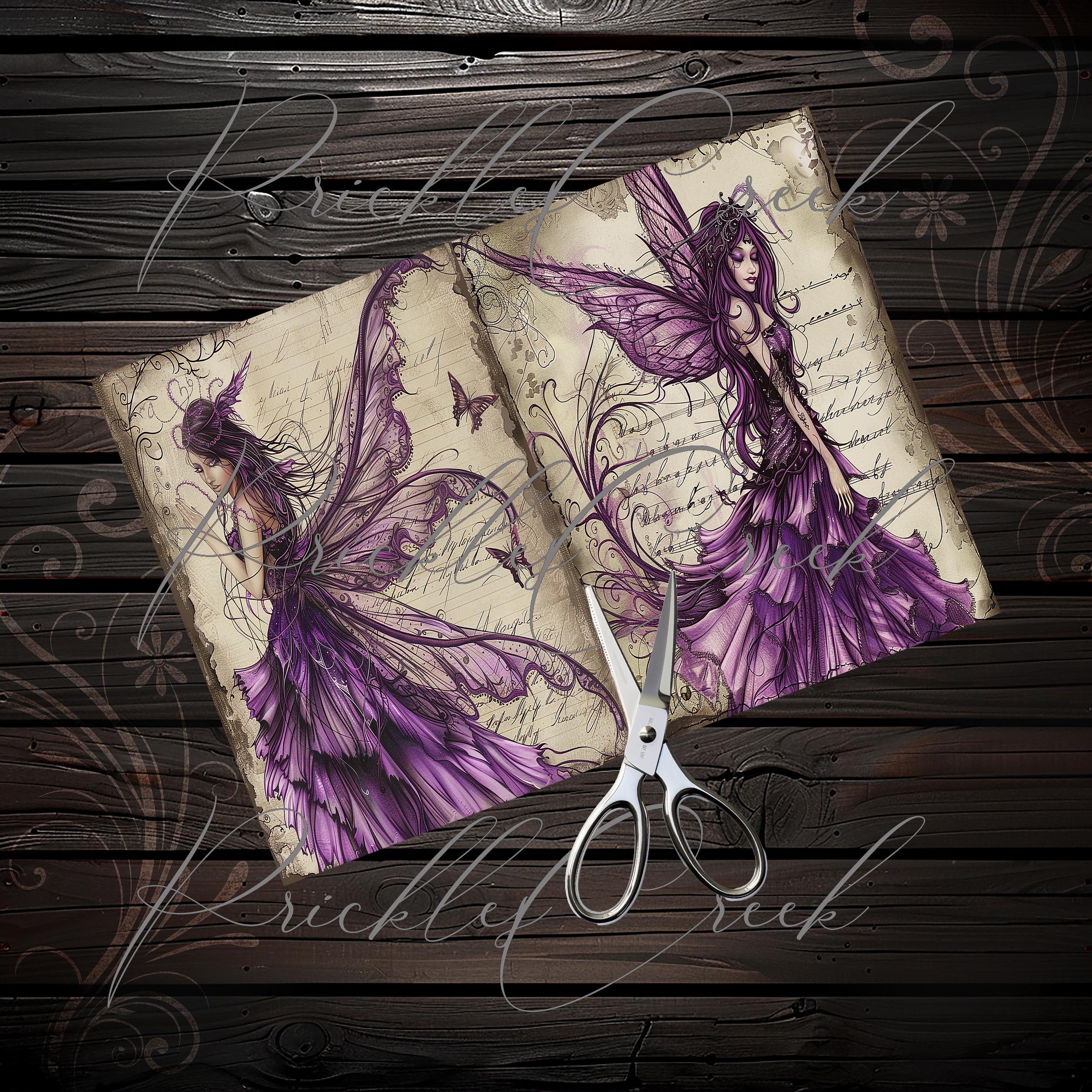 Junk journal papers purple fairies, scrapbook, scrapbooking, ephemera, digital paper - fantasy