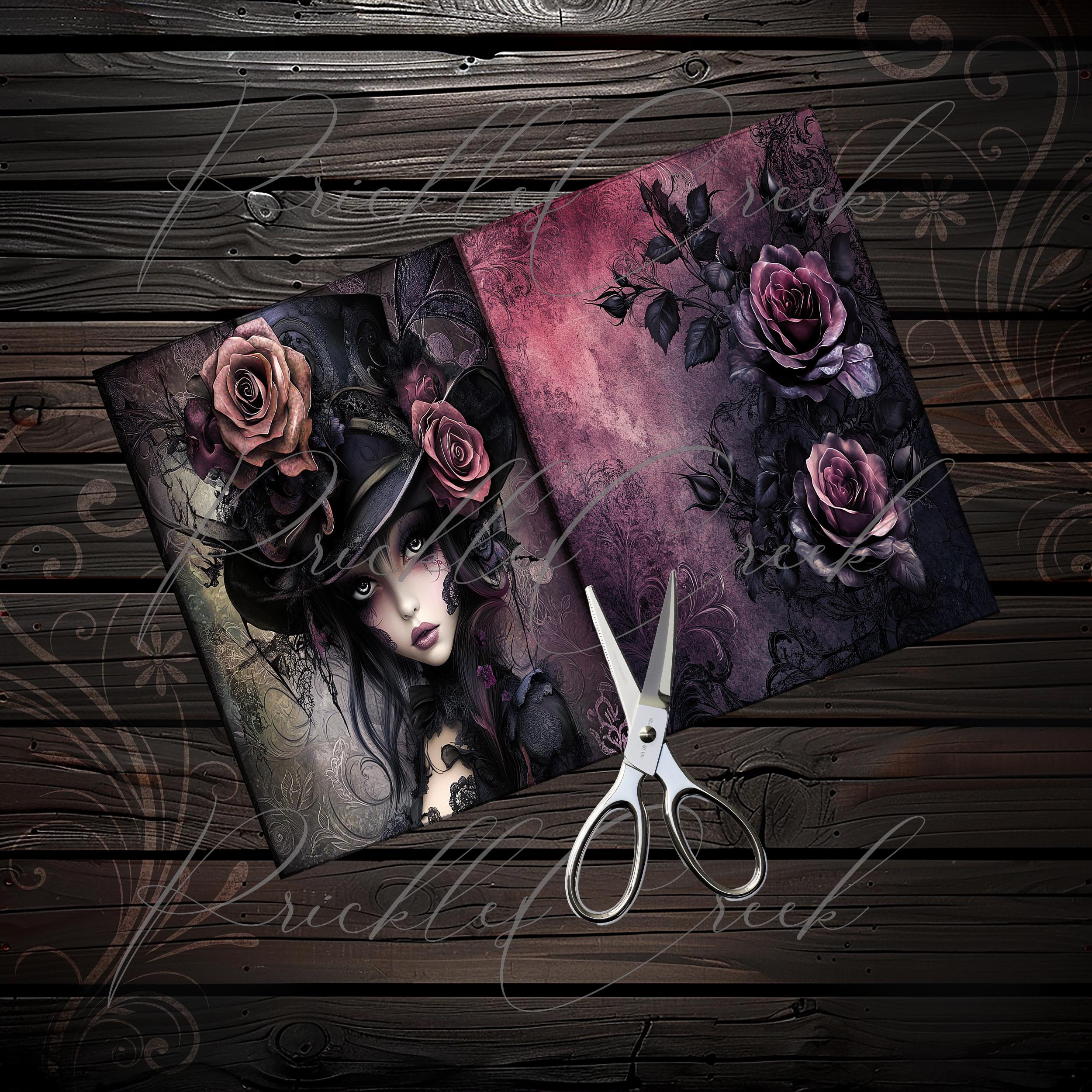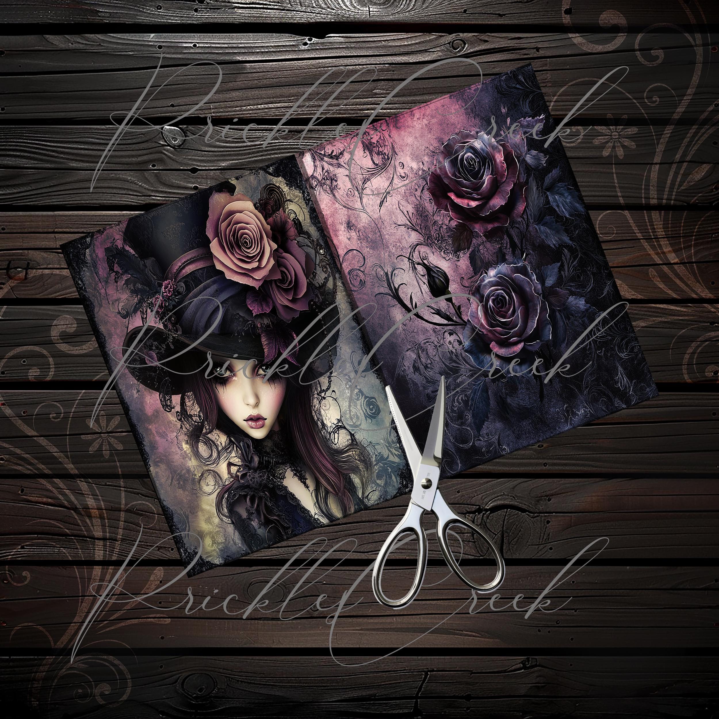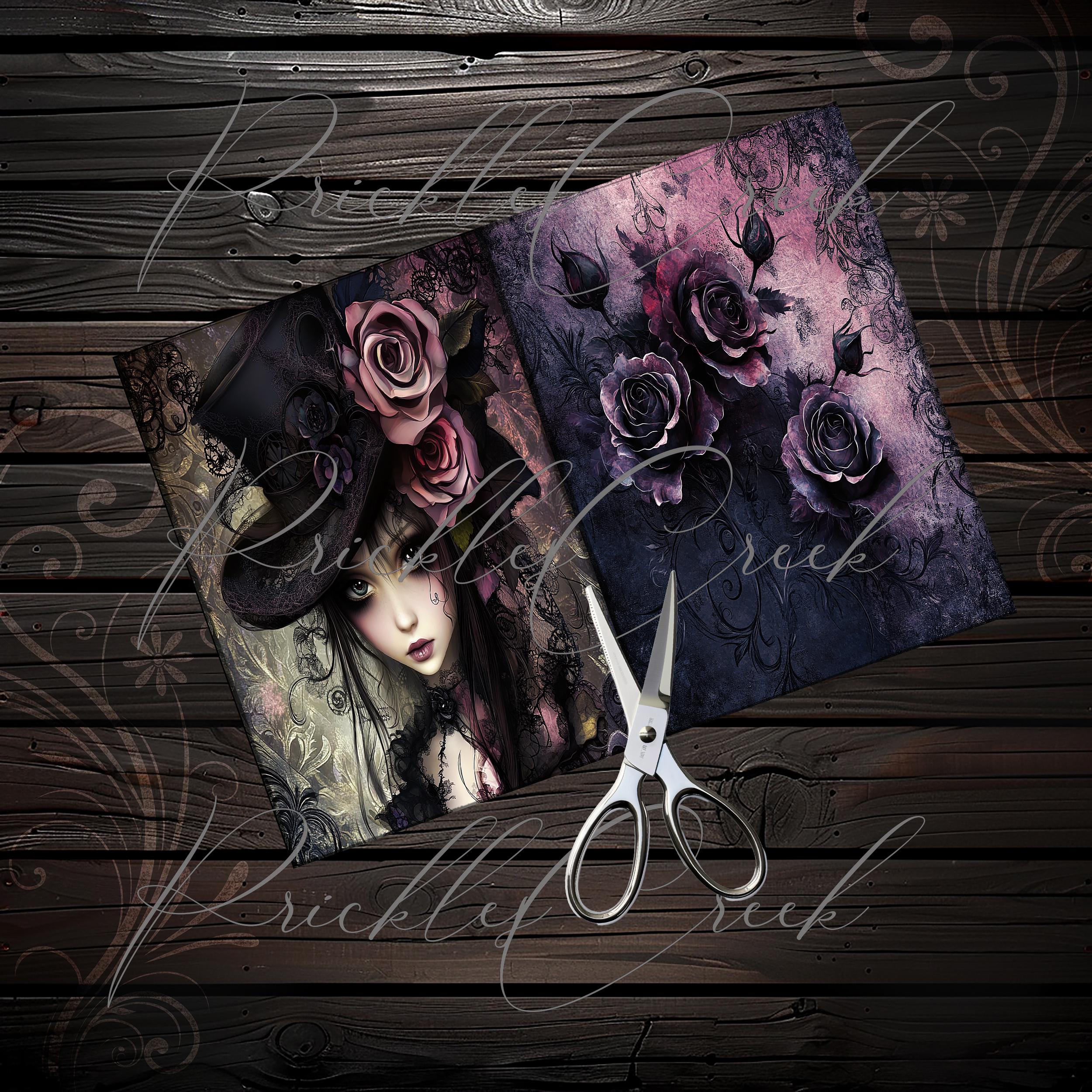 Scrapbook "Victorian Gothic" flower fantasy papers, scrapbook, scrapbooking, junk journal, ephemera, diary paper, digital paper