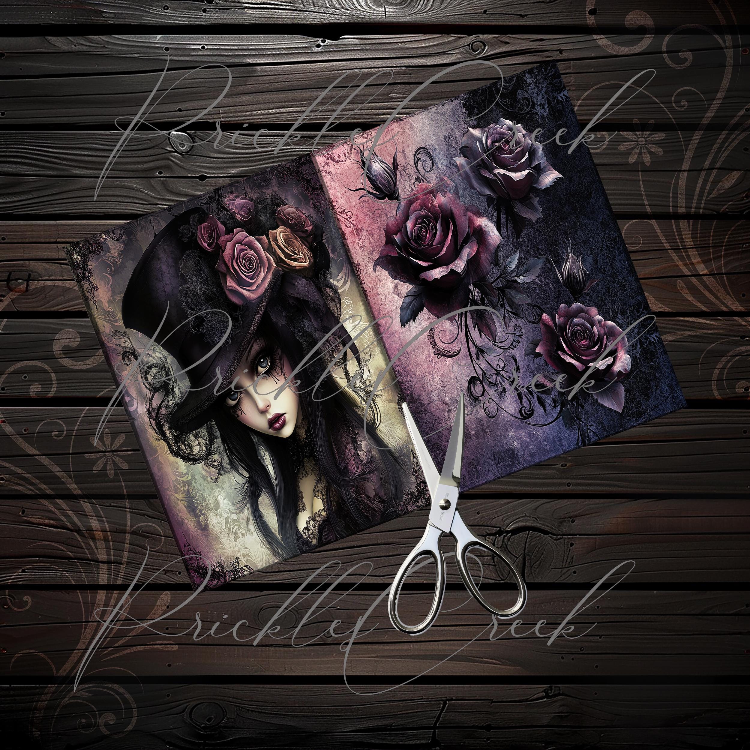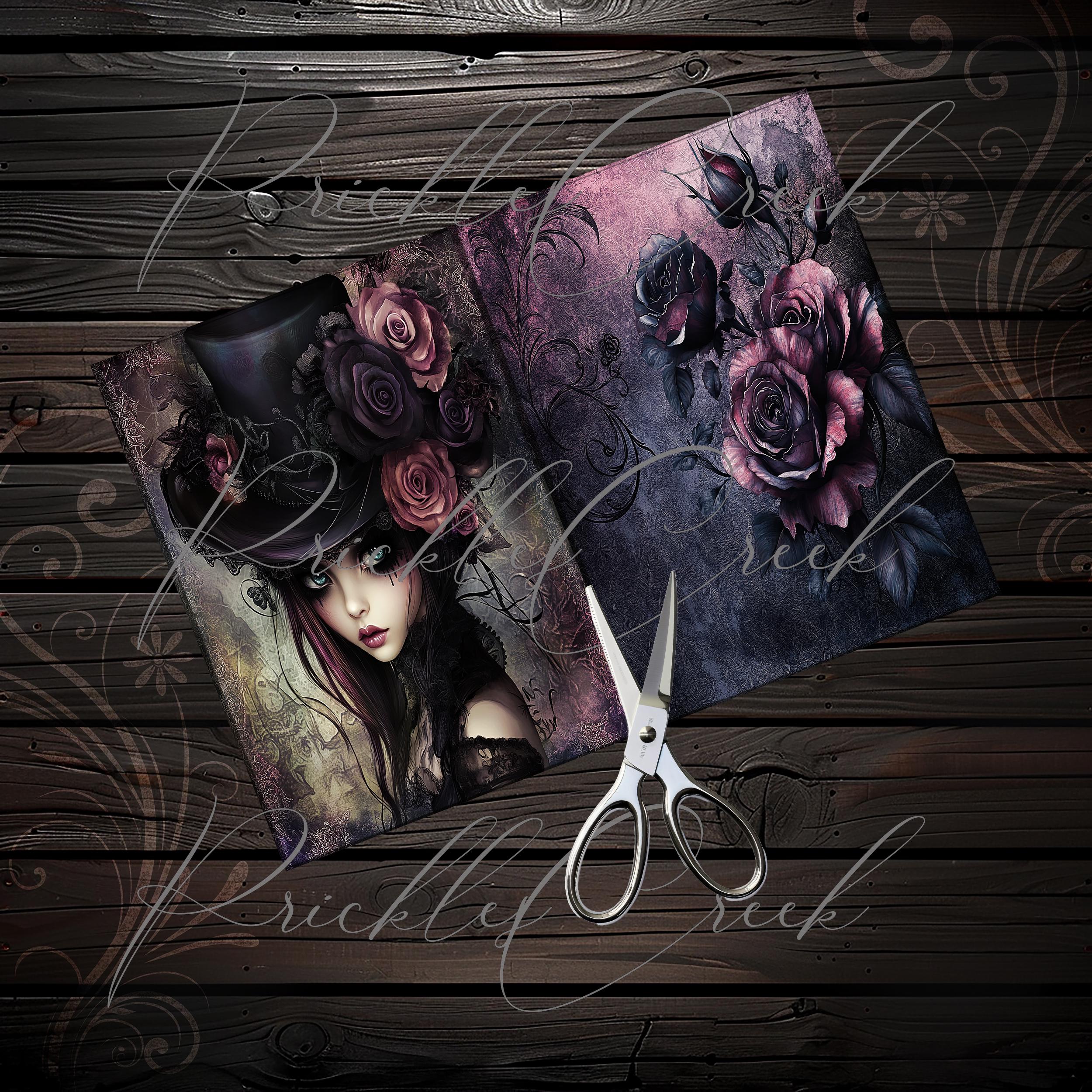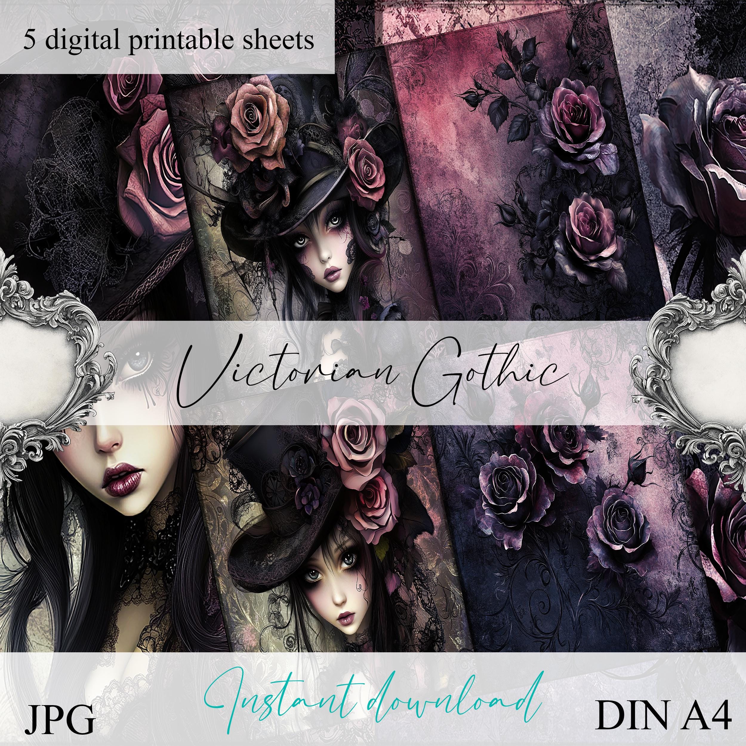 Scrapbook "Victorian Gothic" flower fantasy papers, scrapbook, scrapbooking, junk journal, ephemera, diary paper, digital paper