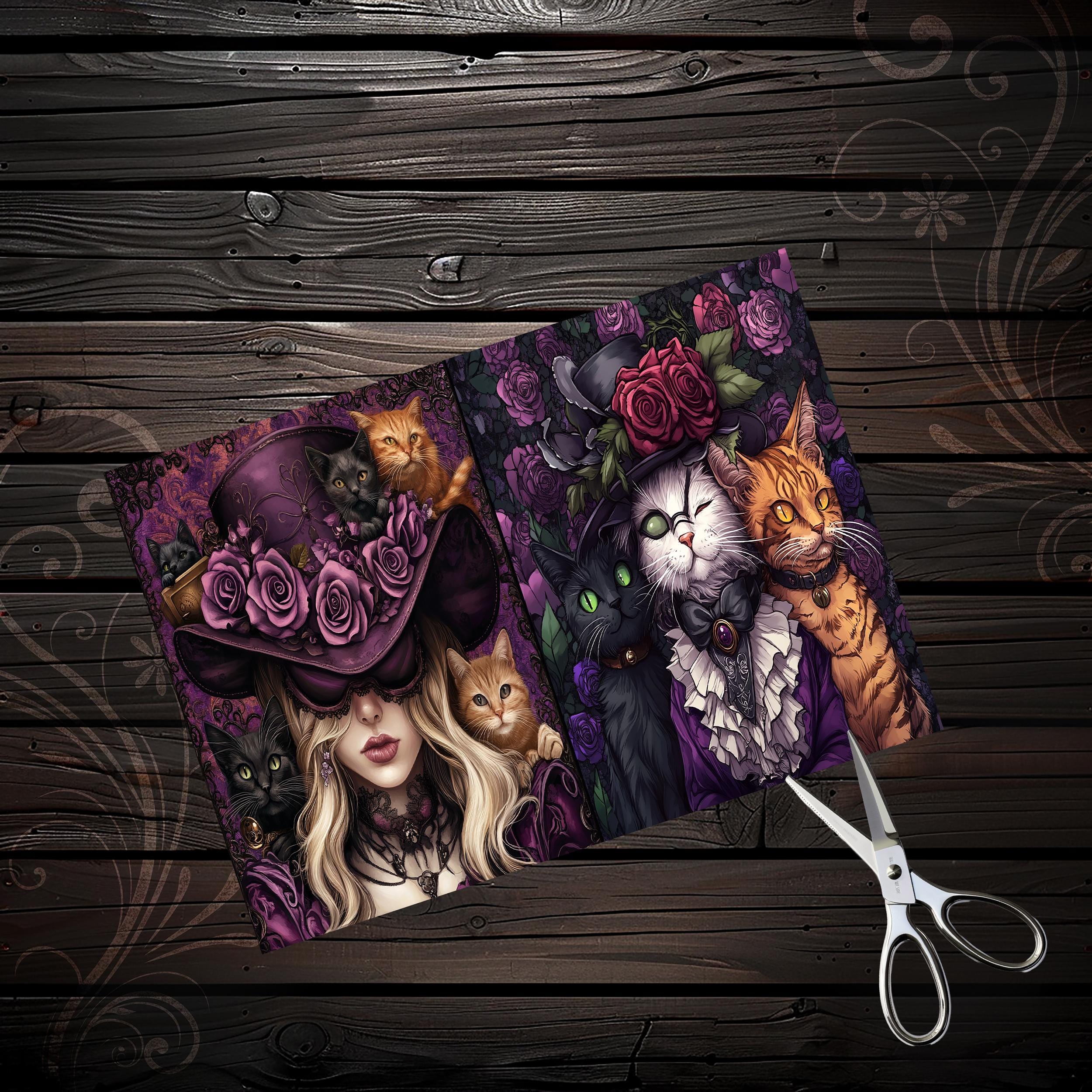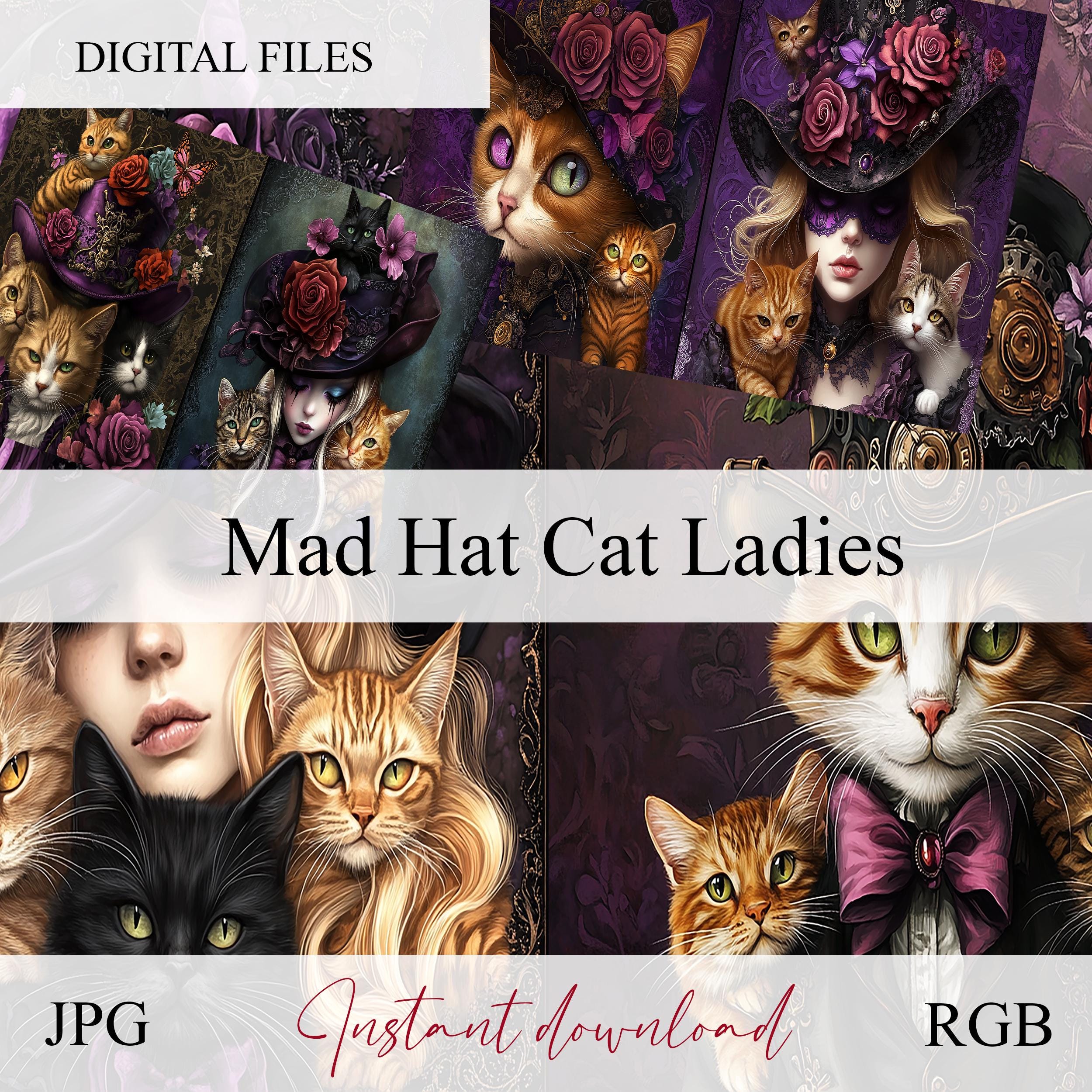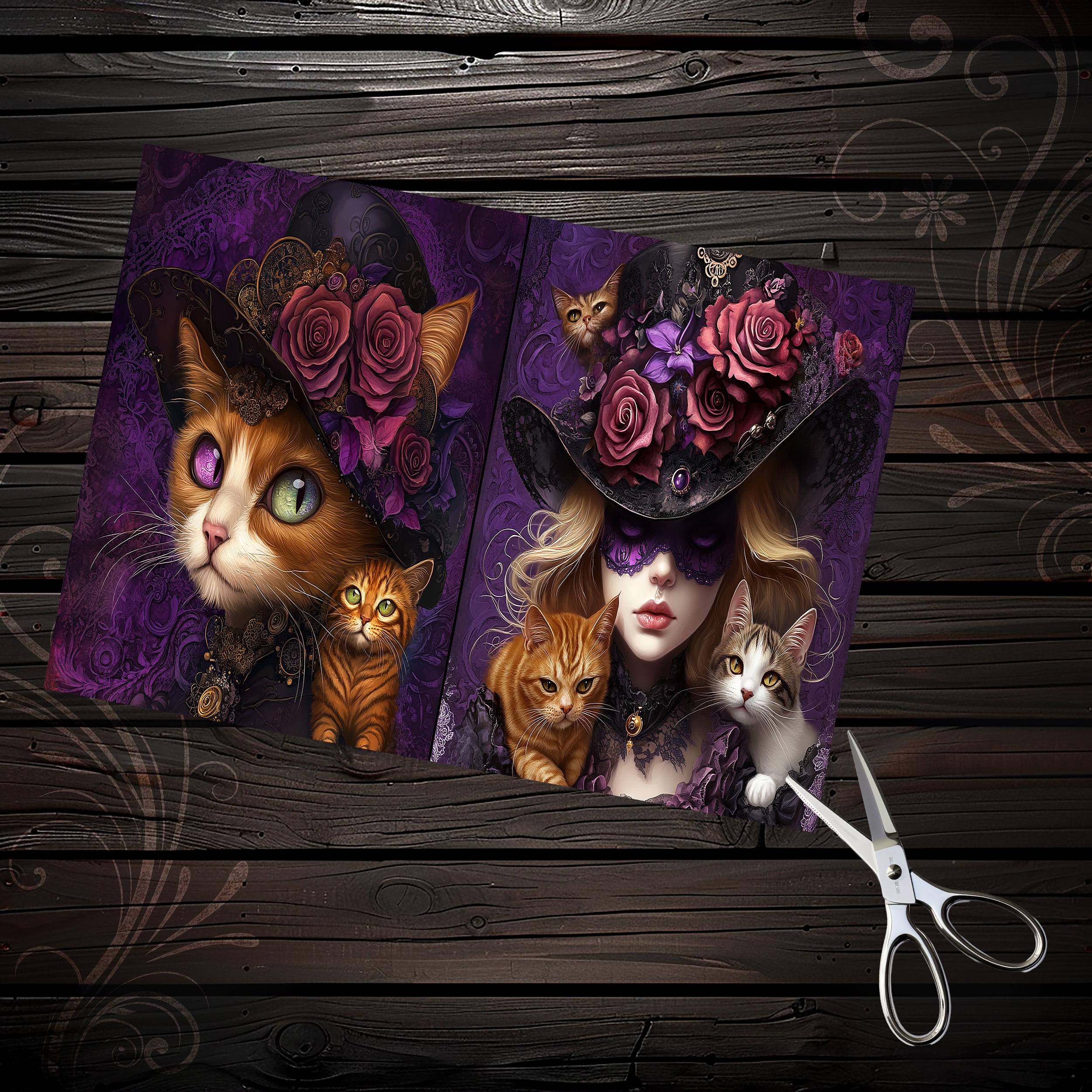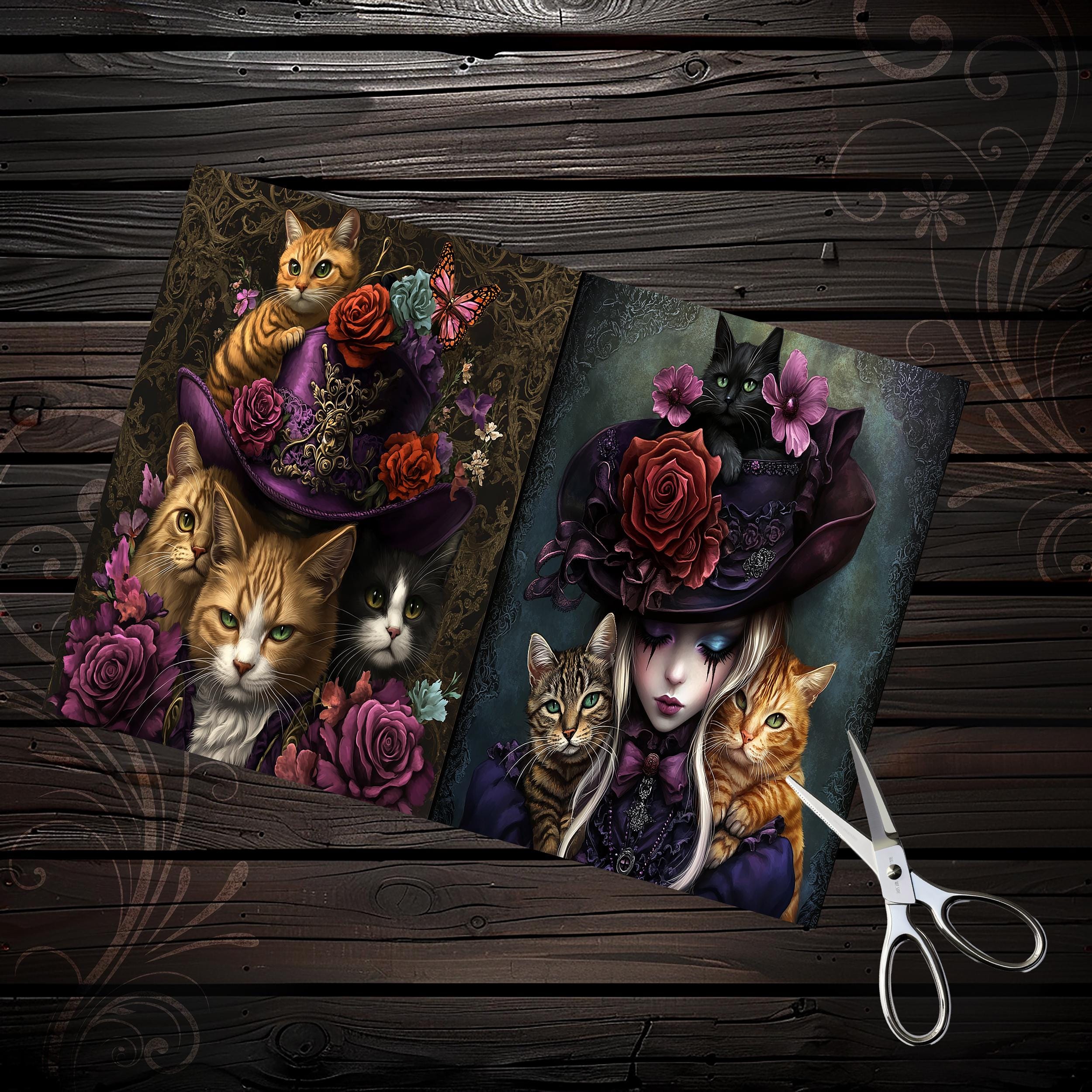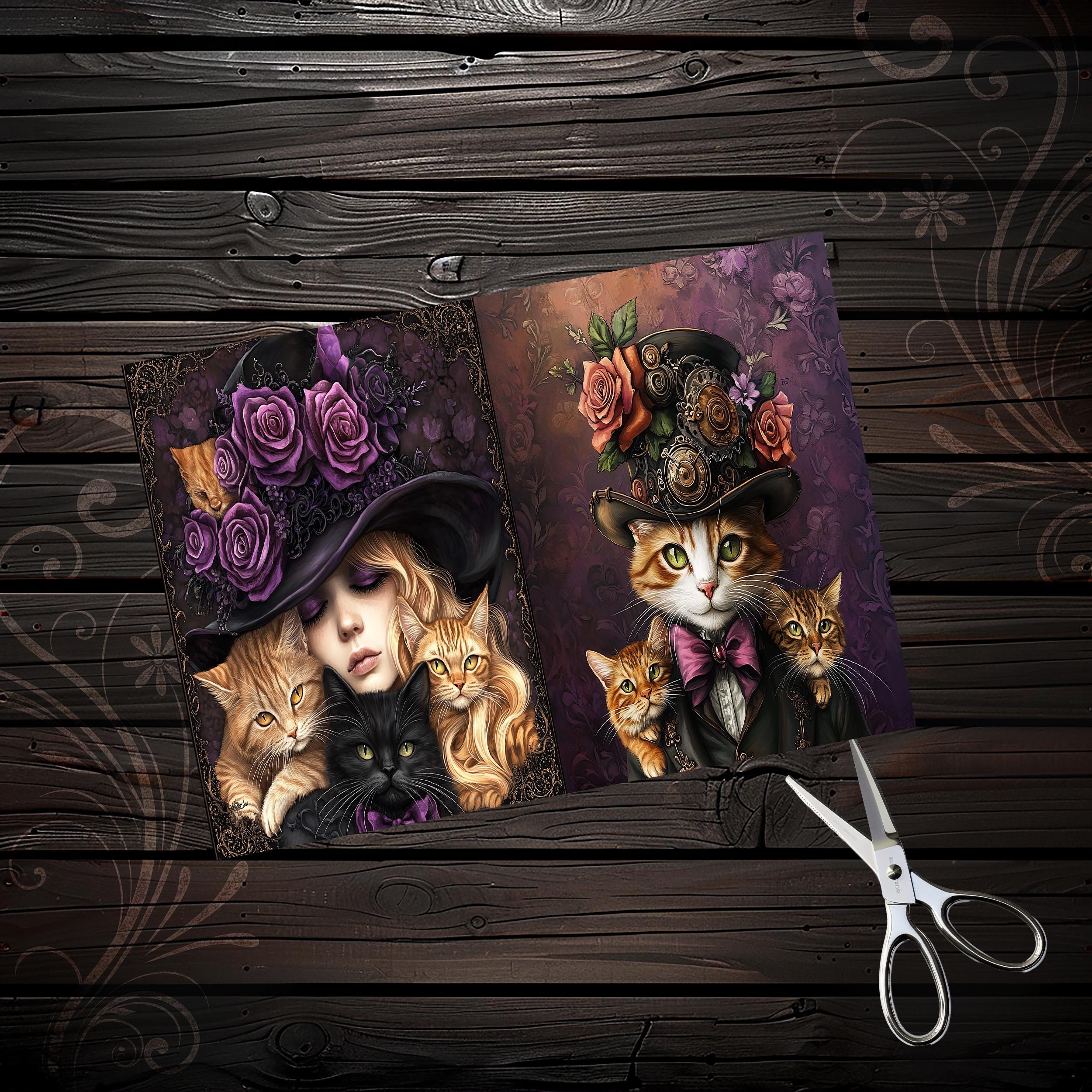 Scrapbook papers "mad hatter cats", junk journal, scrapbooking, ephemera, steampunk, digital paper