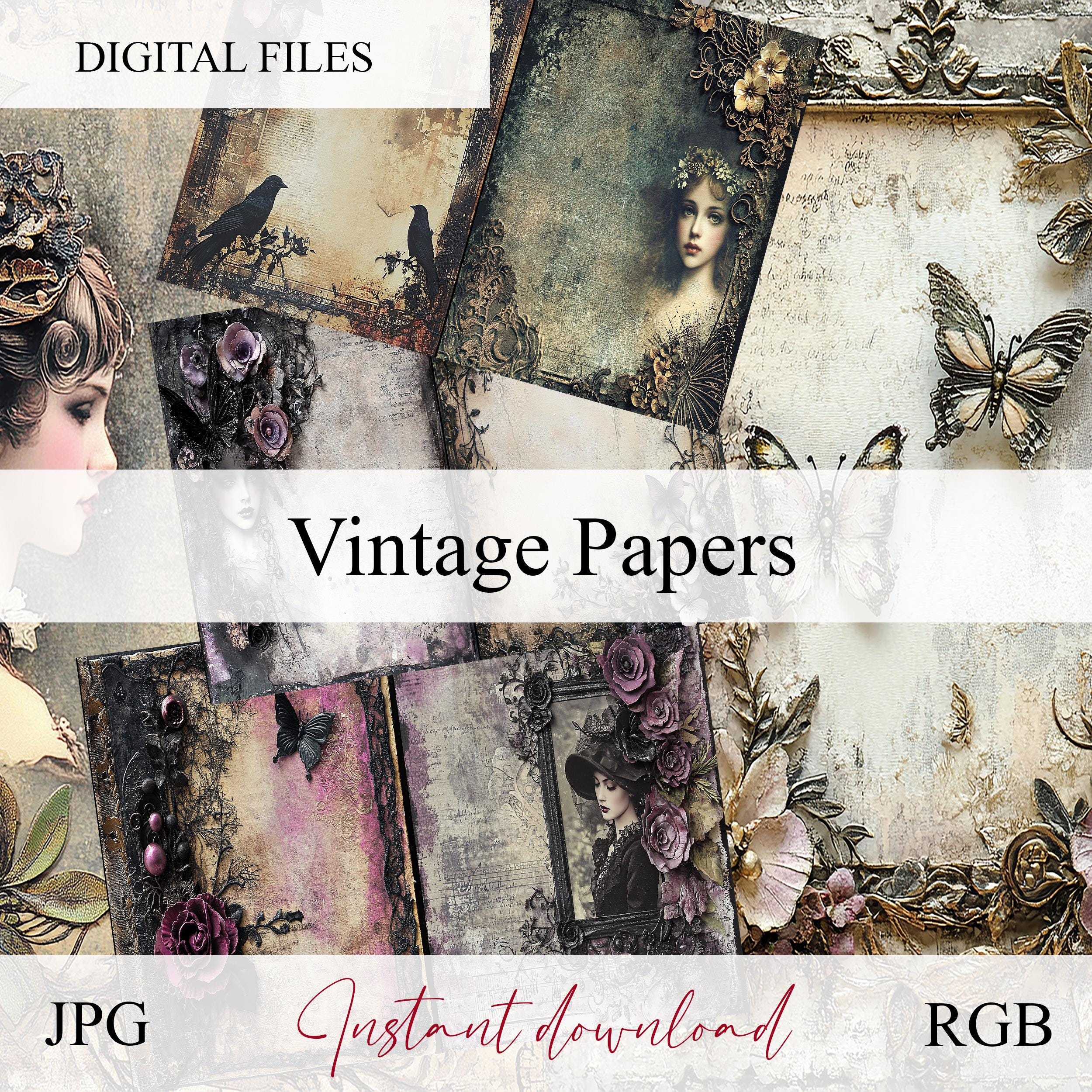 Scrapbook vintage papers, junk journal, diary, ephemera, digital paper, scrapbooking