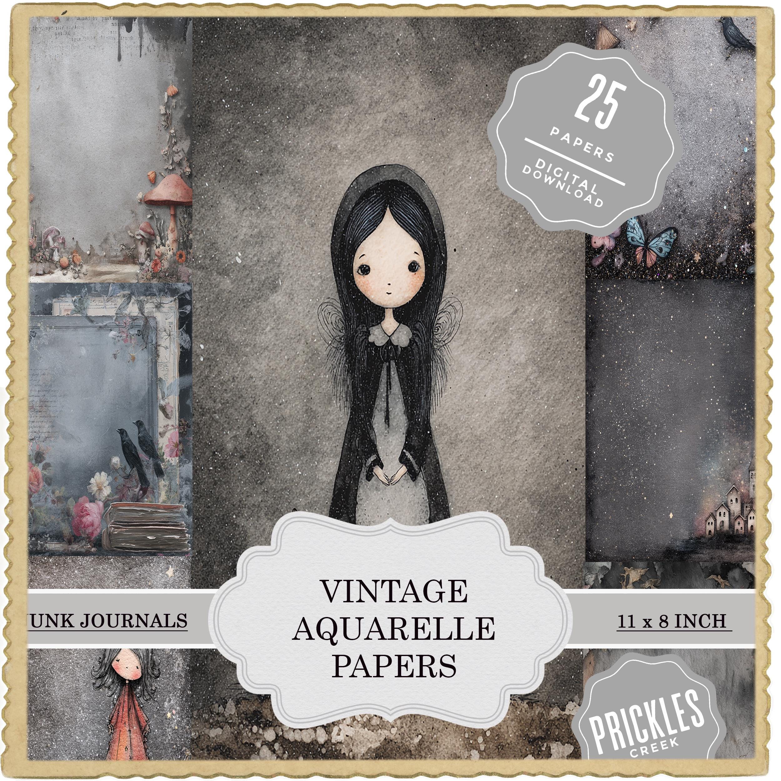 Aquarelle vintage papers, scrapbook paper, scrapbooking set, junk journal, memory album, ephemera - digital paper