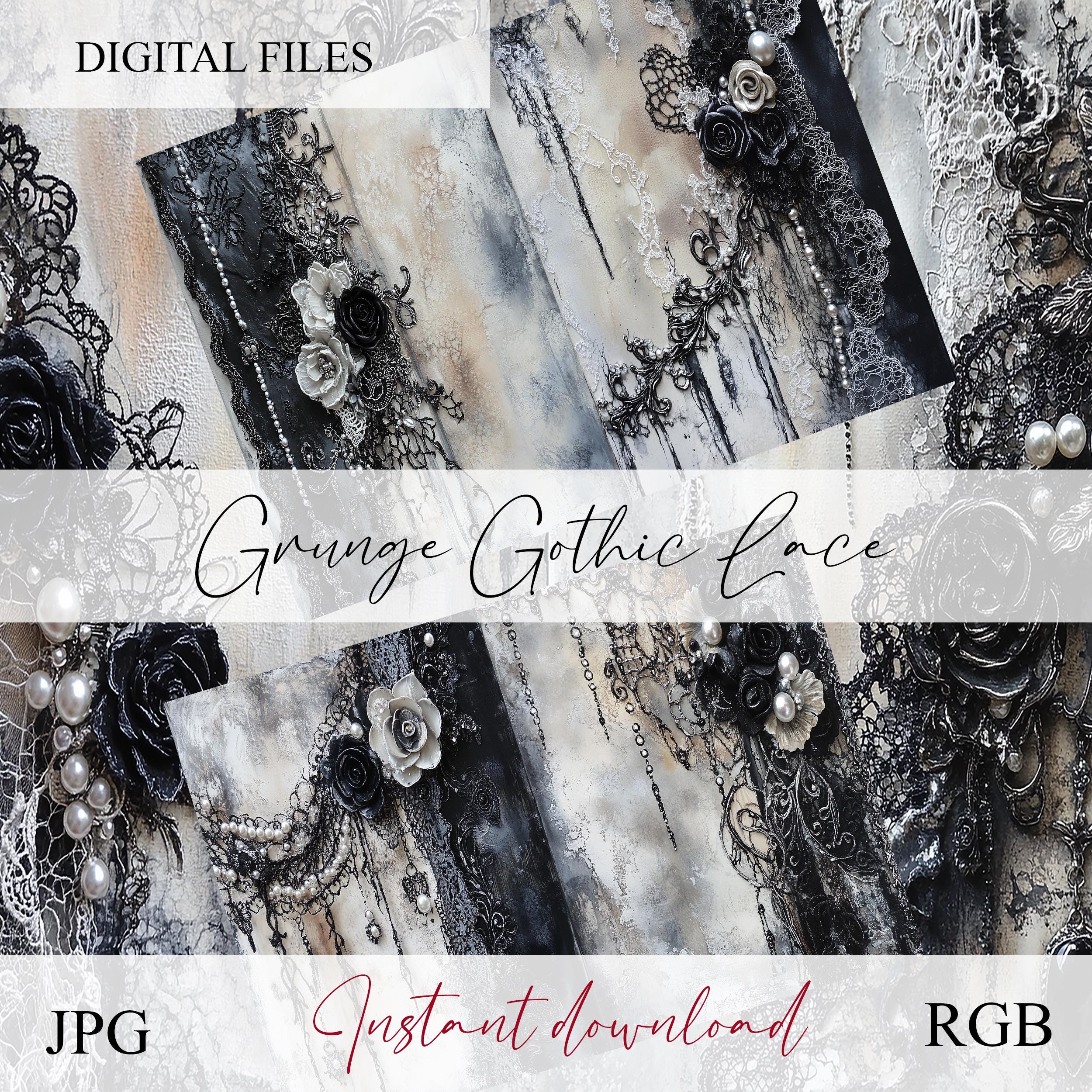 Digital papers, scrapbook, scrapbook supplies, junk journal kit, digital paper, ephemera, diary, lace and beads