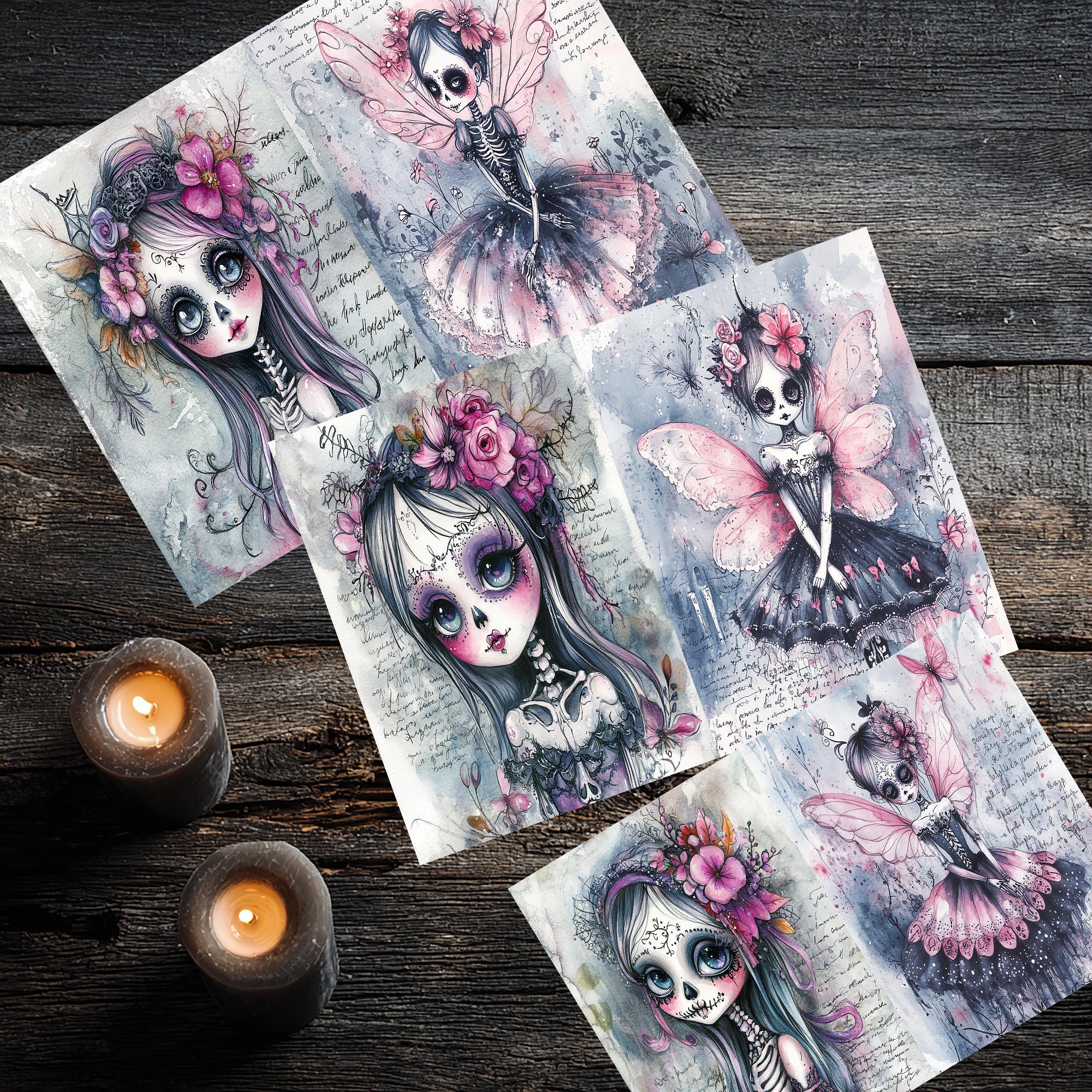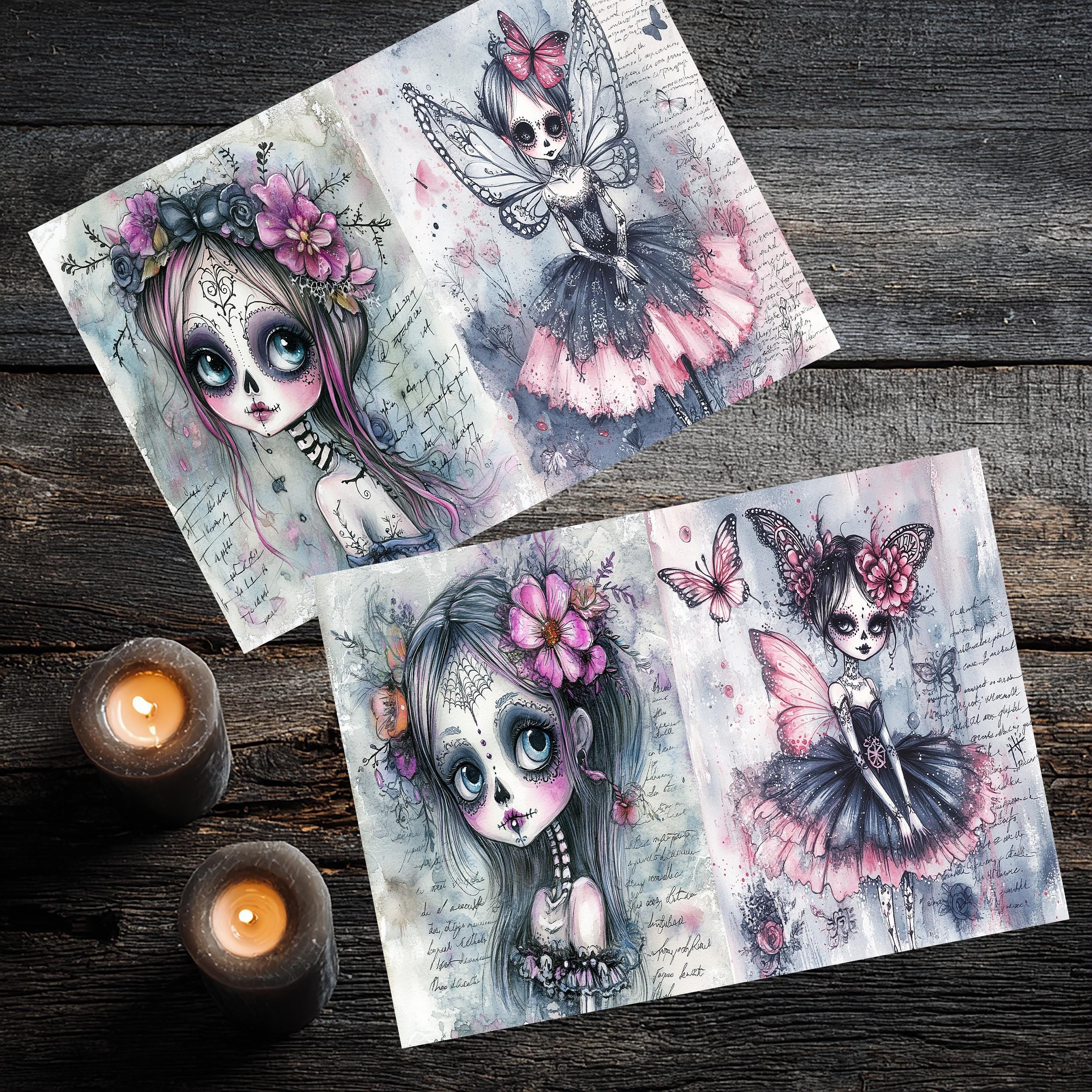 Scrapbook "fantasy fairies" printable papers, scrapbook, scrapbooking kit, junk journal, digital paper, ephemera, dia de los muertos, gothic
